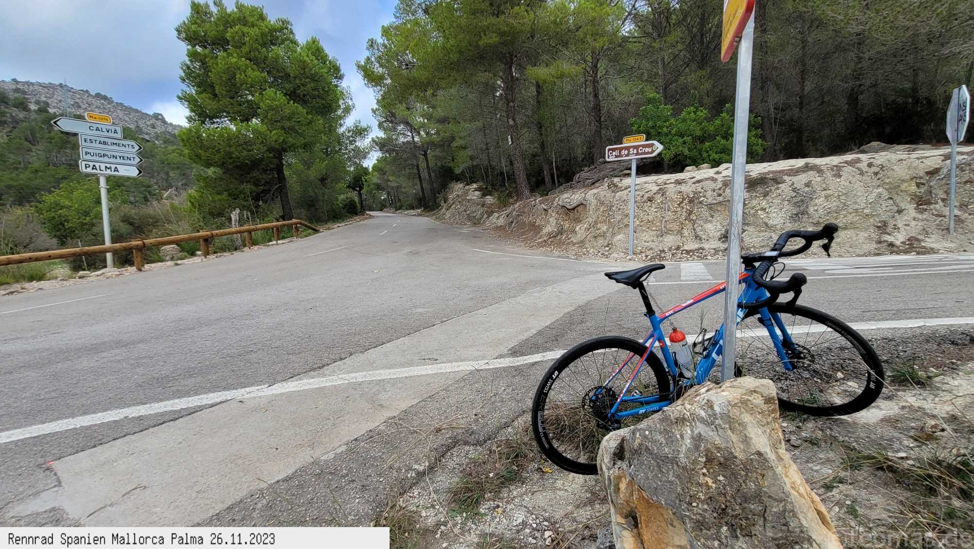 Strecke: S'Arenal - Palma Radweg - Col de Sa Creu - Calvia - Es Capdella - Galilea - Puigpunyent - Col de Tords -