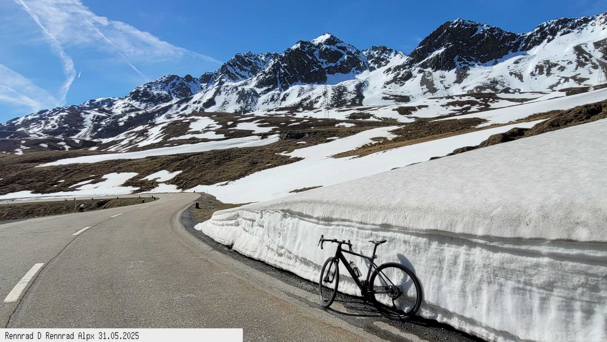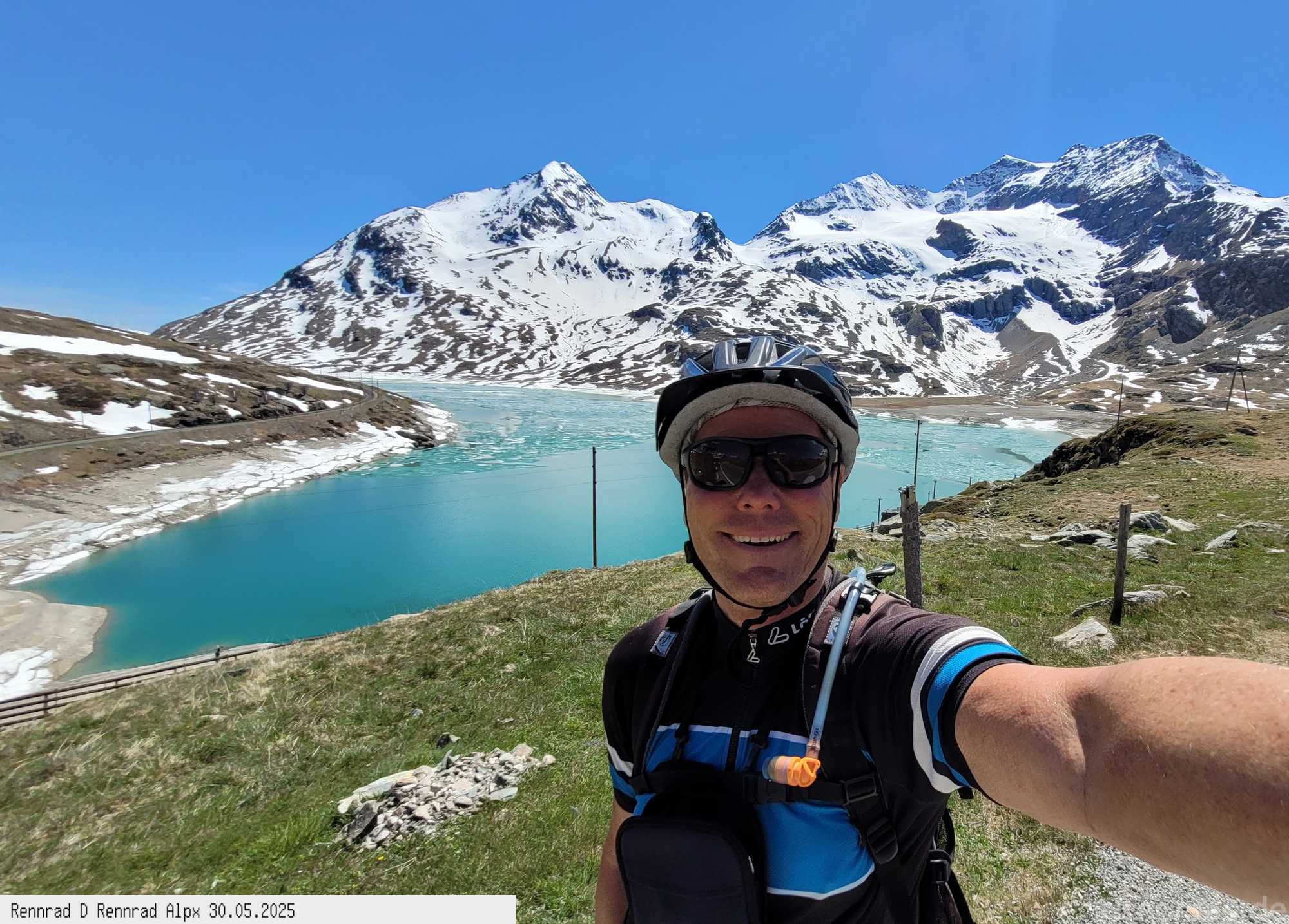 Pontresina hinauf auf den Bernina Paß bis zum Hotel Ospizio geradelt. Tolle Ausblicke auf den Morteratsch Gletscher sowie die ständig fahrenden Züge
