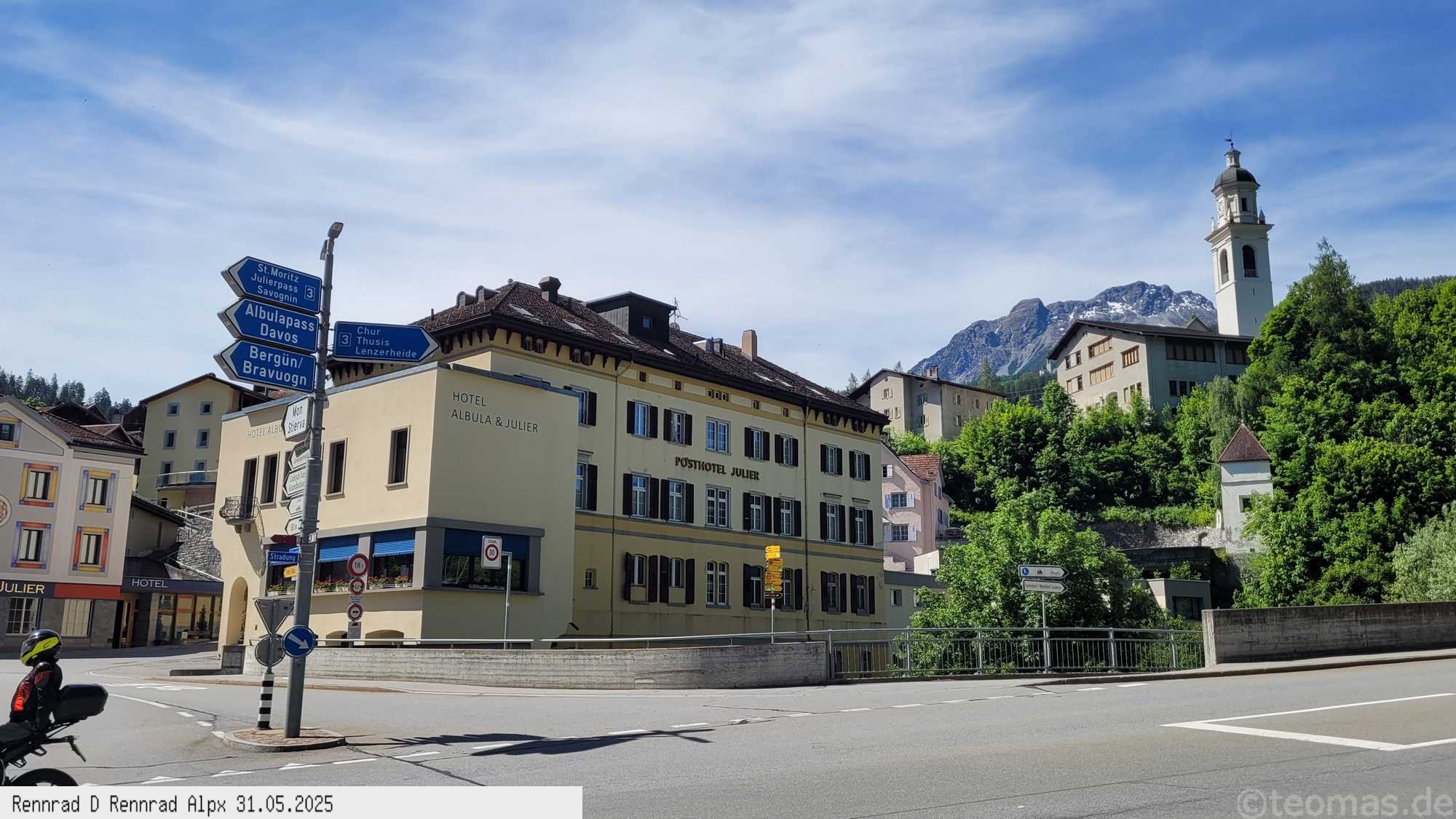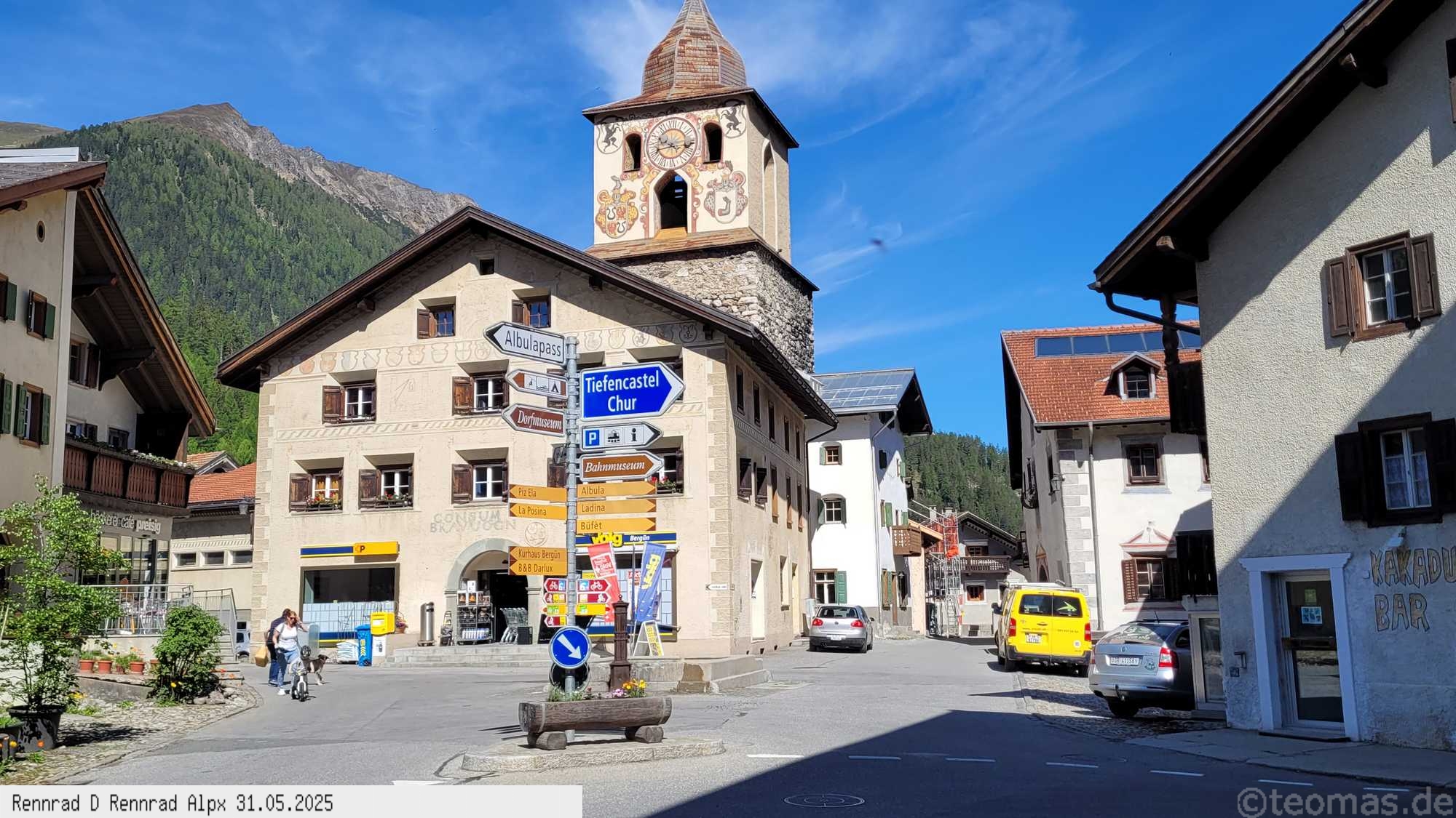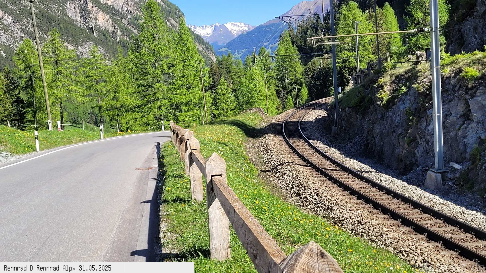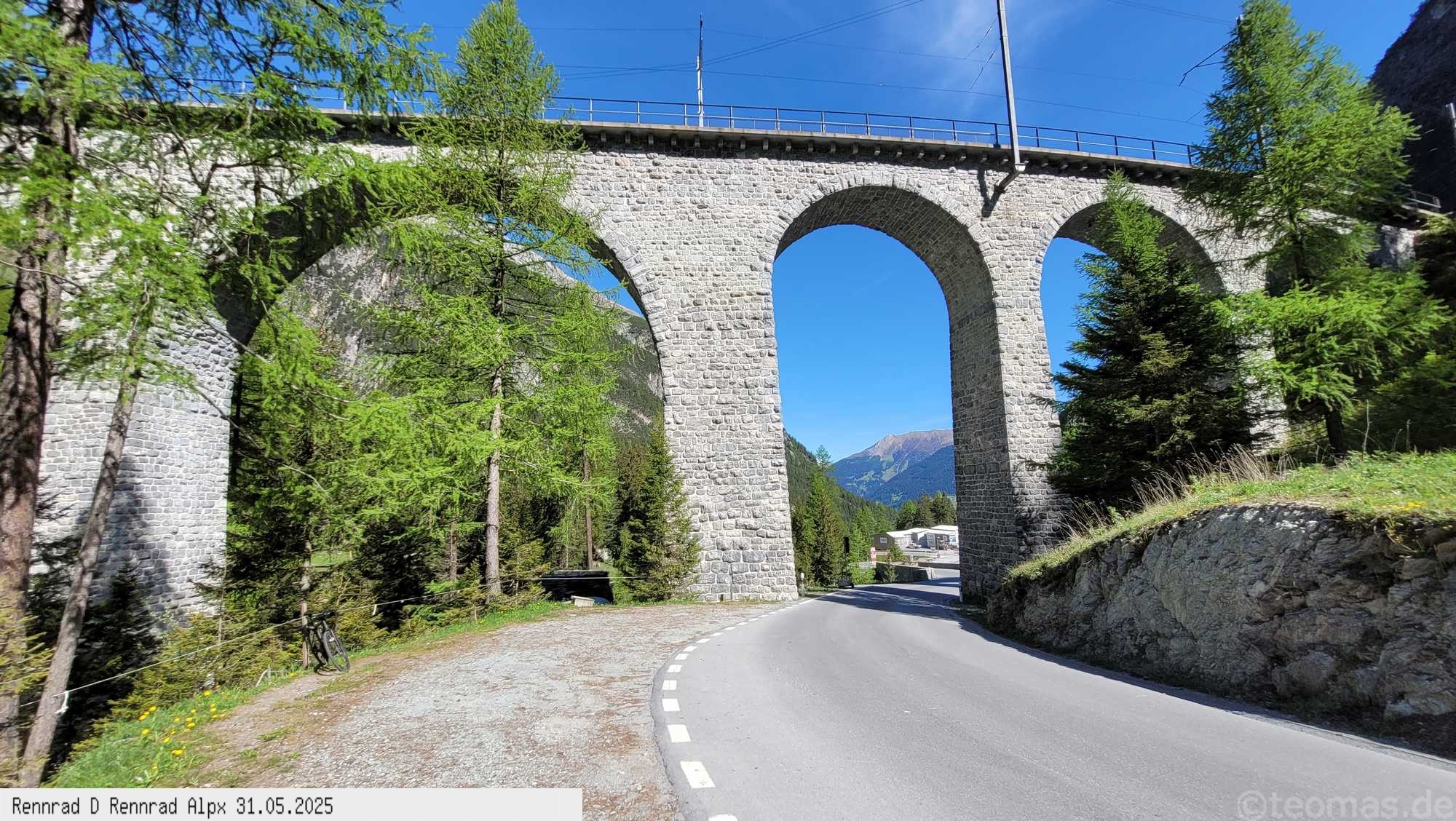 bei wenig Verkehr. Gegen 10 Uhr am Paß, weiter entlang der Bahnlinie mit Viadukt bis Bergün sowie Filisur und nach einer Stunde bereits in Tiefencastel.