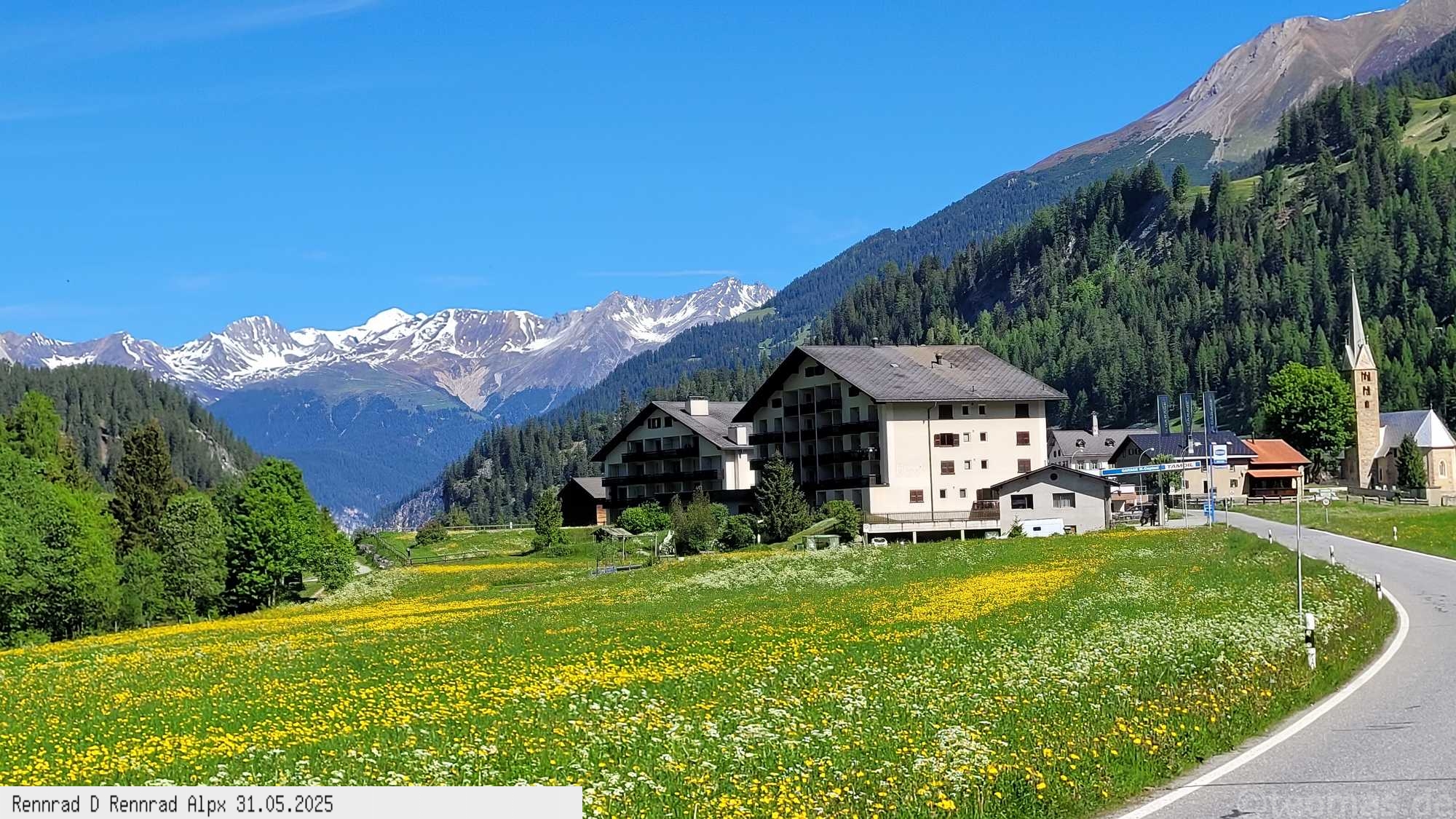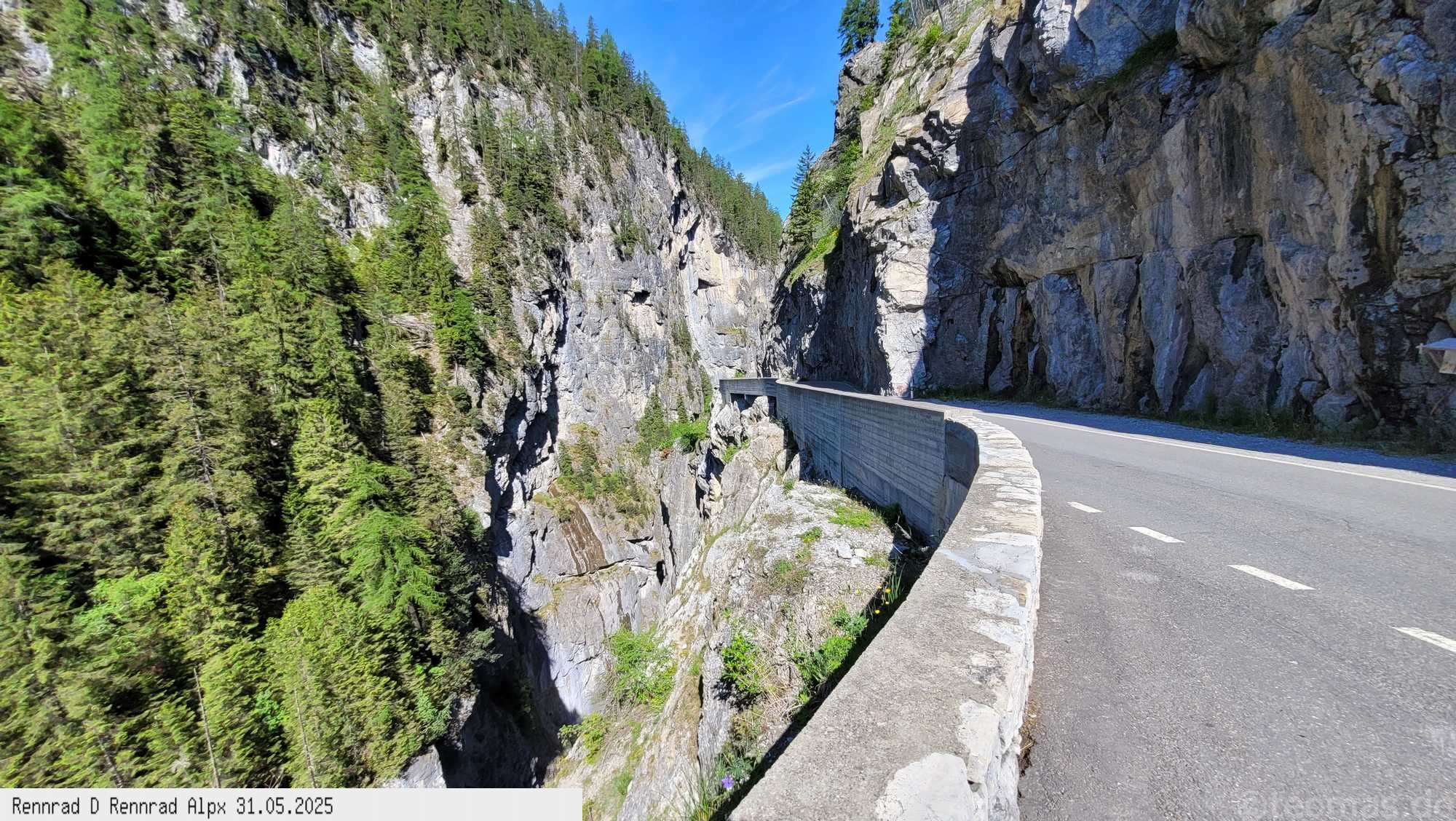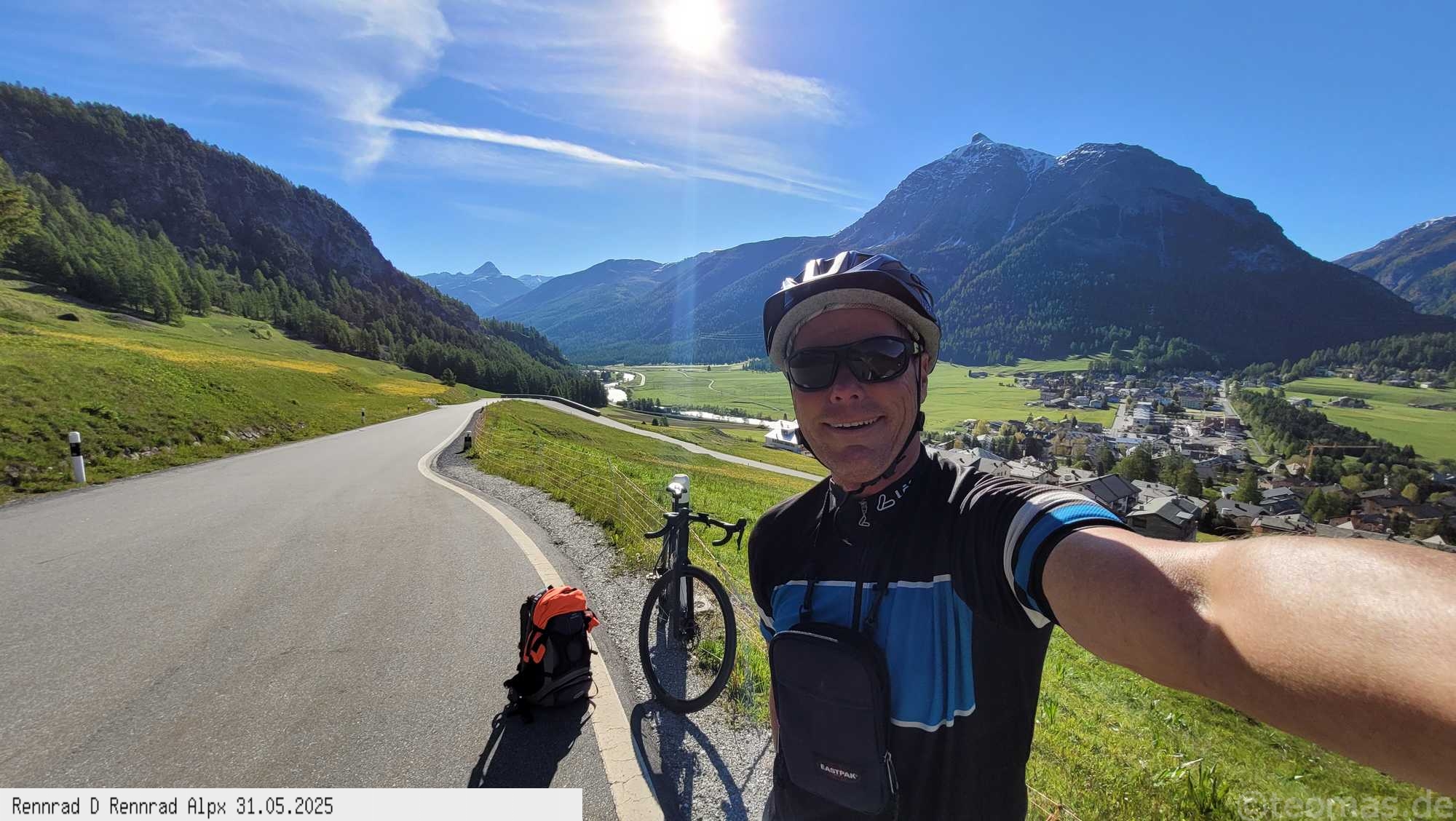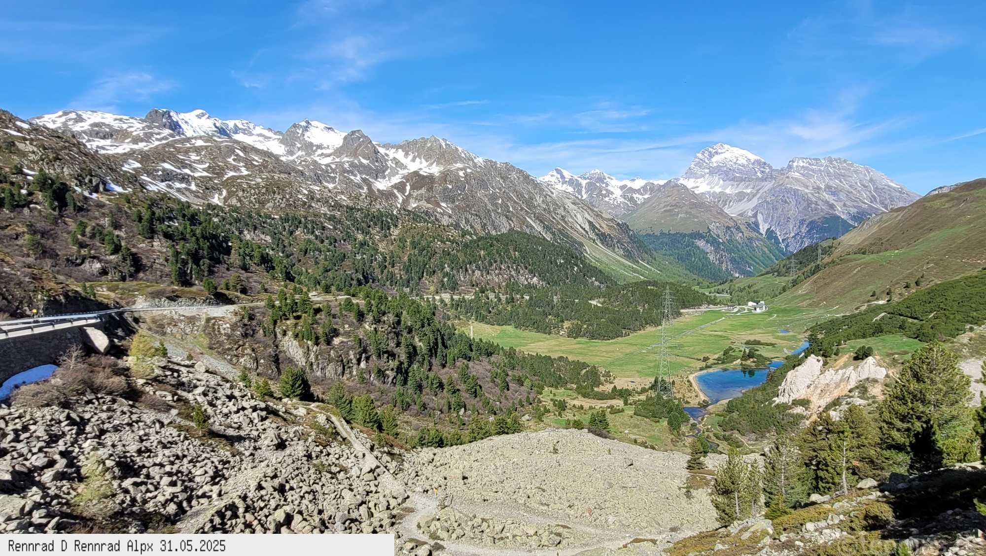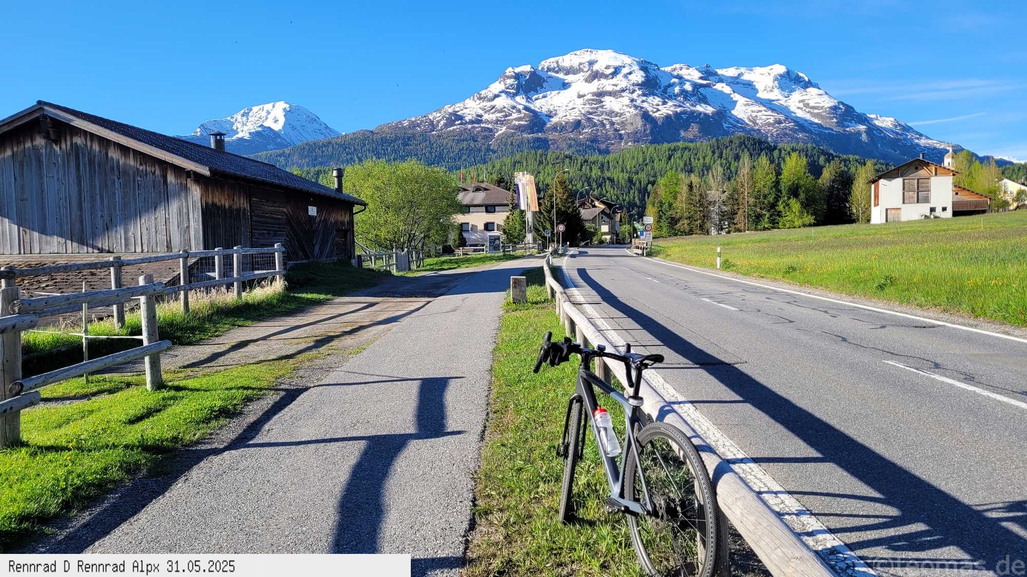 bei wenig Verkehr. Gegen 10 Uhr am Paß, weiter entlang der Bahnlinie mit Viadukt bis Bergün sowie Filisur und nach einer Stunde bereits in Tiefencastel.