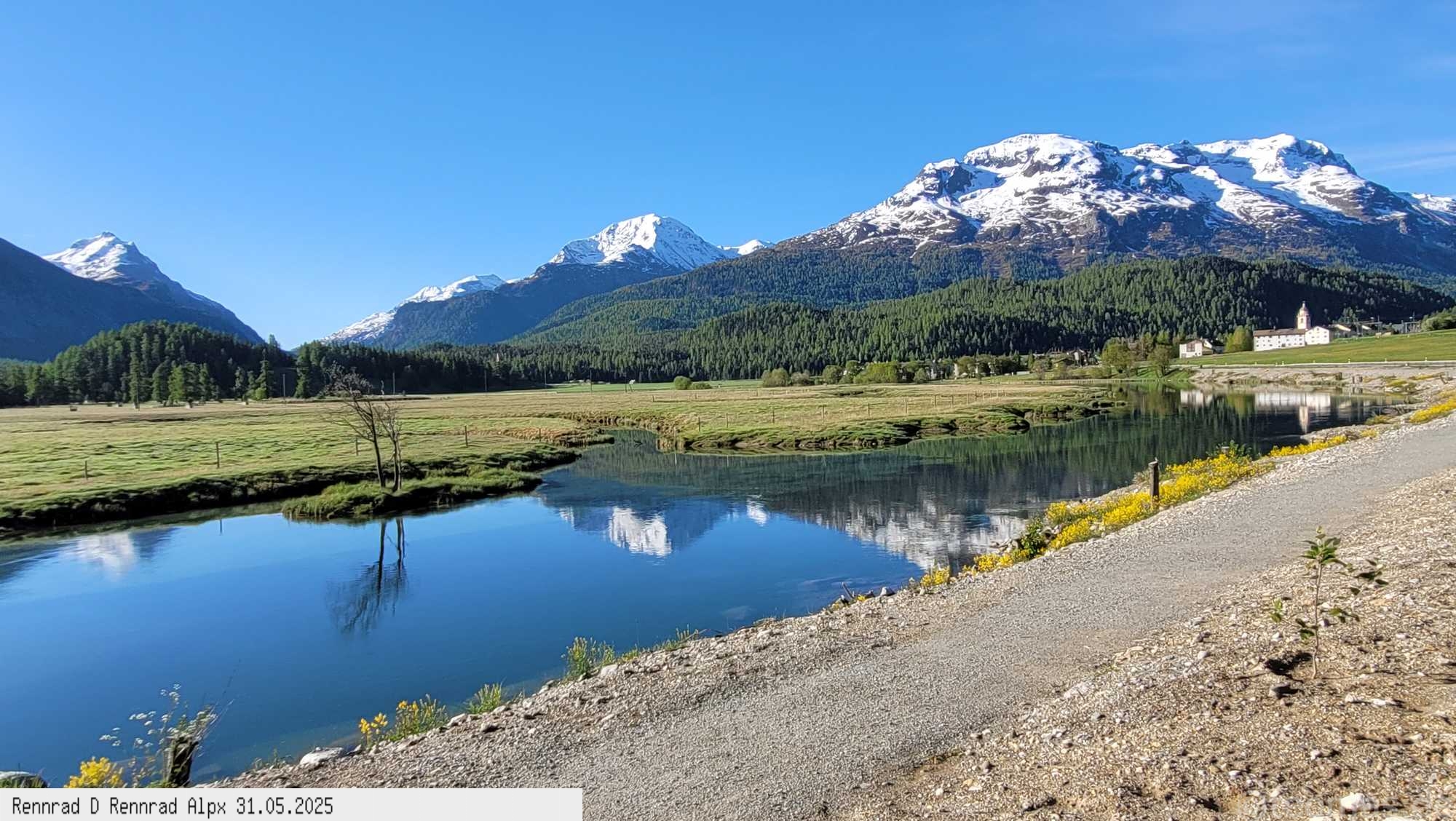 am Silsersee mit grandioser Spiegelung der Gletscherberge. Nach schöner Mittagsrast weiter entlang des Silvaplaner Sees nach St. Moritz mit dem St. Moritzersee
