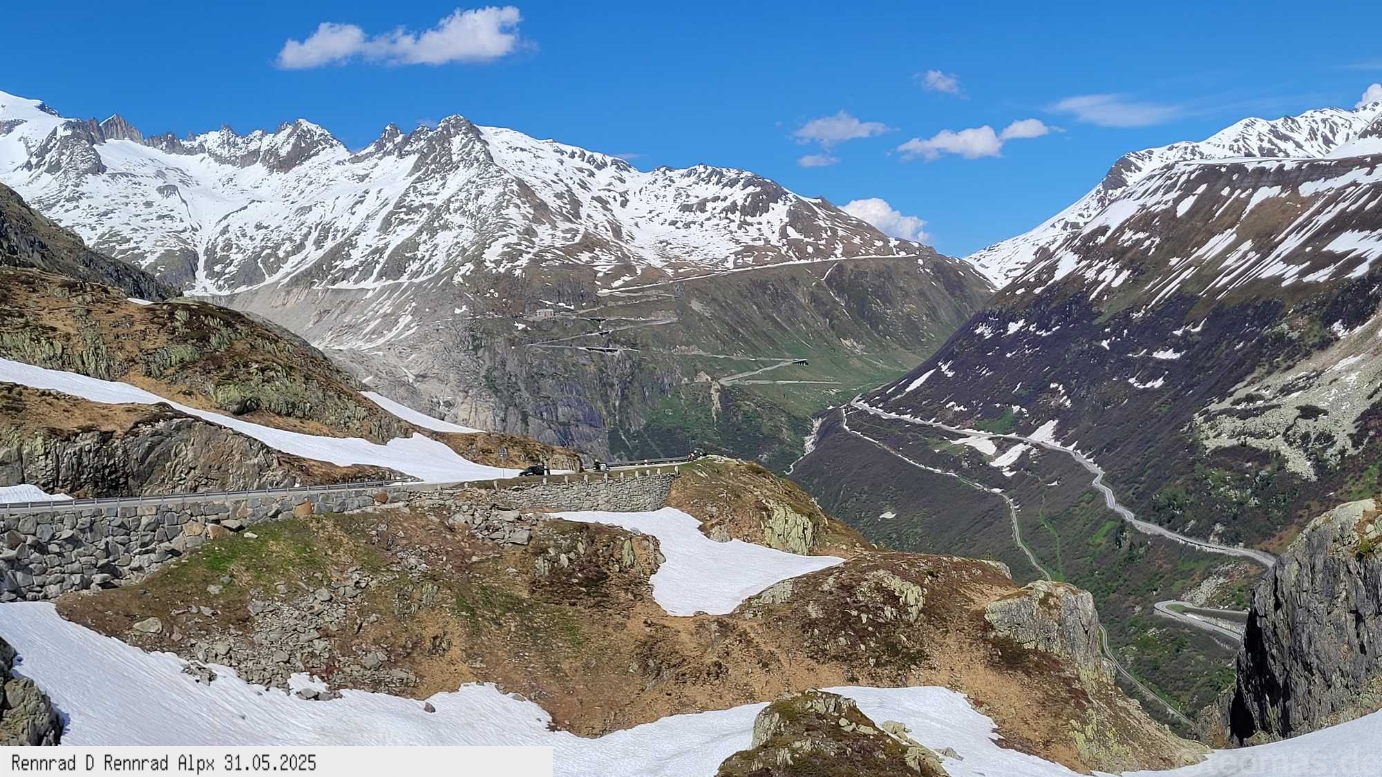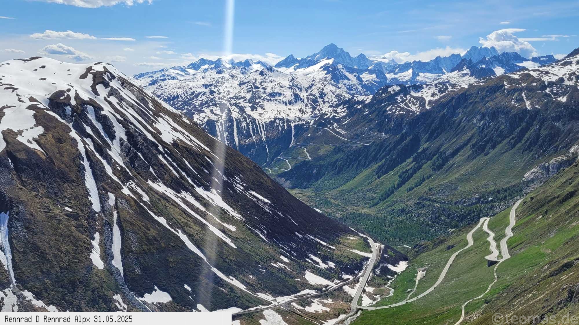 Dann wieder hinauf auf den Furka Paß mit Traumblicken auf die verschneiten Berge. Vorbei am Rhone Gletscher hinunter nach Gletsch, über den Grimsel Paß
