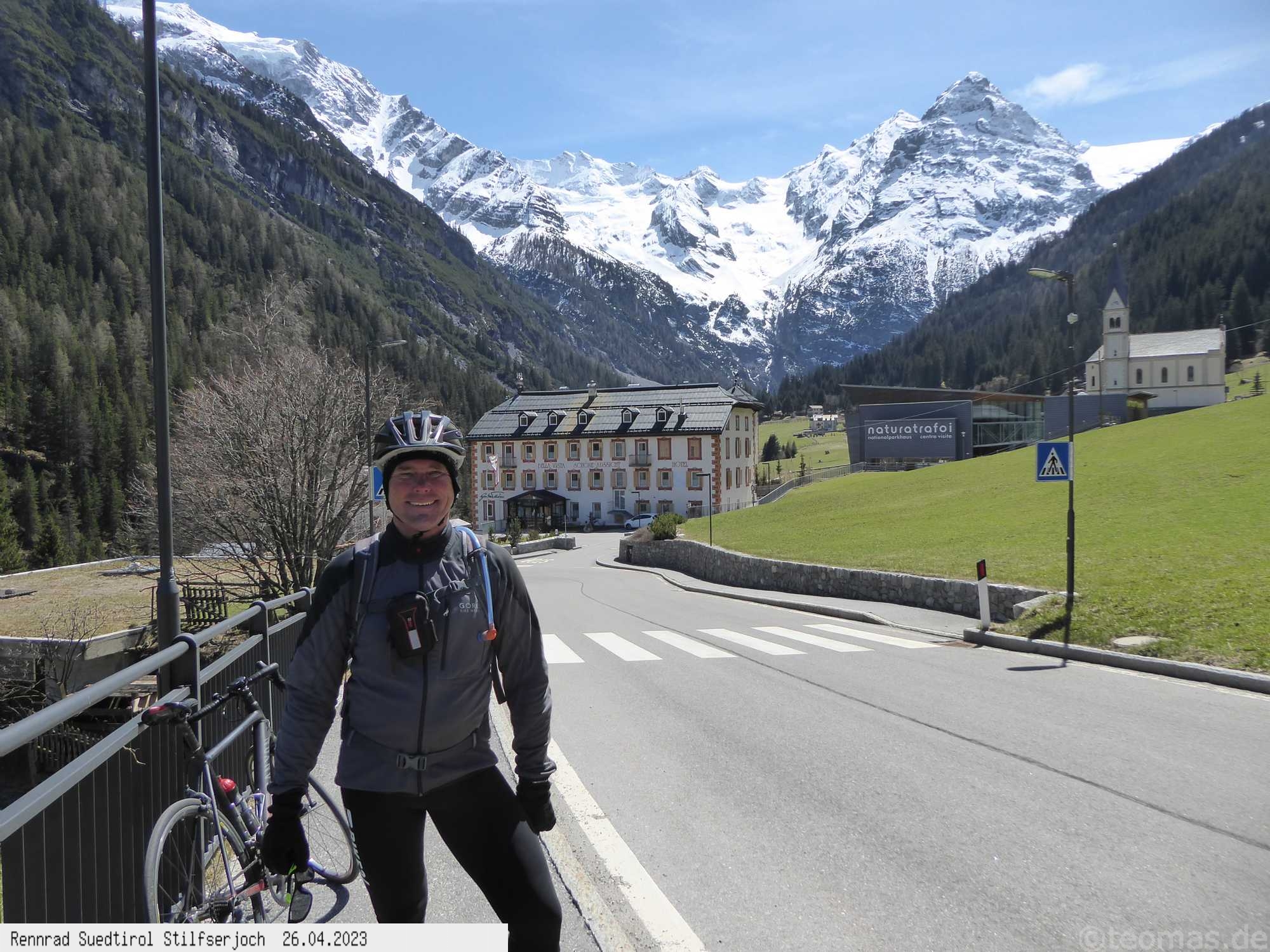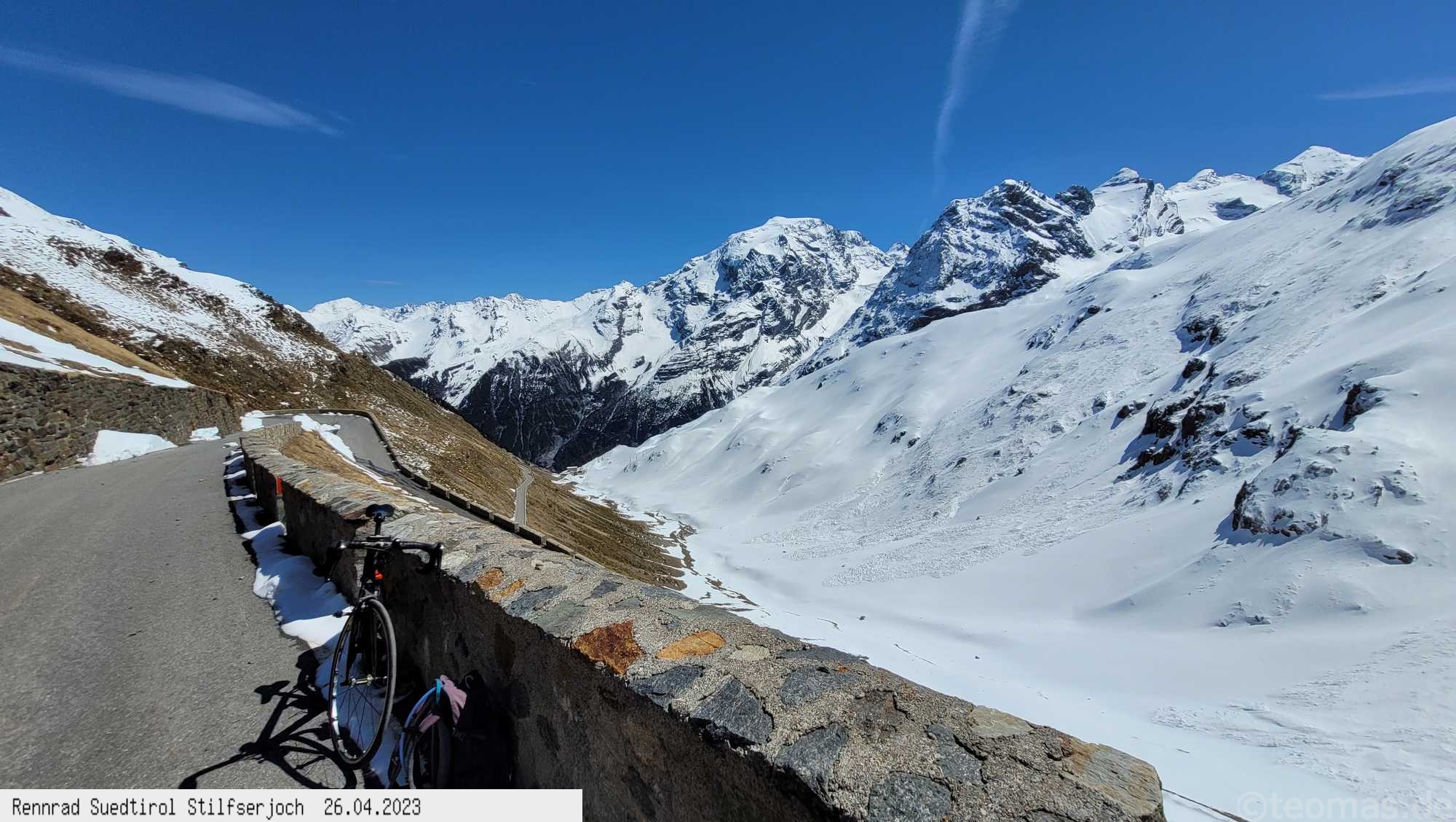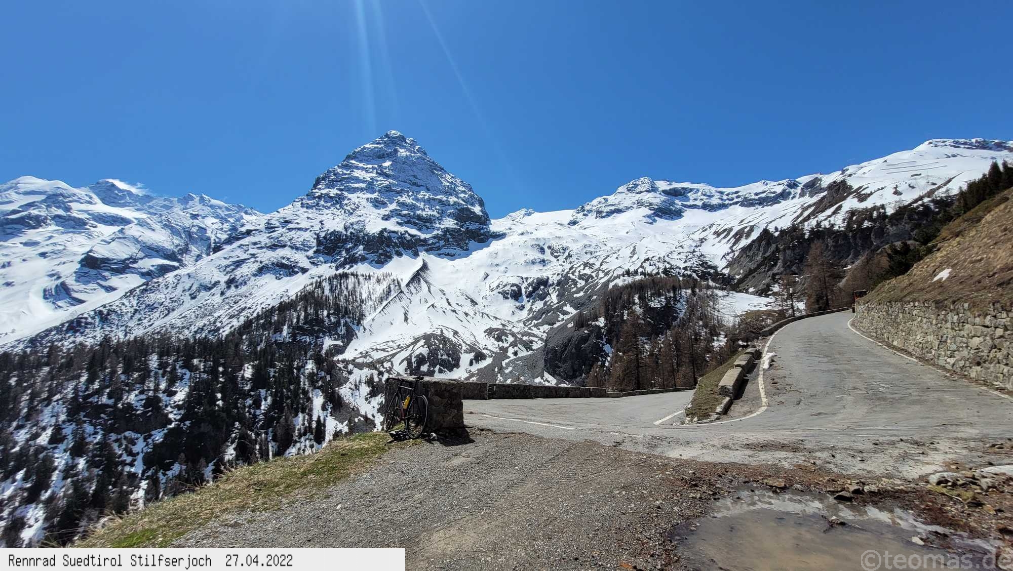 Als Startorte eignen sich Castelbell im Etschtal, Prad oder Trafoi. Bisher war ich von 2019 bis 2024 fünfmal gestartet, davon viermal im Frühjahr, wo die Paßstraße noch durch eine Wintersperre ab dem weißen Knott oder etwas unterhalb an einer Schranke geschlossen war. Der Paß-Übergang also nicht möglich. Man mogelt sich an der Sperre vorbei und genießt Autofrei die Serpentinenstraße Richtung Stilfser Joch, bis es wegen der Schneelage nicht mehr weiter geht. Je nach Winter kommt man so unterschiedlich weit hoch, die Winterlandschaft bei Sonnenschein ein Traum! Im Sommer fährt man die Paßstraße bis zum Joch, muß dafür den Autoverkehr ausblenden, im Corona Sommer Mitte Juli 2020 war zum Glück nicht so viel los. Die 1.800 Höhenmeter schafft man in 3 Stunden Fahrtzeit. Warme Klamotten empfehlen sich zu jeder Jahreszeit, vor allem für die lange Abfahrt, die in unter einer Stunde gerockt ist! Auch als Rennrad Alpencross in den Jahren 2009, 2019 und 2021 kletterte ich bereits auf das Stilfser Joch, die Faszination bleibt immer bestehen!