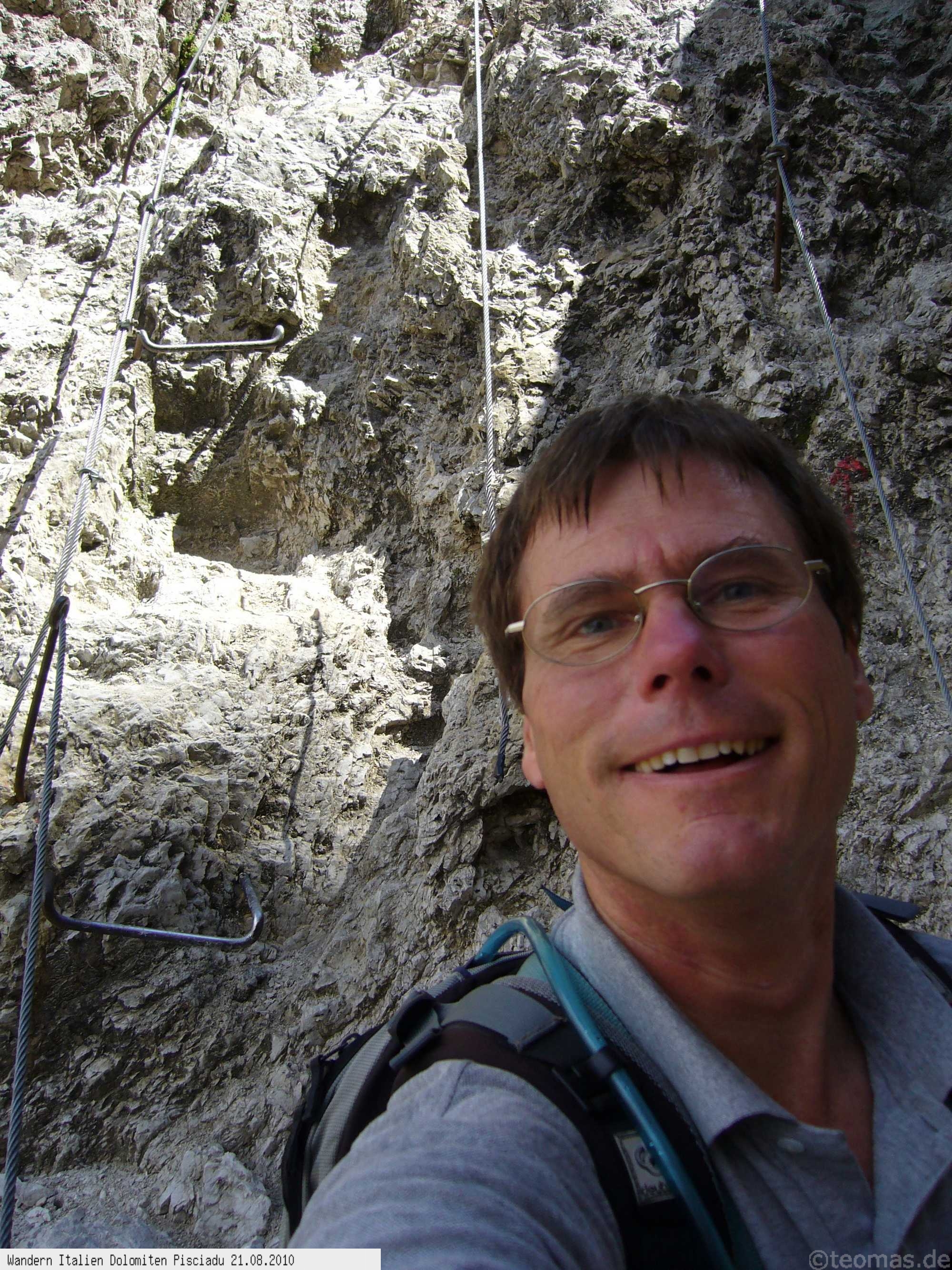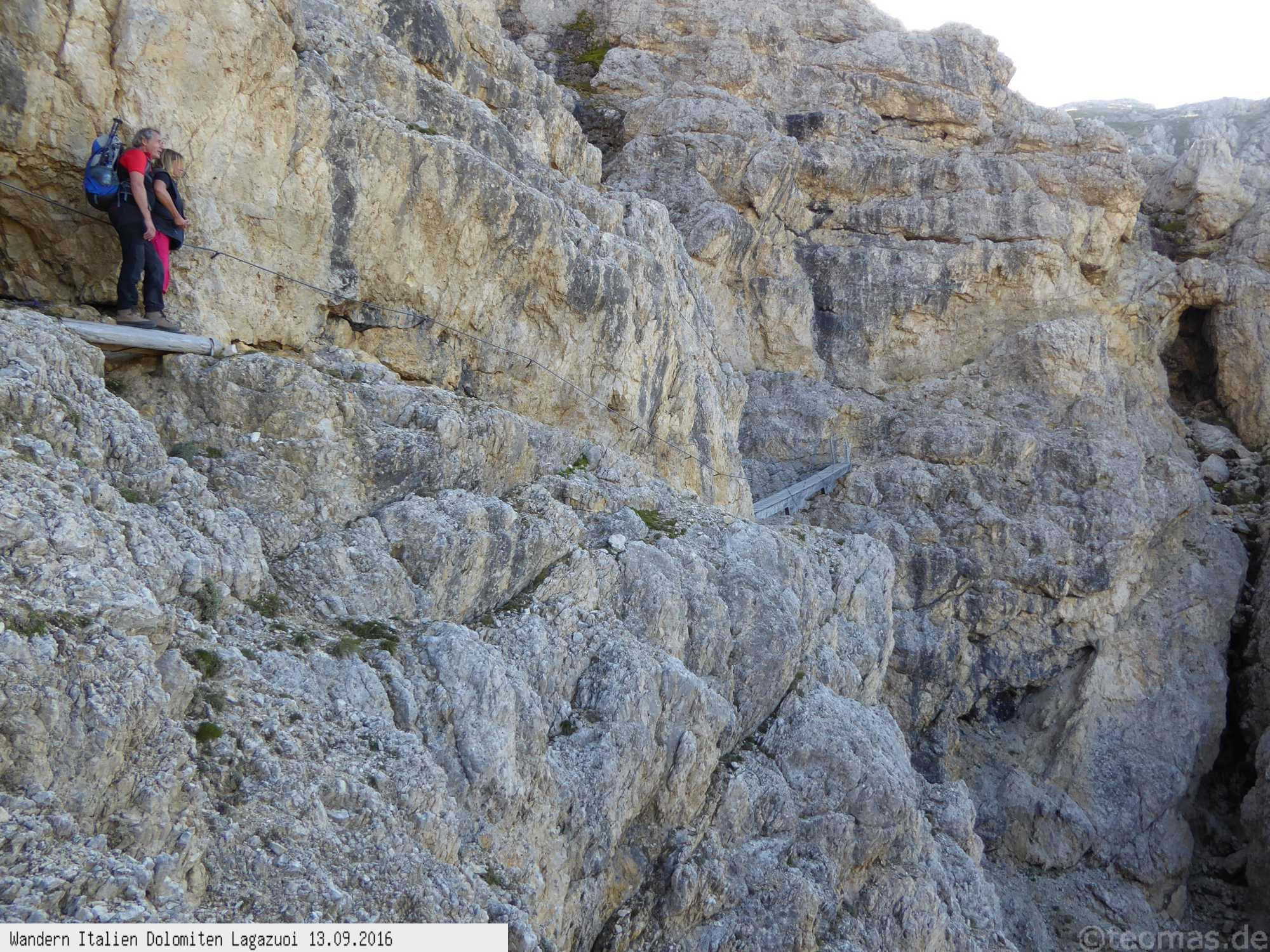 schwerer Klettersteig gekennzeichnet. Leider überlaufen, sodaß man viel Geduld braucht für die Originalroute, alternativ mittig abzweigt