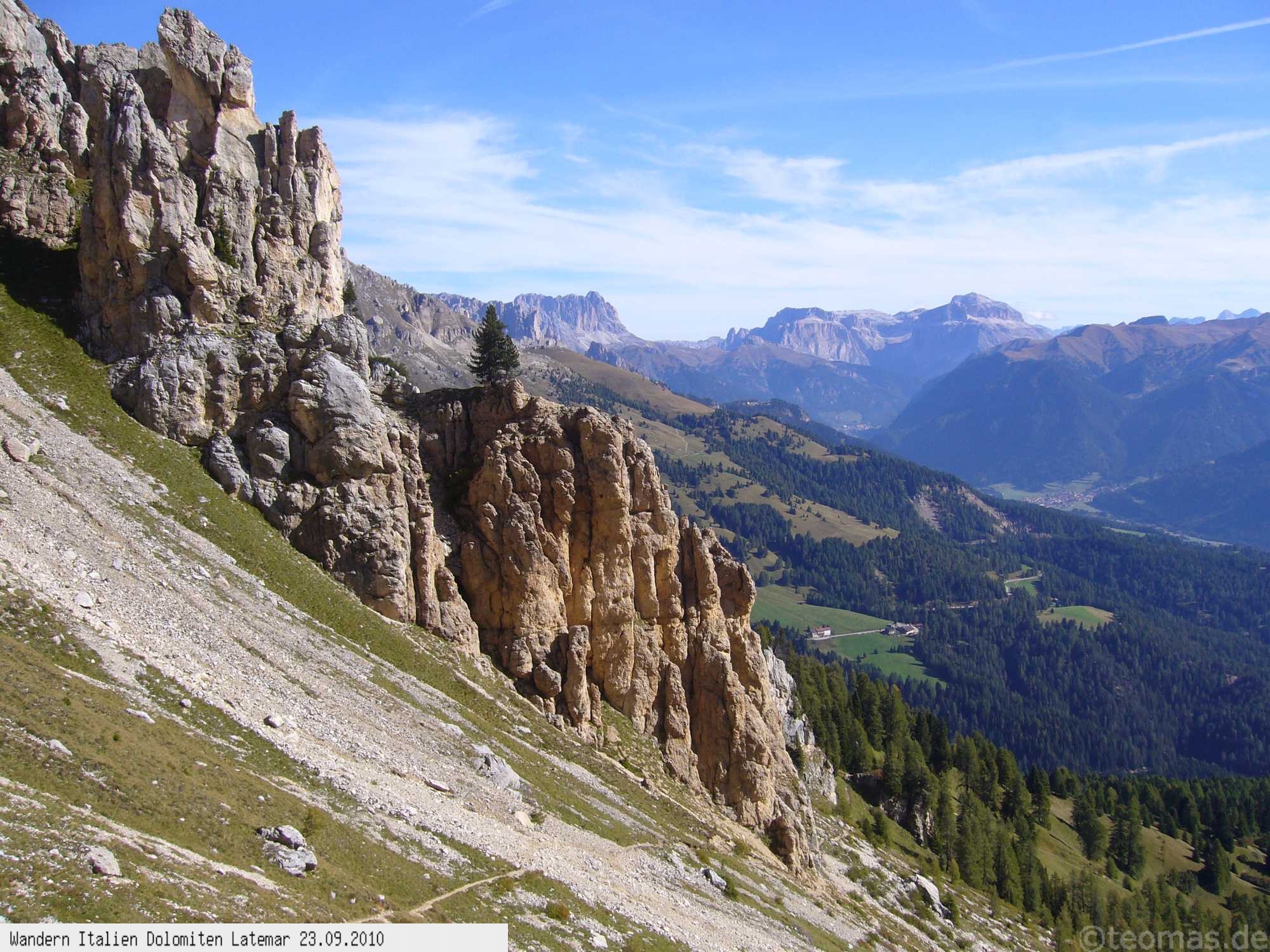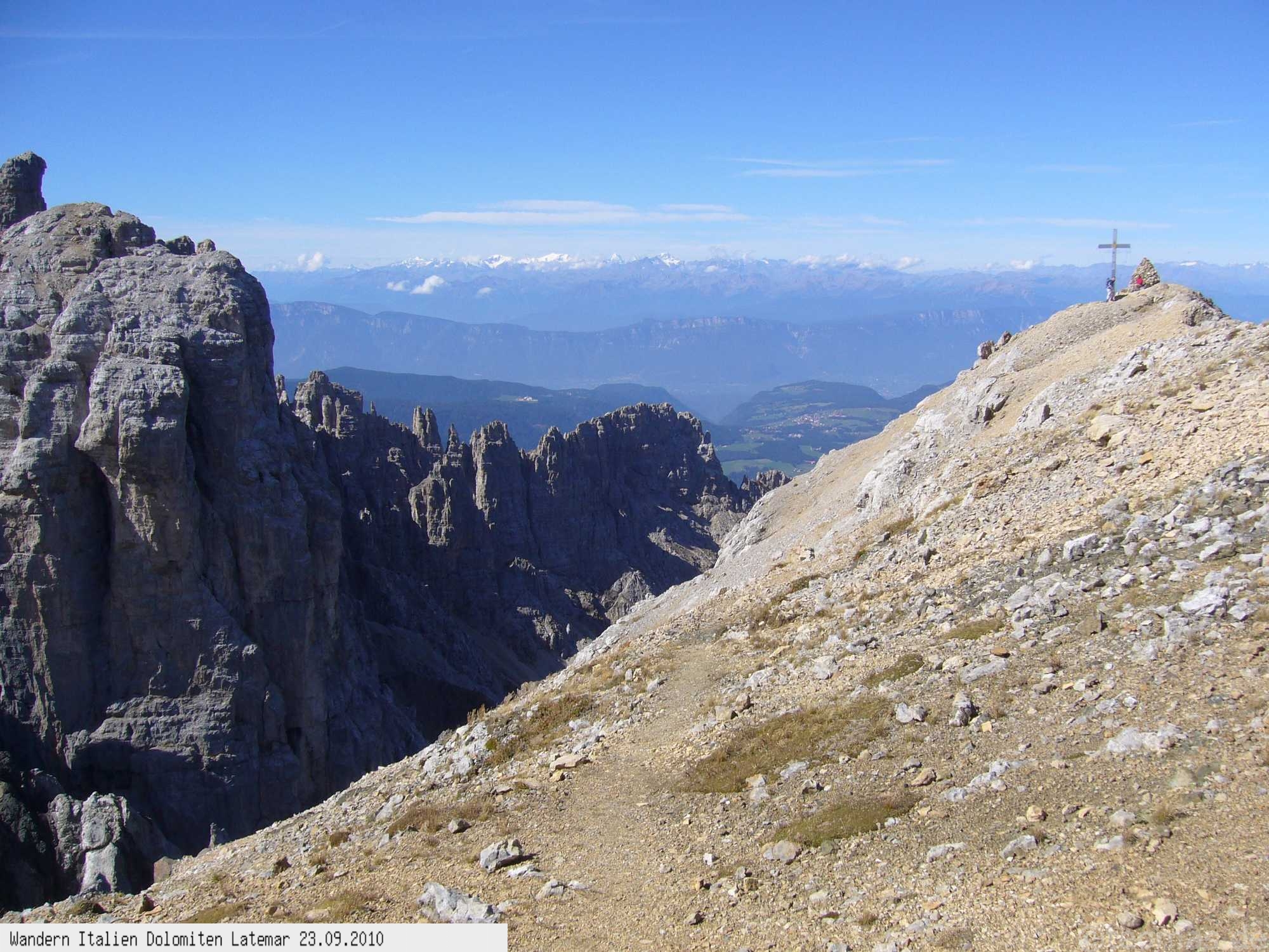 Vom Karer Paß wandert man die Wege Nr. 517/517b und Nr. 18 bis auf die Latemarspitze, mit gleichem Rückweg.