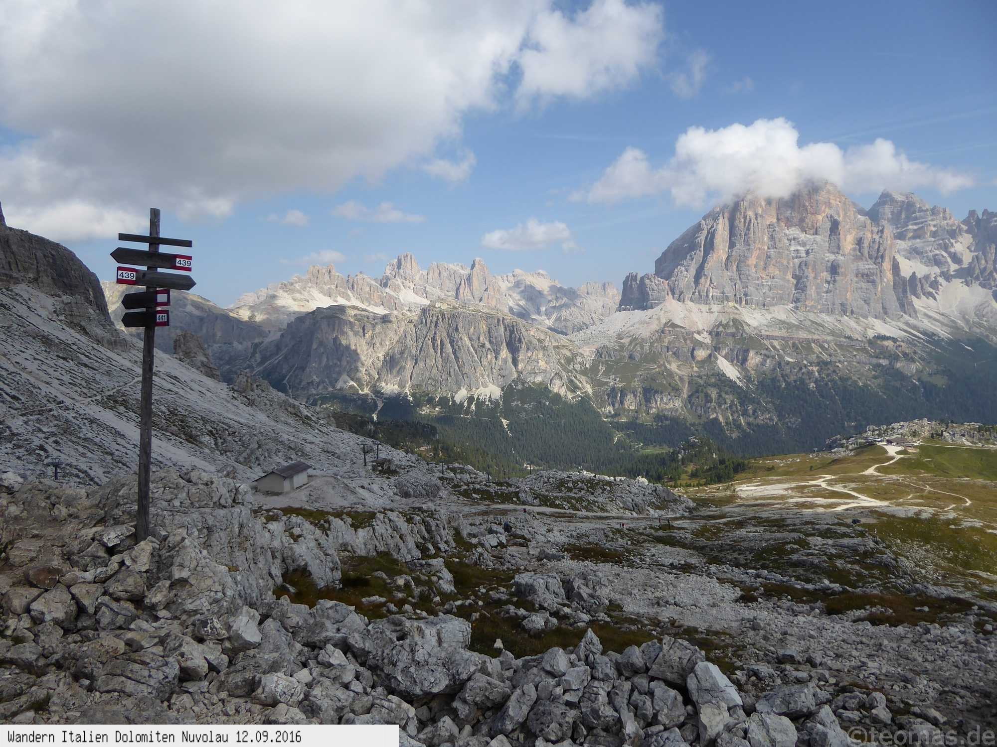 Vom Falzarego Paß nimmt man den Wanderweg Nr. 440 zur Scolatoli Hütte und weiter auf die Averau und Nuvolau Hütte.