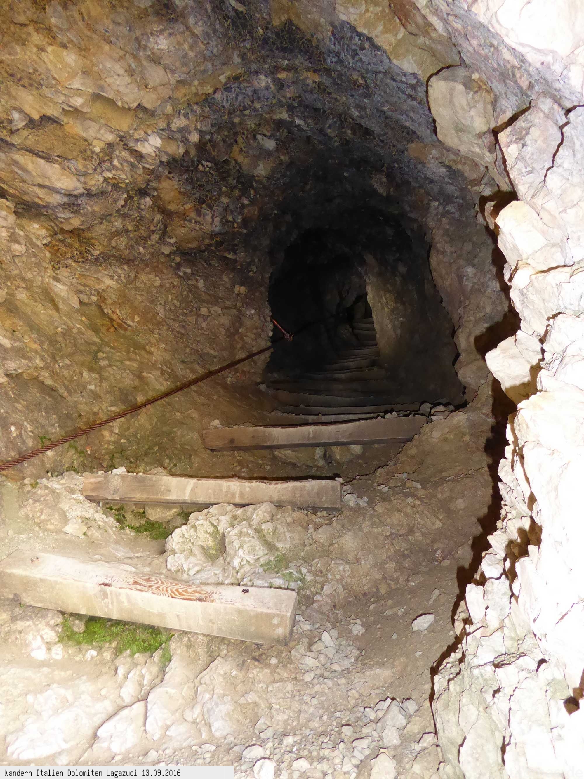 Felsengewirr gepaart mit Dolomiten Blicken, Brücken, Seilsicherungen! Hinunter gelangt man durch die im 1. Weltkrieg gesprengten Felsentunnel,