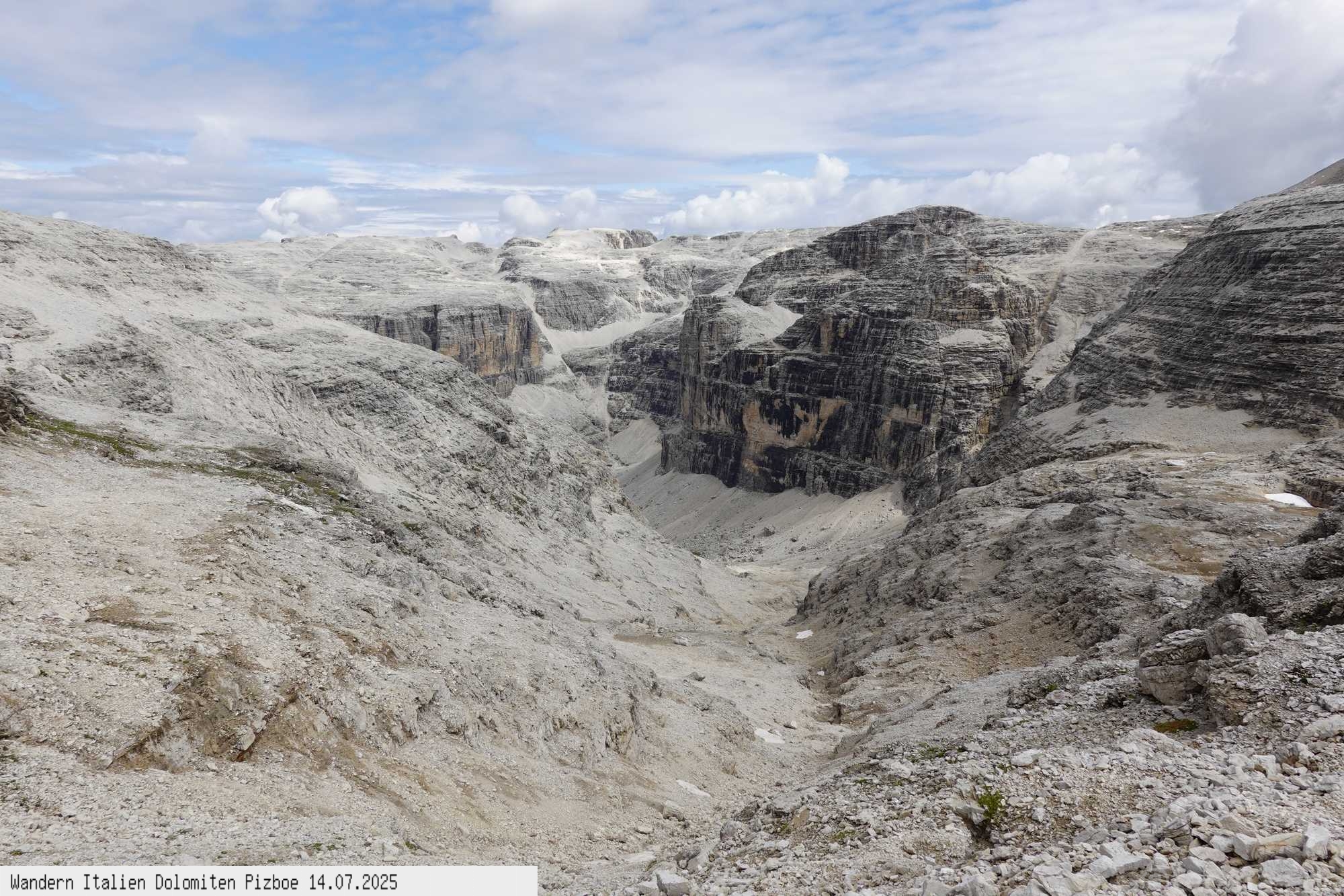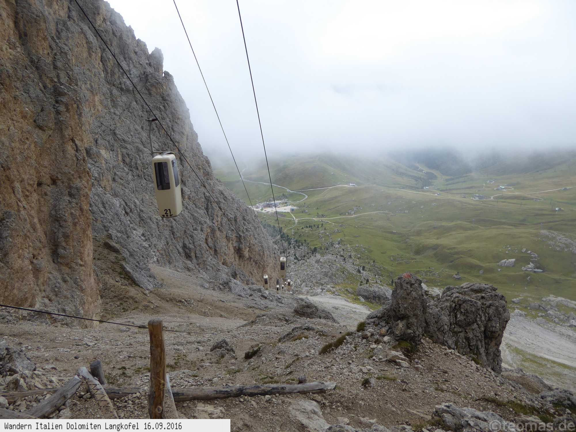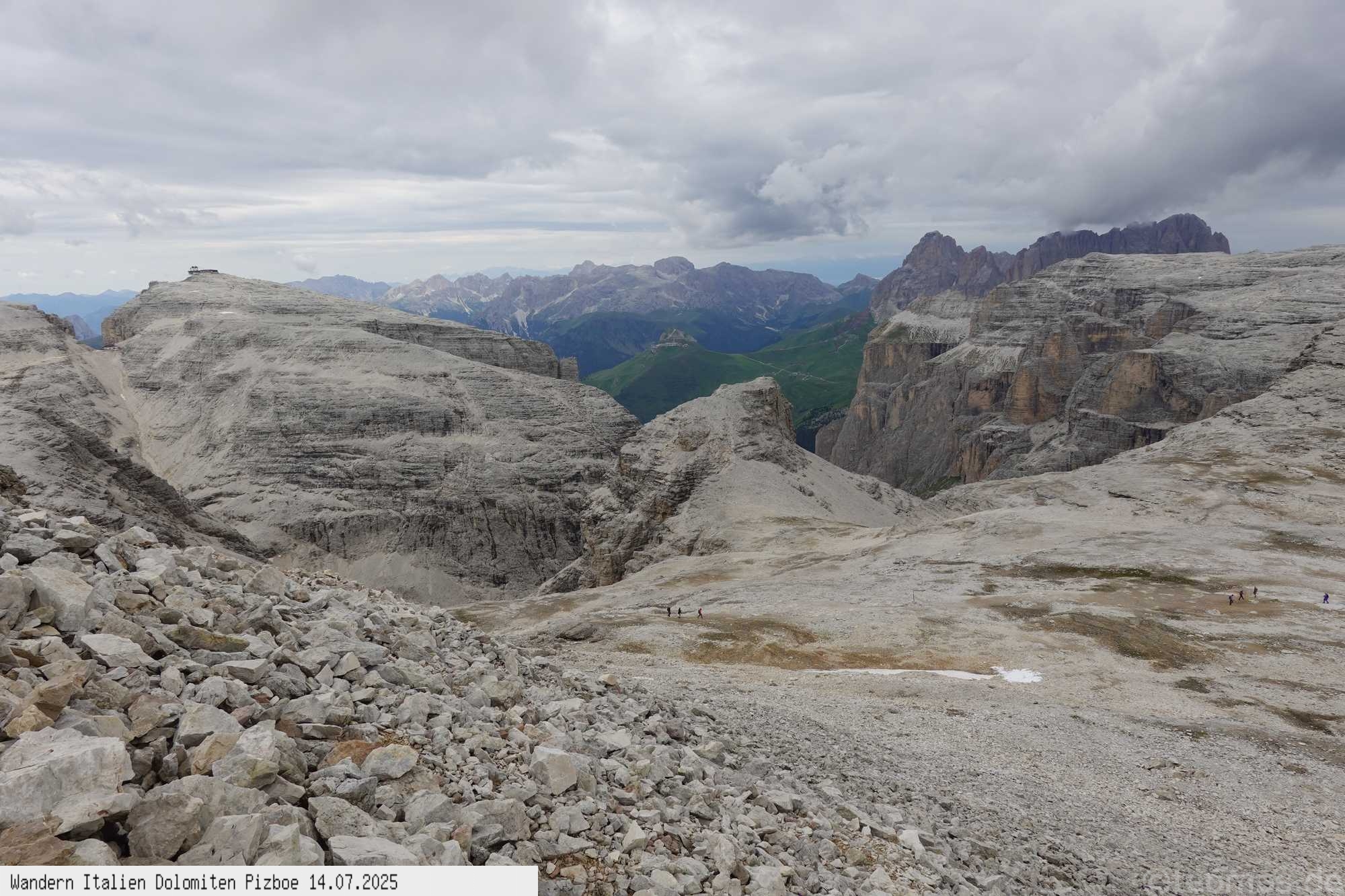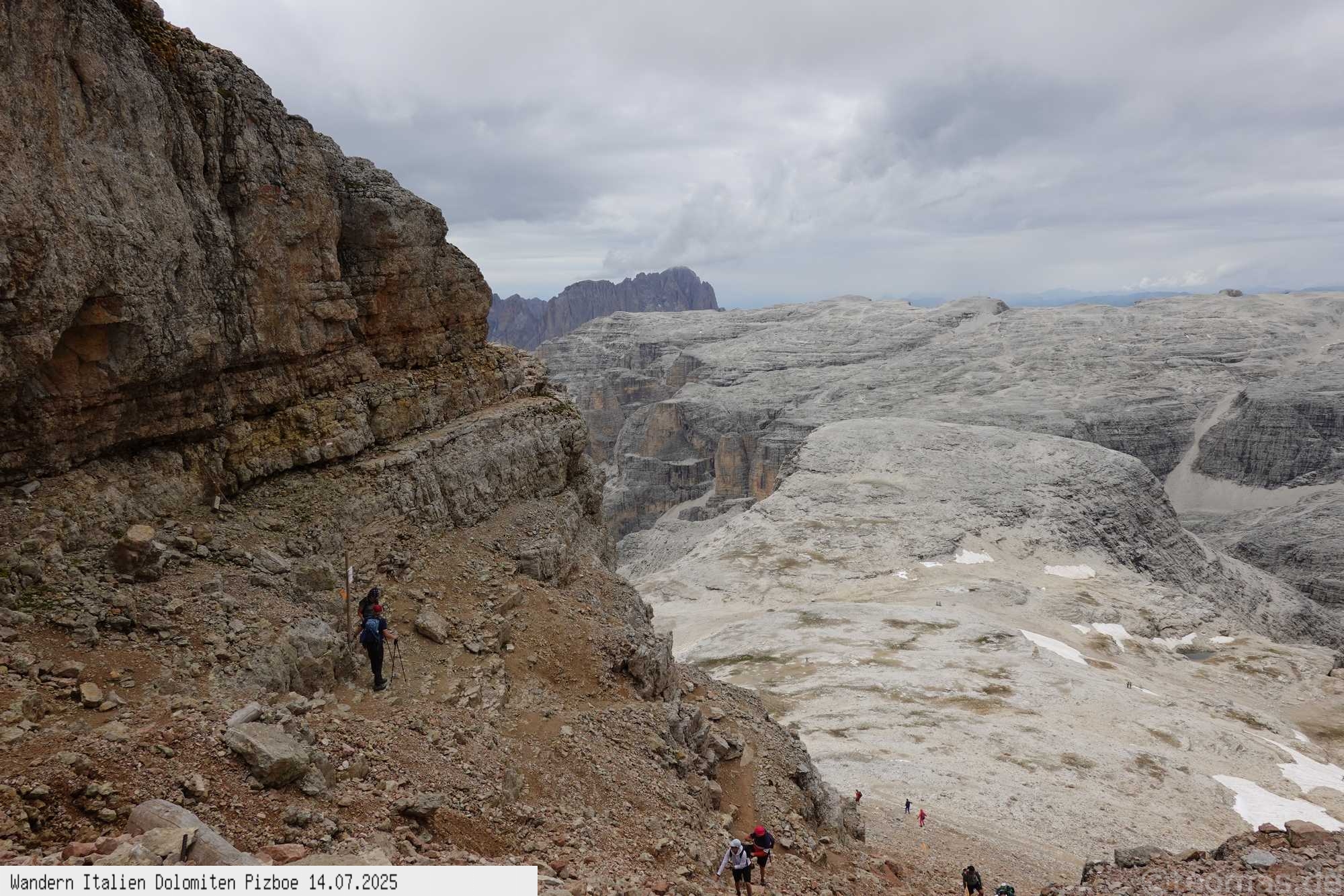 Überschreitung hinunter zum Rifugio Pordoi und gleichen Weg wie auf dem Hinweg zur Seilbahn. Obwohl nur 400 Hm und 11 km überwunden werden
