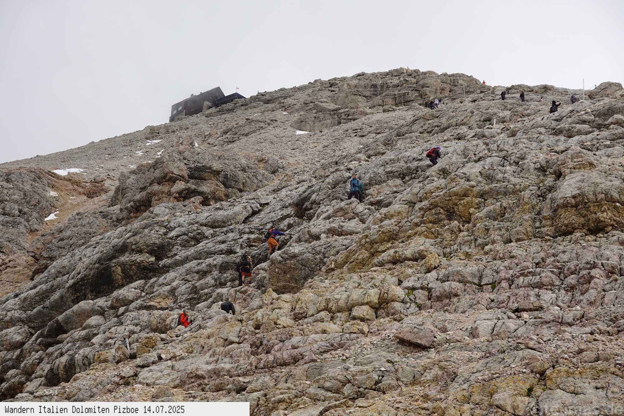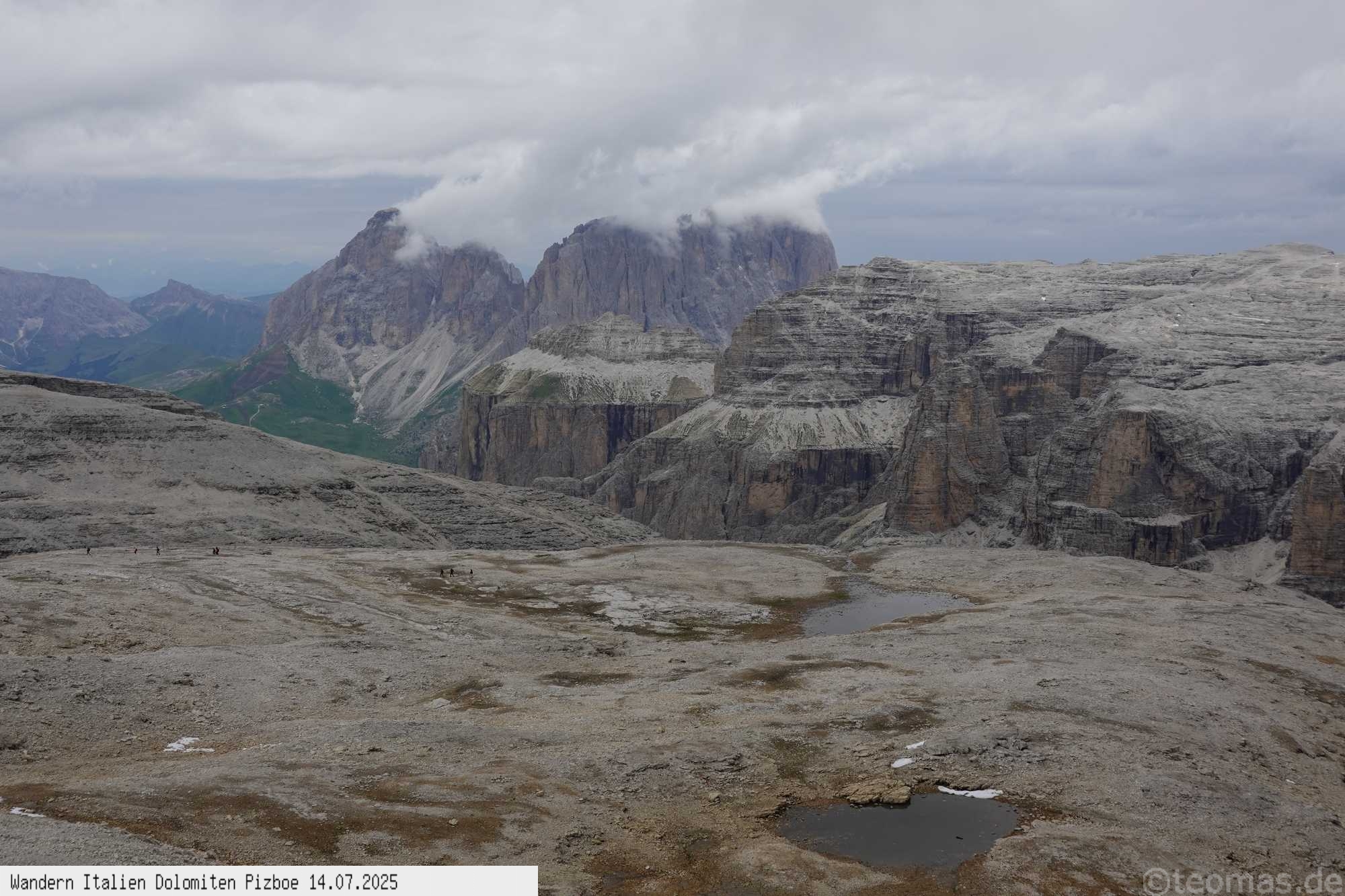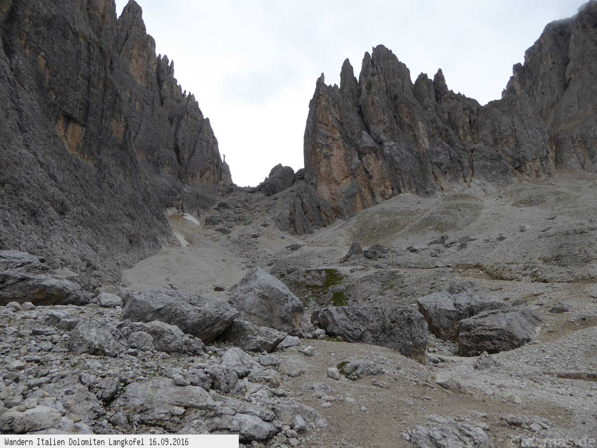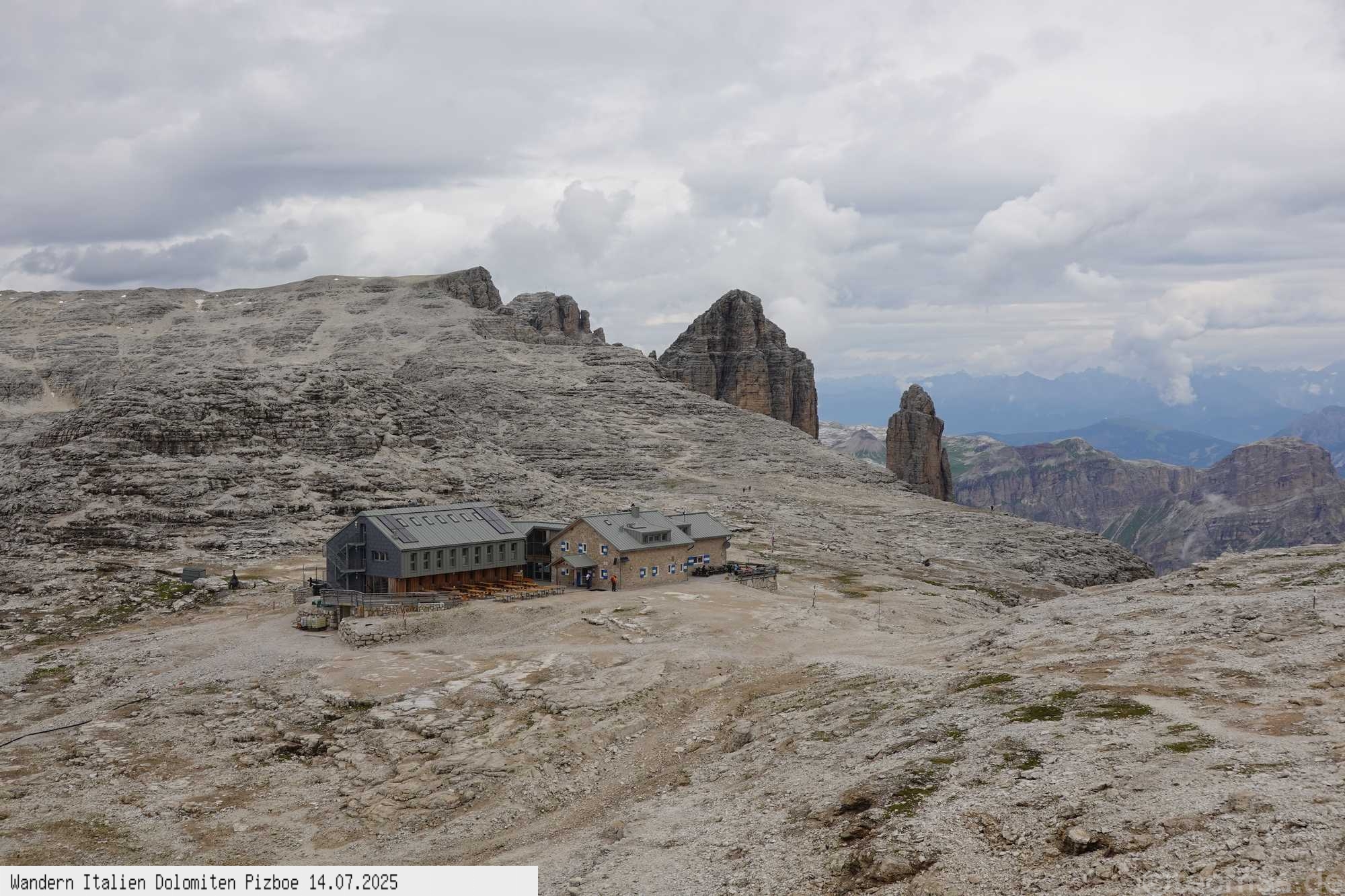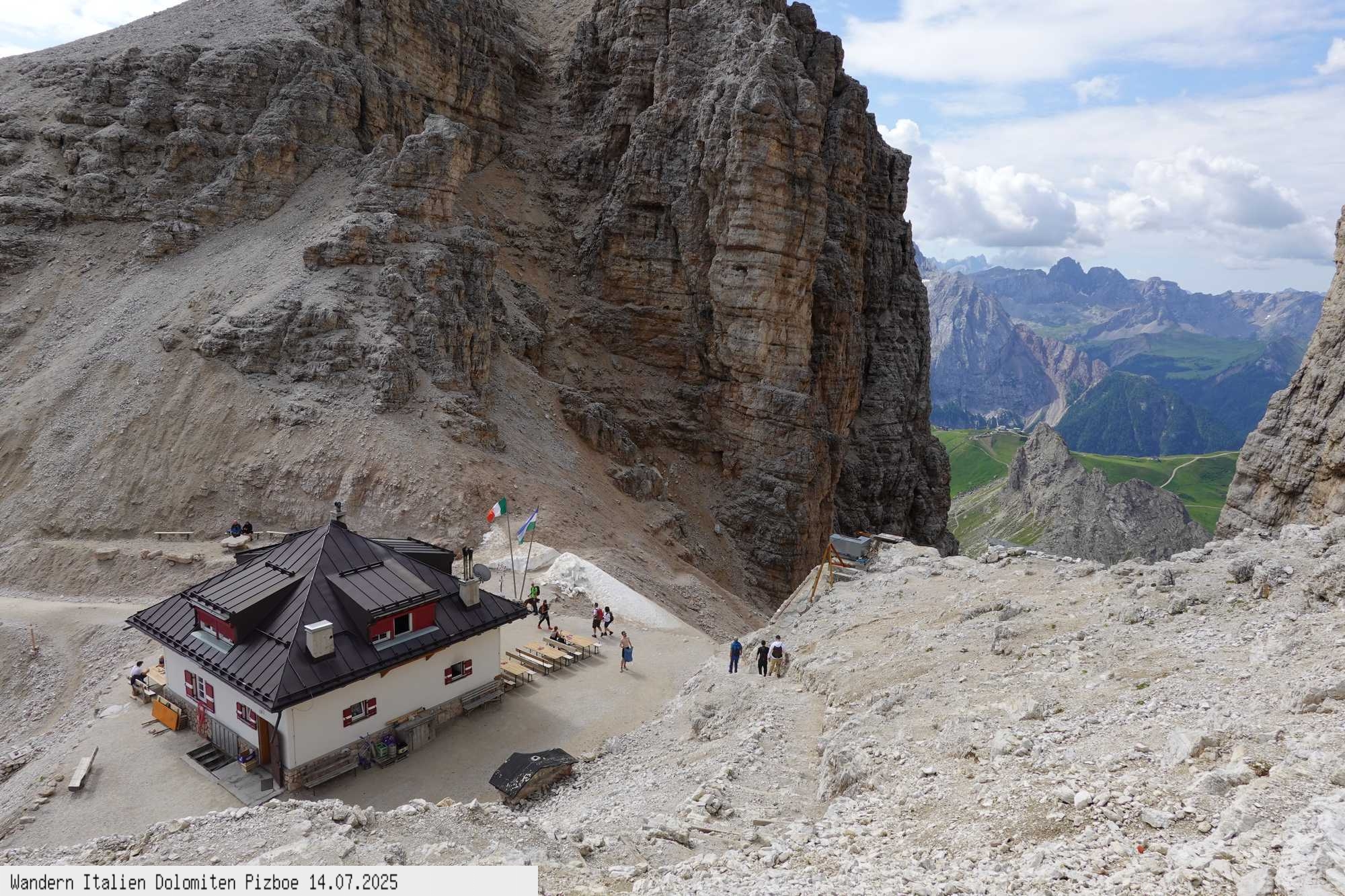 Überschreitung hinunter zum Rifugio Pordoi und gleichen Weg wie auf dem Hinweg zur Seilbahn. Obwohl nur 400 Hm und 11 km überwunden werden