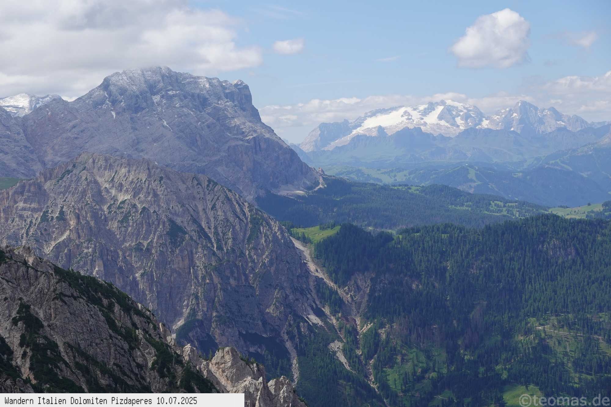 Sehr schöner Blick auf das gegenüber liegenden Tofane Massiv, den Sella Stock sowie die Marmolada.