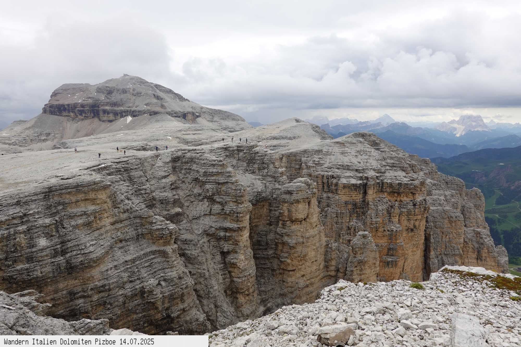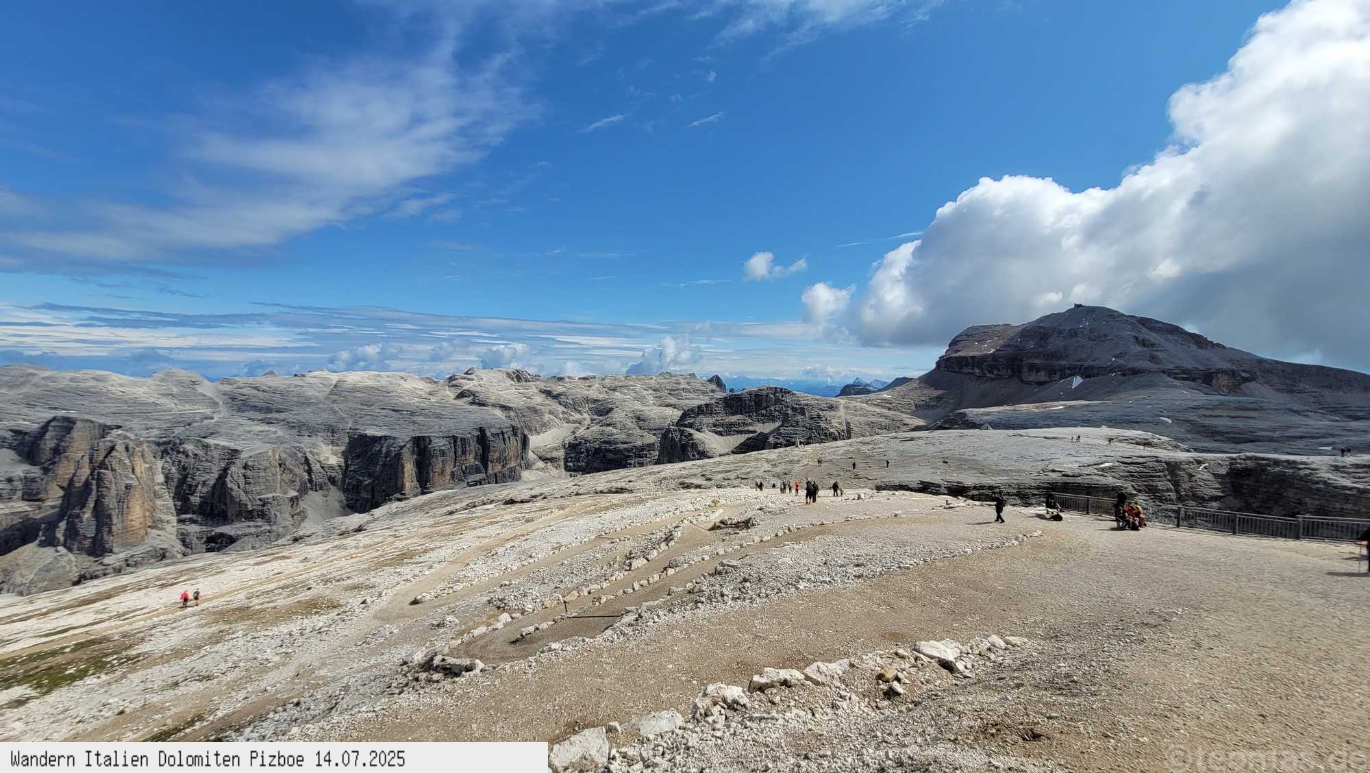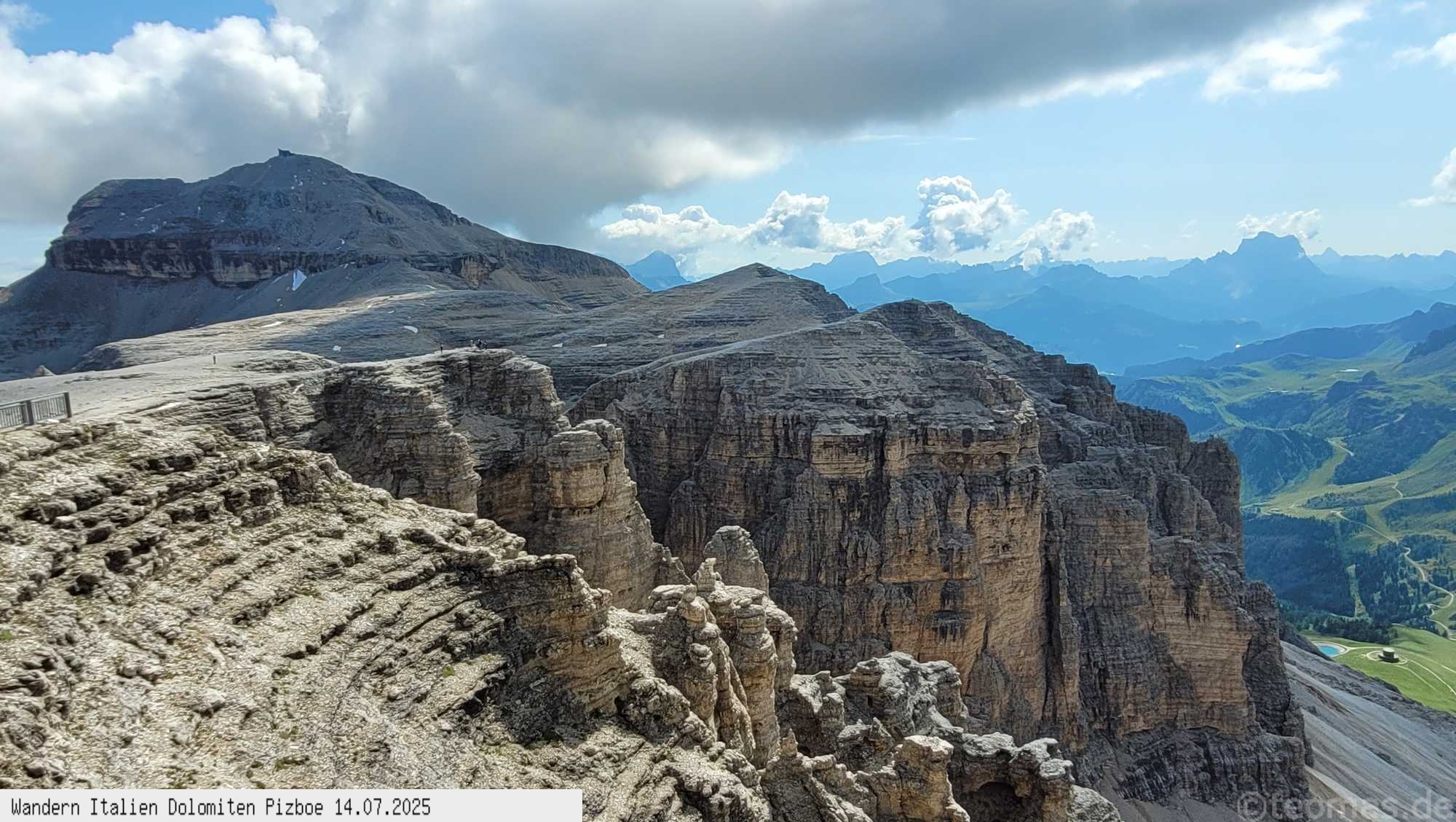 in grandioser Steinlandschaft zum Gipfel des Piz Boe auf 3.150m. Vorbei an der Rifugio Boe nimmt man den Klettersteig hinauf auf den Gipfel. Die Aussicht