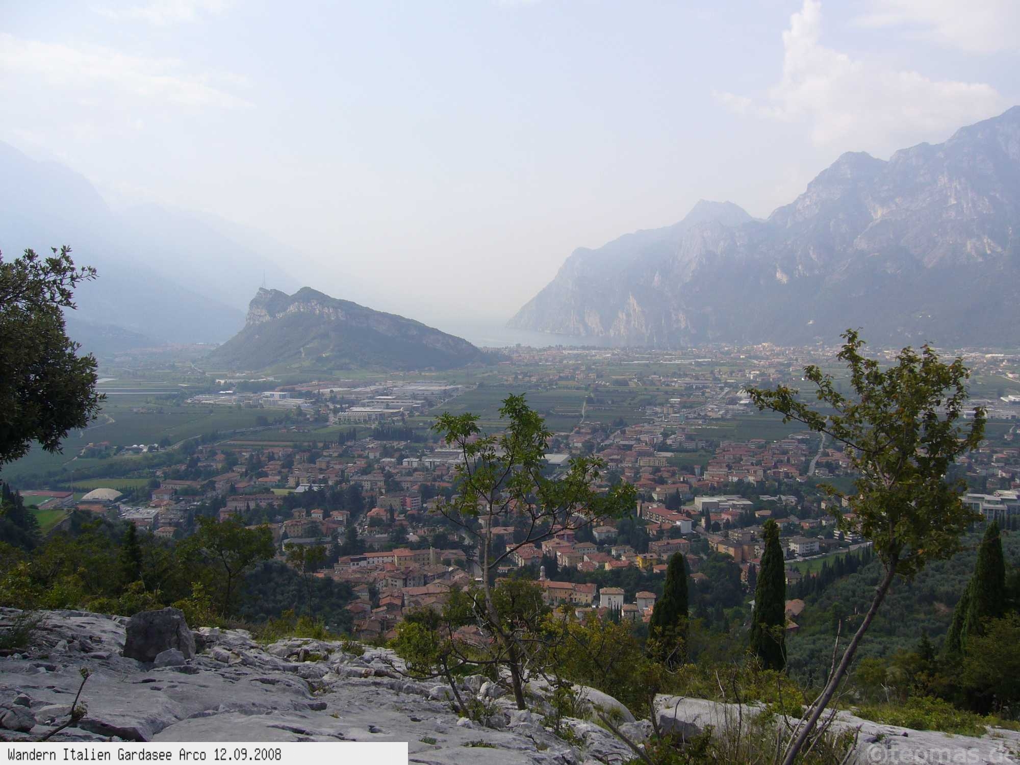 Mit Glück freie Sicht auf den Gardasee mit Blick auf die gegenüber liegenden Berge und Dörfer wie Limone, Riva und Torbole.