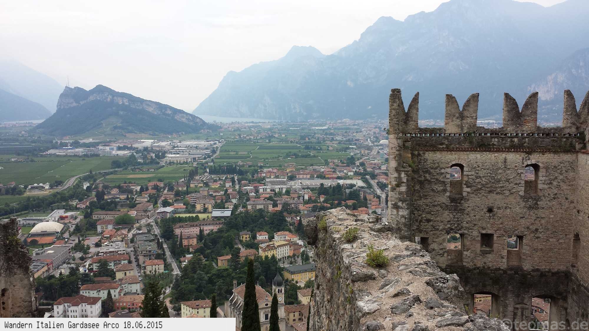 Der kurze Eisenweg über den Dächern von Arco bietet aus der steilen Wand tolle Ausblicke auf das Castello di Arco und den Gardasee.