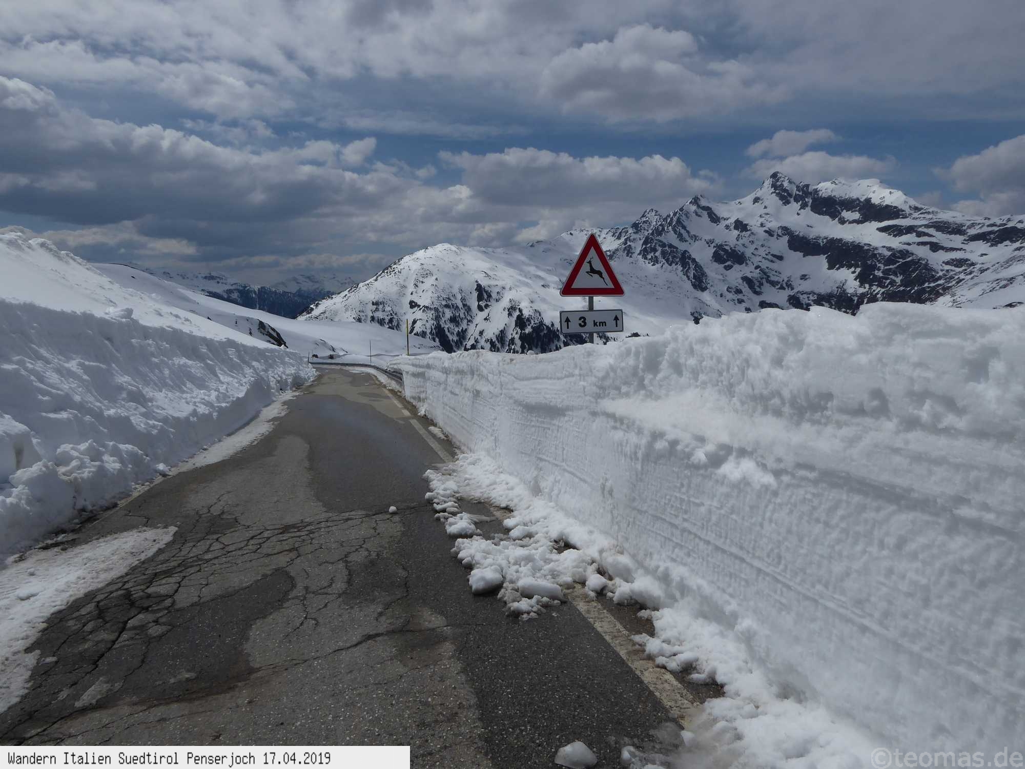 Die Penserjoch Paßstraße ist um diese Zeit noch gesperrt, da auf dem Weg nach oben links