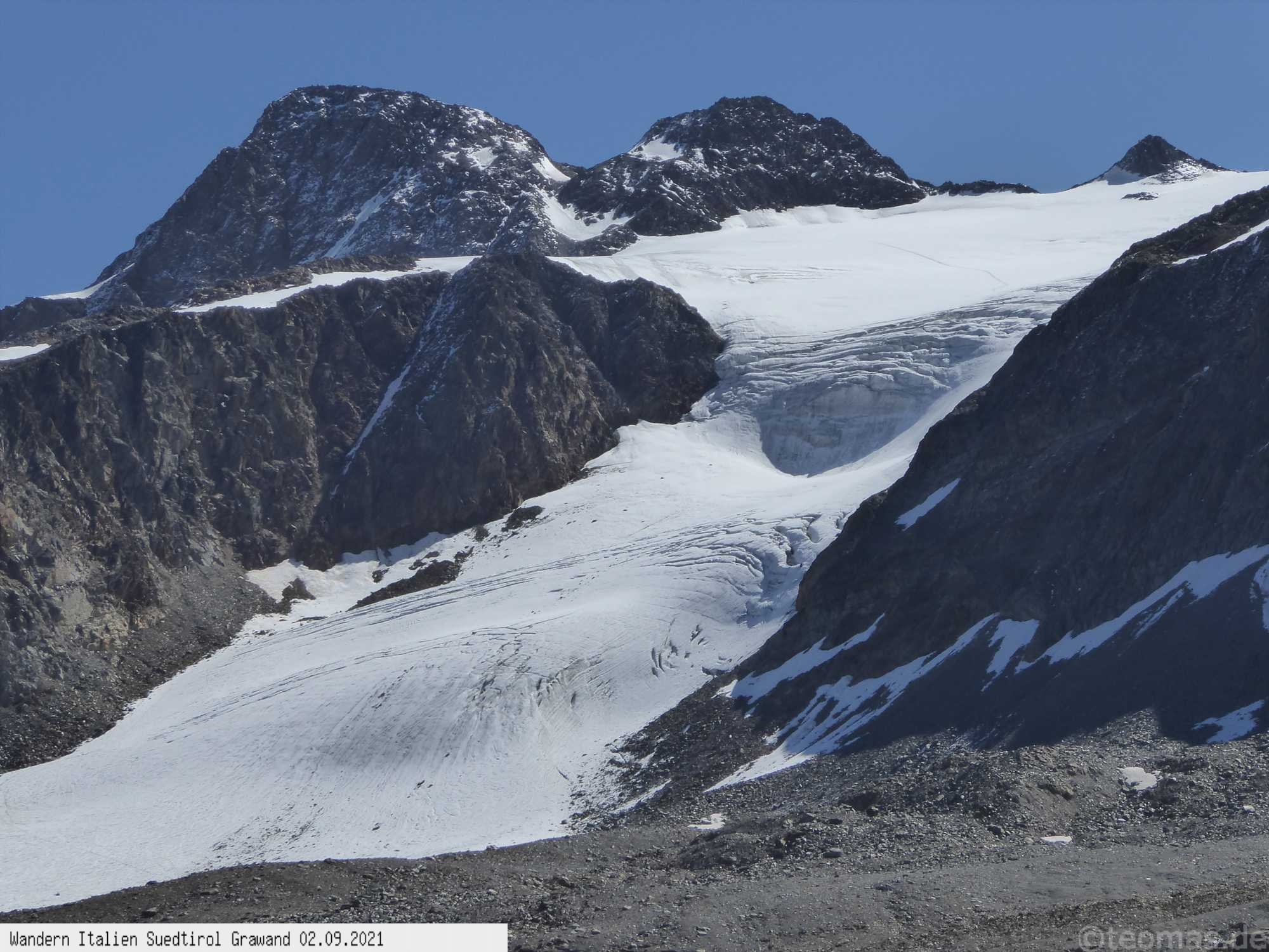 dort Aufstieg (ca. 900 Hm) zum Madritschjoch auf 3.100 Hm. Belohnt wird man mit einem Traumblick auf den Ortler, der
