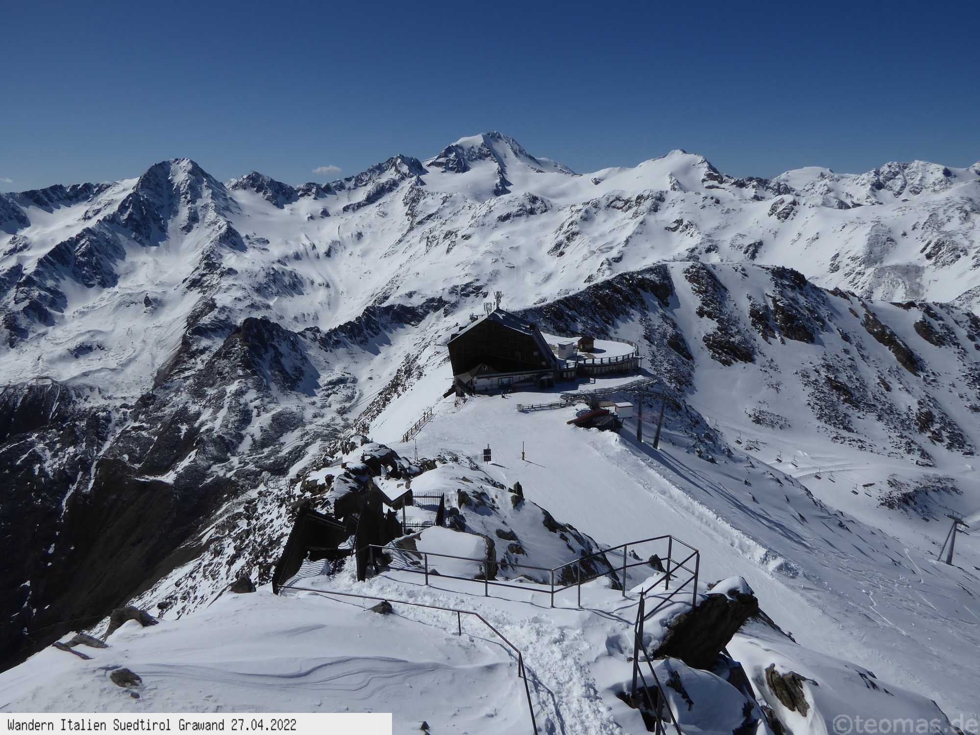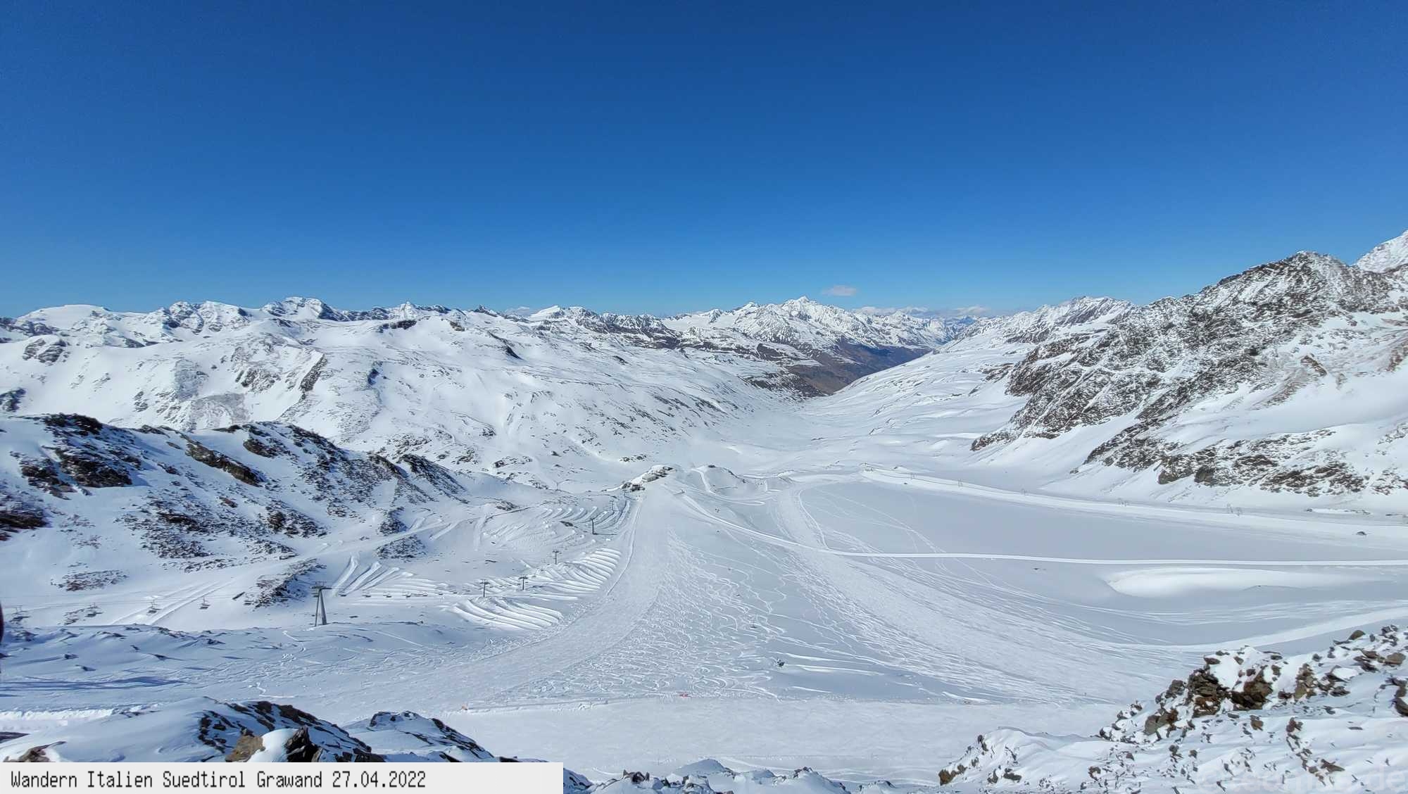 Am Talende des Schnalstals in Kurzras liegt das Gletscherskigebiet der Grawand auf über 3.000 Hm.