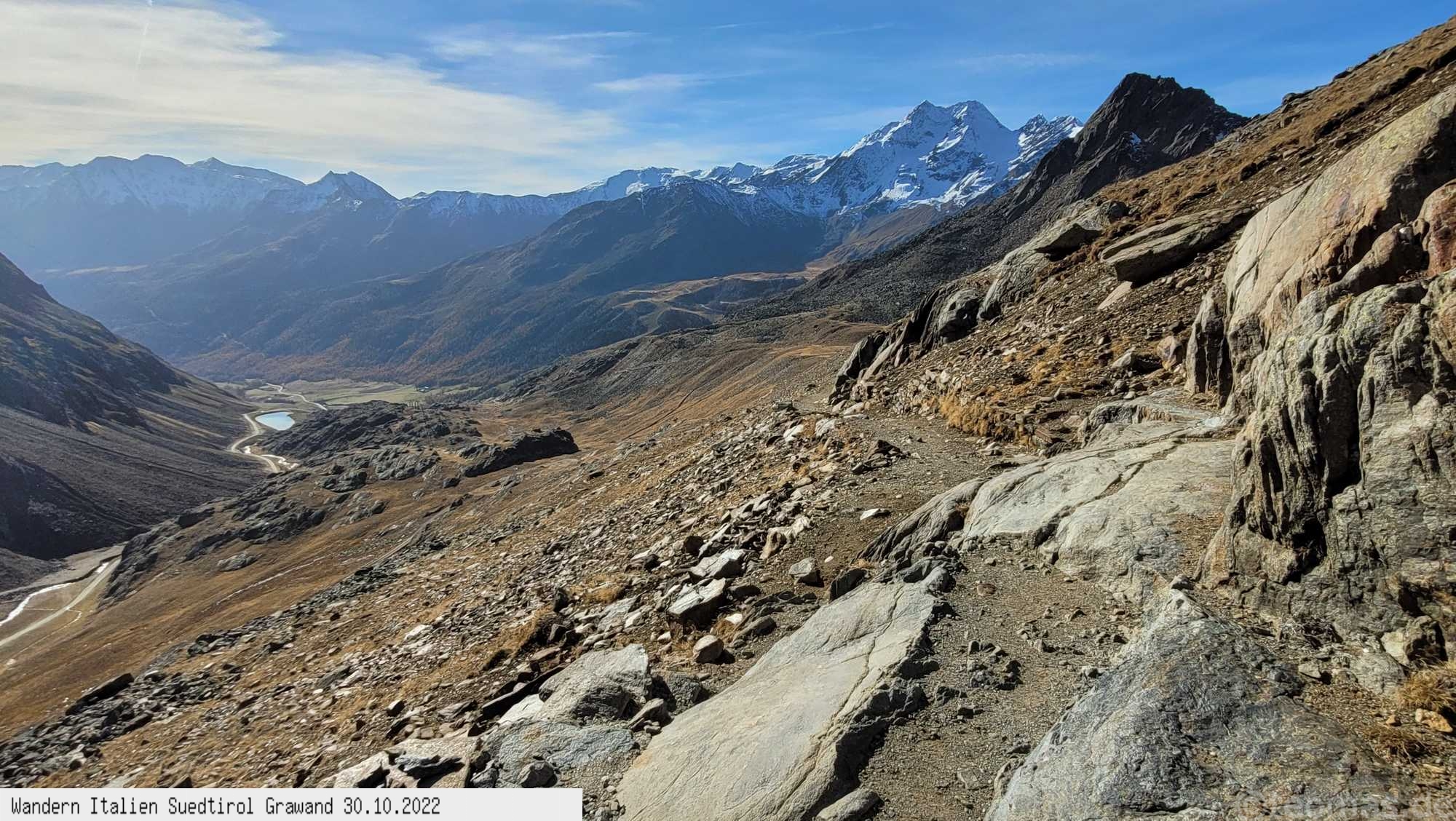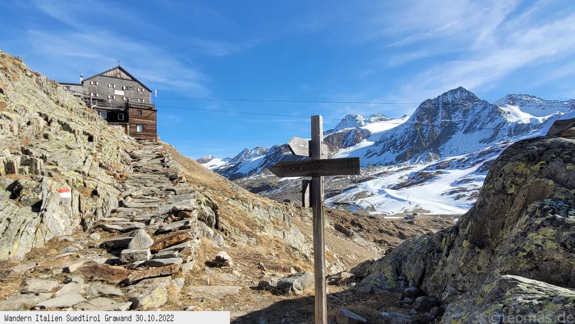 Eine Bergwanderung im Herbst von Kurzras auf dem Wanderweg Nr.3 über die Schöne Aussicht Hütte auf die Grawand und mit