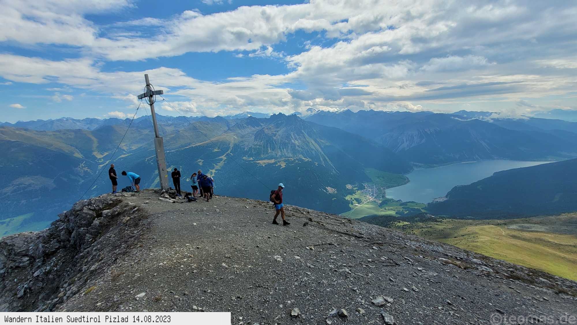 und weiter steiler bergauf bis zum Piz Lad, technisch einfacher Weg bis zum Gipfel. Die Aussicht ist grandios, hinunter zum Reschensee sowie Richtung