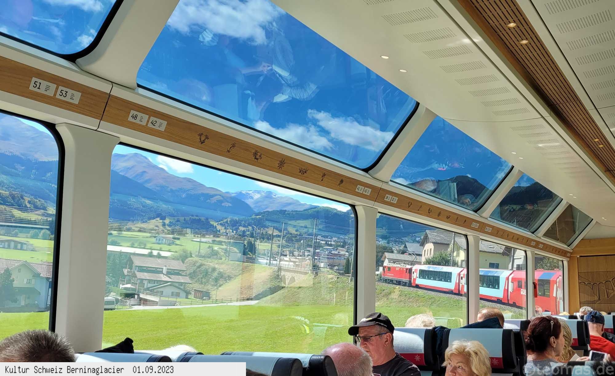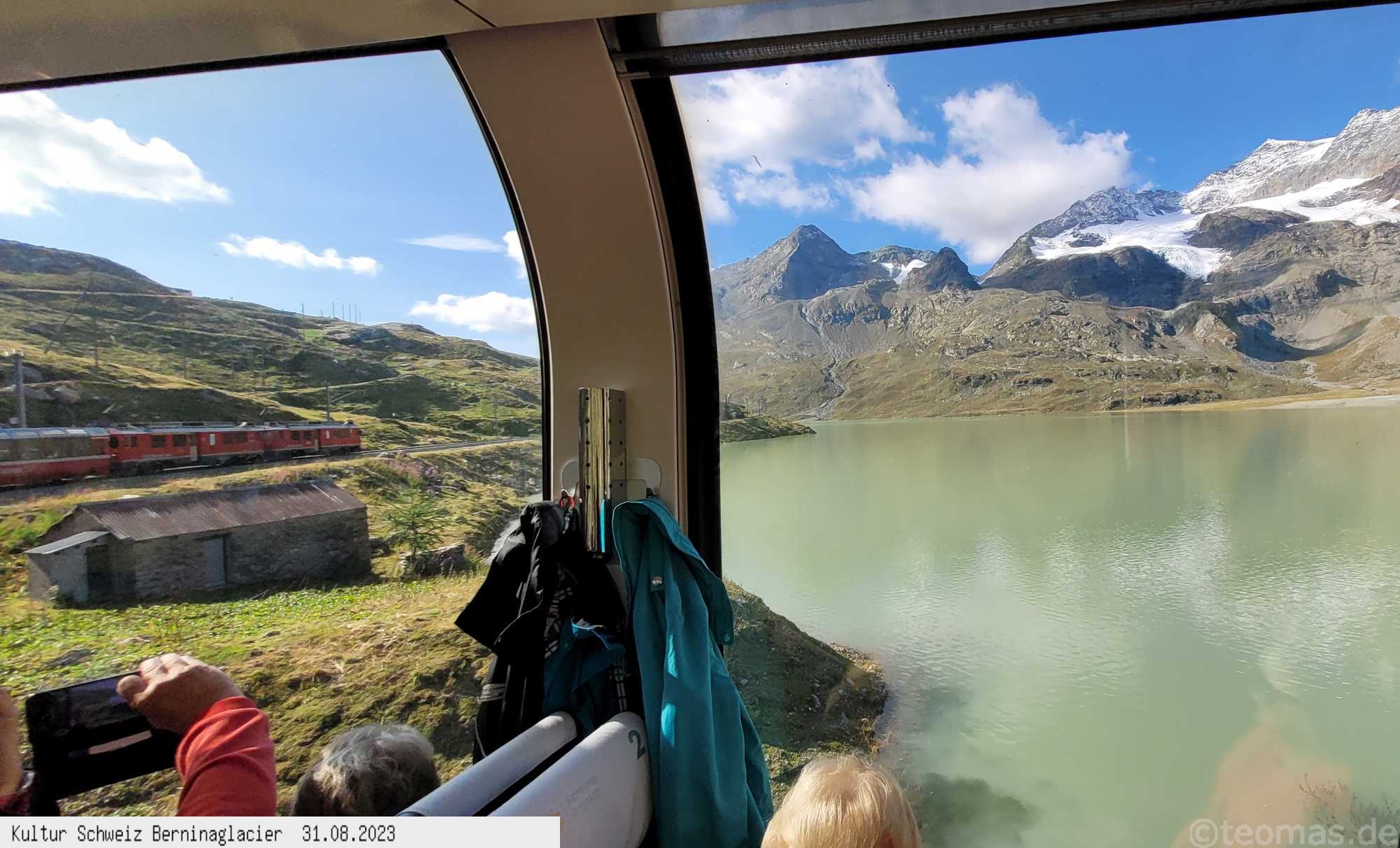 und dem Bernina Paß bis nach Poschiavo, Brusio und Tirano in Italien. Die 2,5h stündige Zugfahrt im Panoramawagen sehr kurzweilig mit Top Ausblicken
