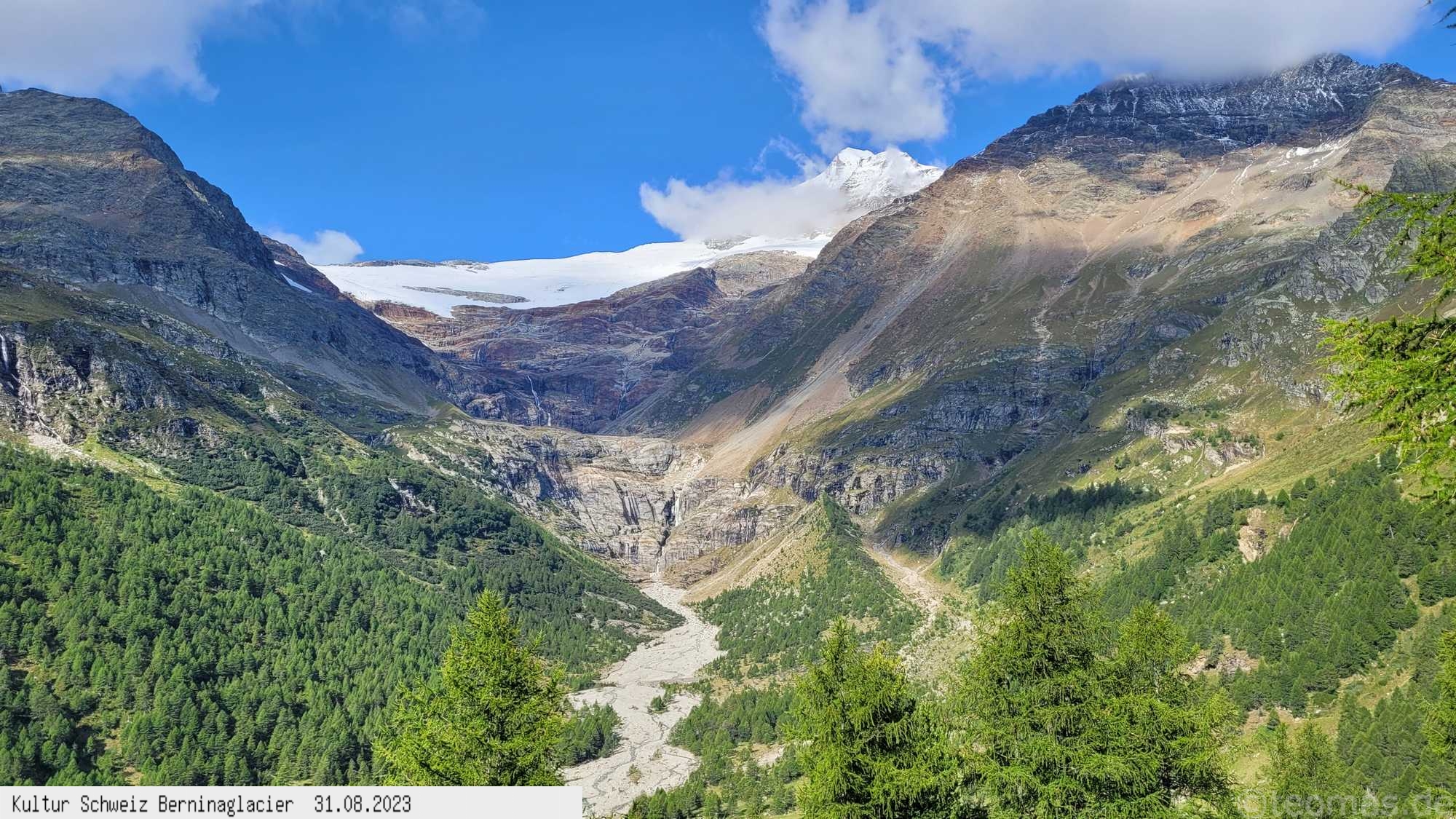 dem Palü-Gletscher mit dem Palü-See. Bei Brusio der berühmte Kreisviadukt. Im Viertelkreis angelegter Viadukt auf kleinstem Raum, damit der Zug den
