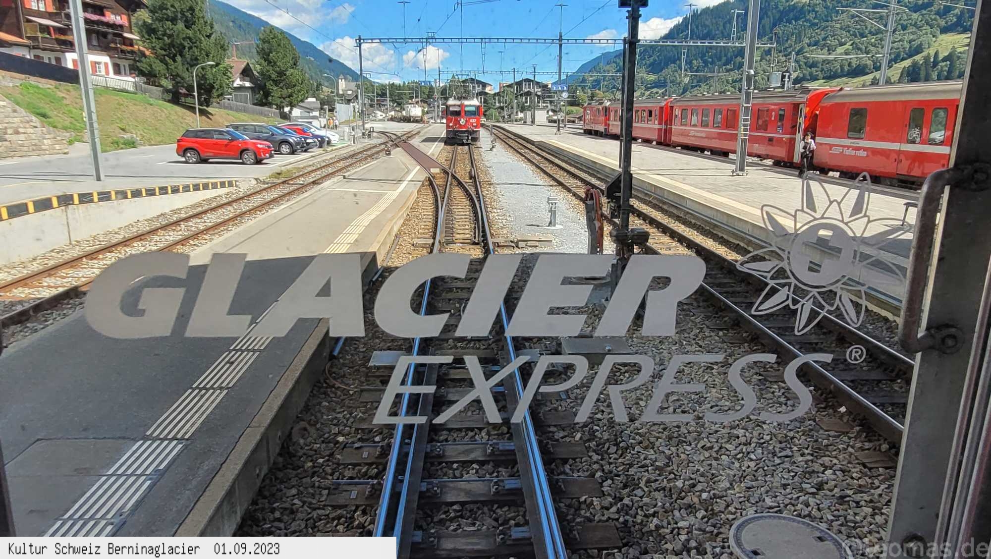 Jeweils ab St. Moritz die Zugfahrt mit dem Bernina Express über den Bernina Paß bis Tirano, sowie mit dem Glacier Express über Albula bis Chur
