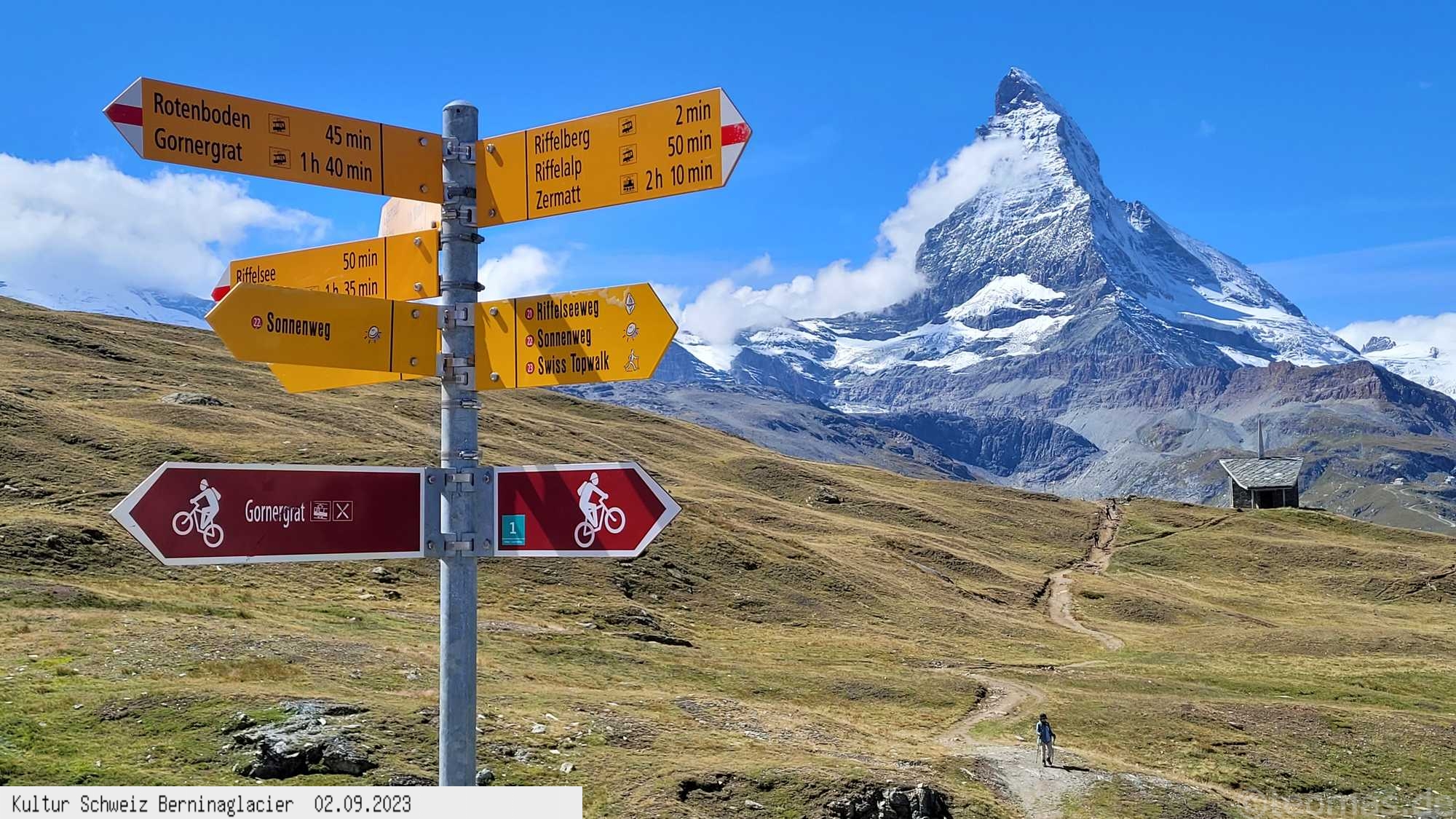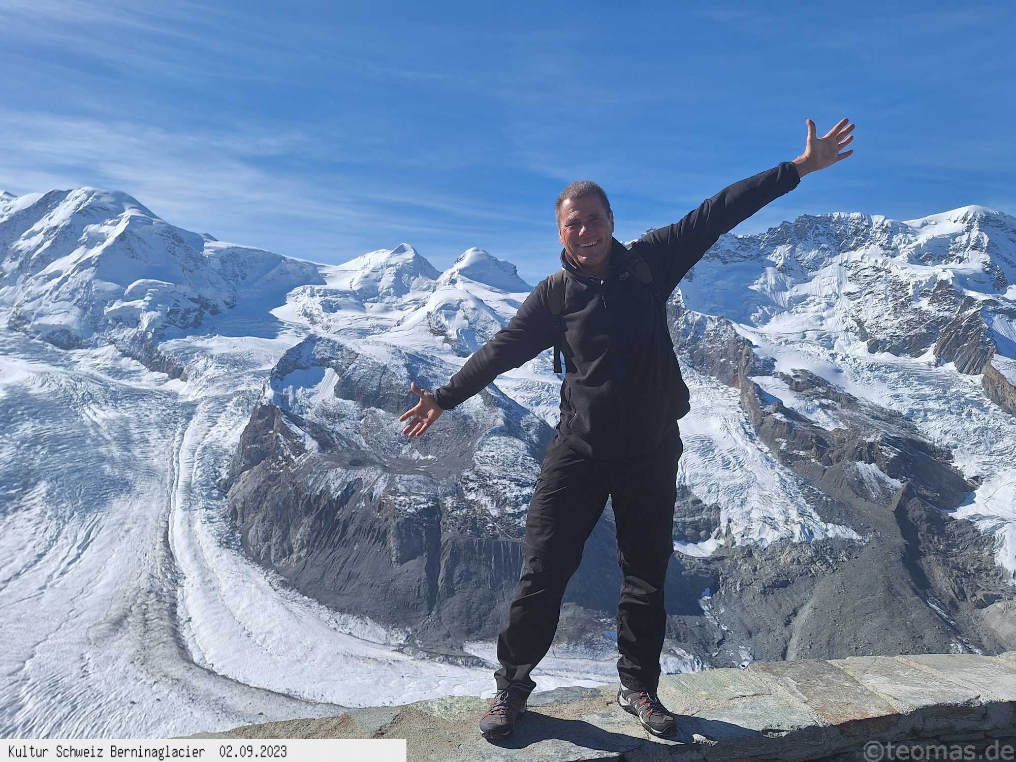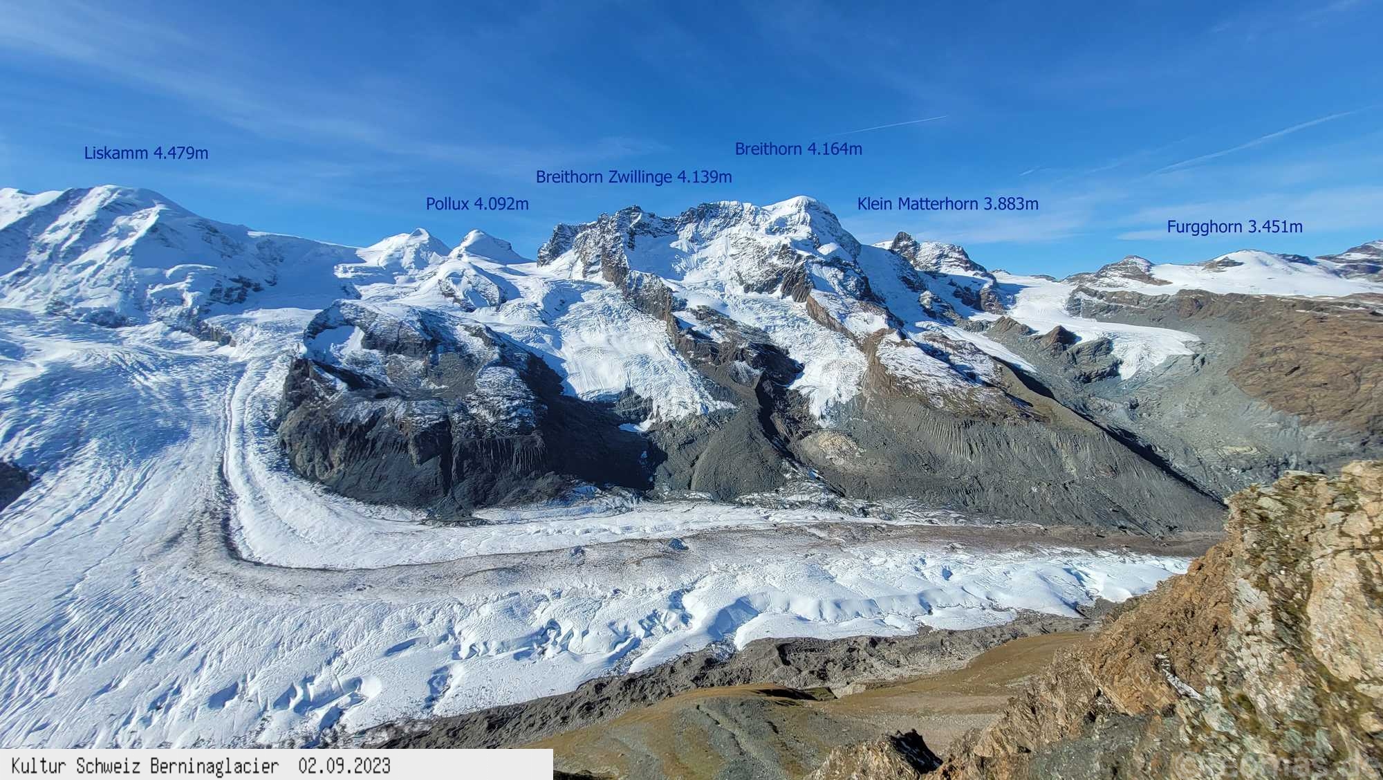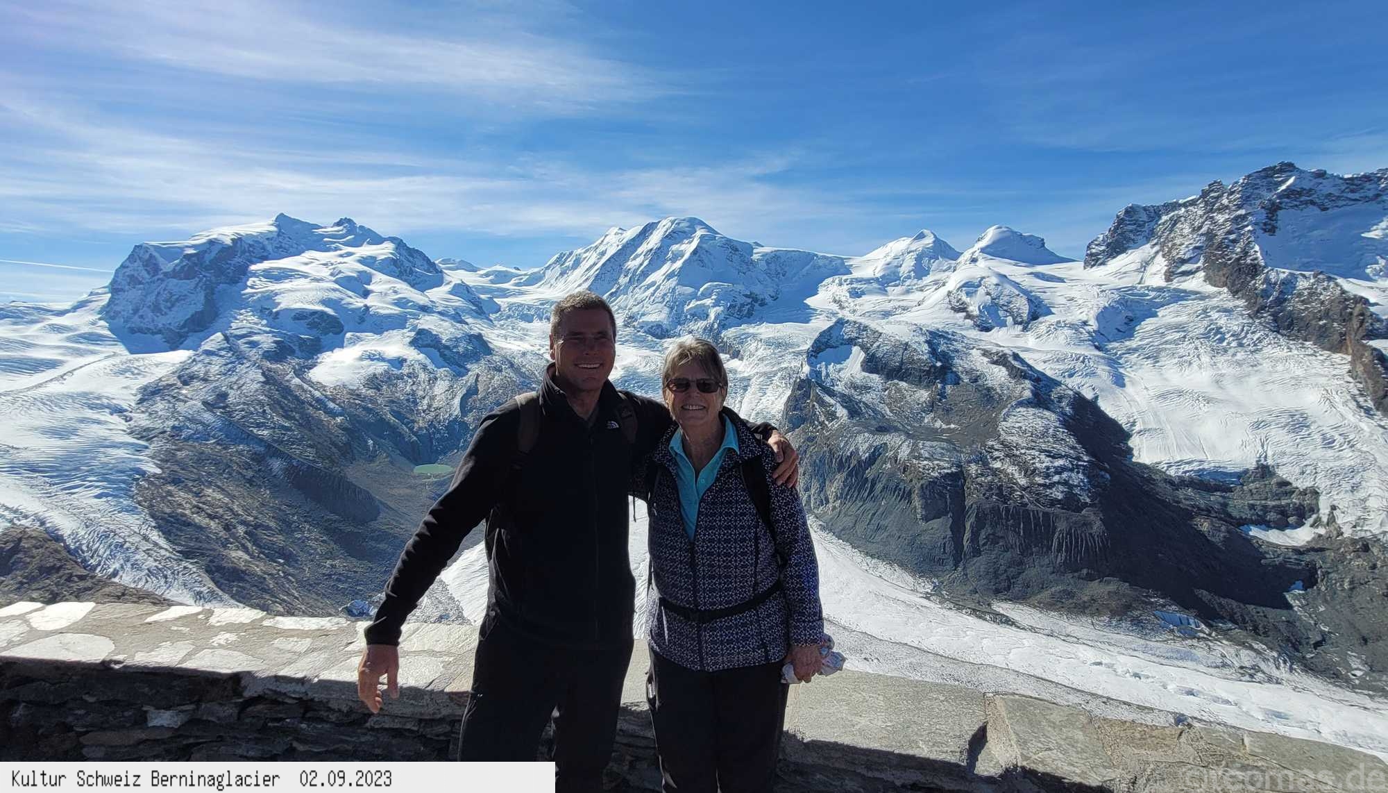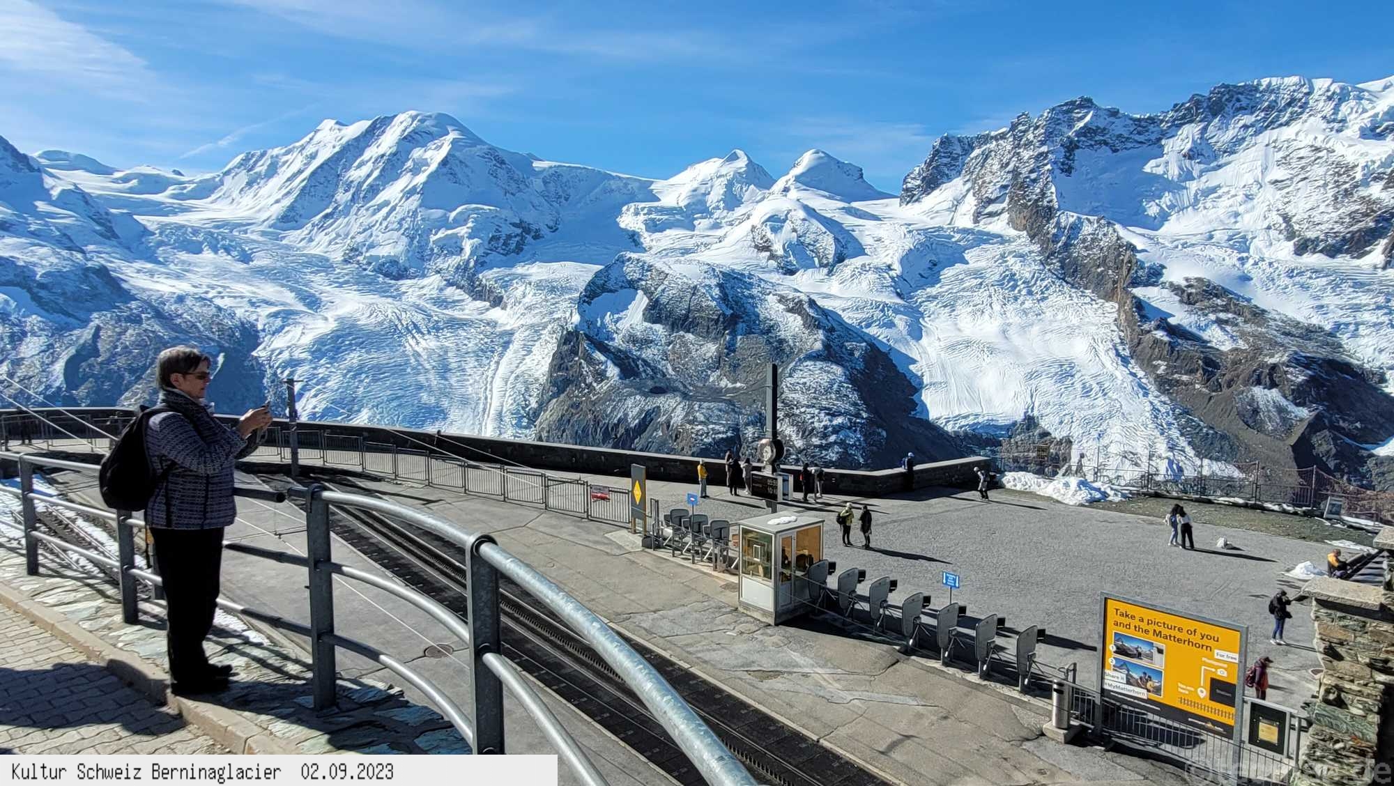 mit Wow Effekt und Staunen die Gletscher Wand der Viertausender vor uns. Am Gornergrat konnte man die schneefreien Wege gut begehen, so sind wir bei Top Wetter