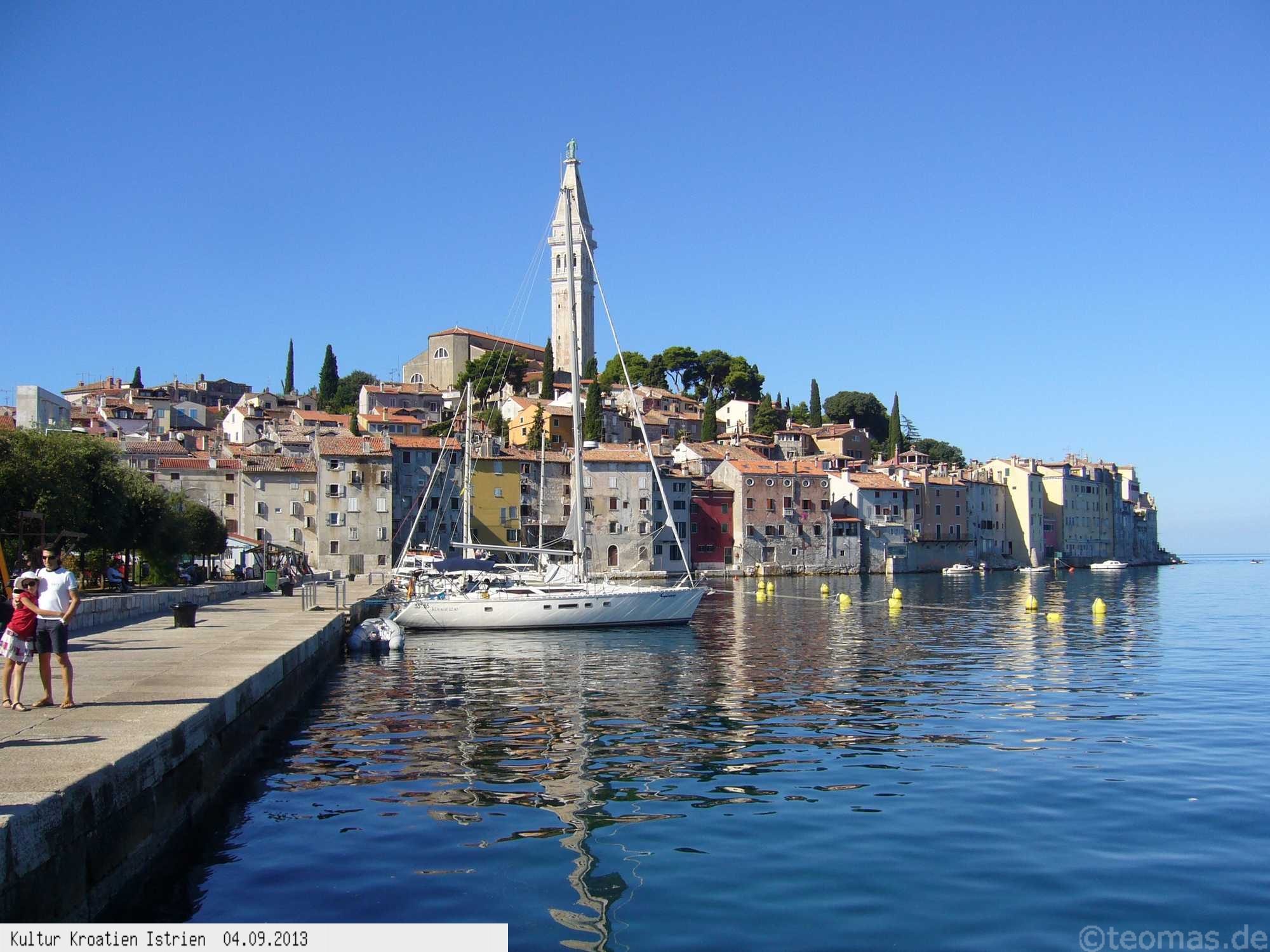 Am Beginn der Reise stand Rovinj und Porec im Westen Istriens. Schönes Städtchen mit romantischer Altstadt, in der Umgebung unzählige Badebuchten. Sehenswert ist die Tropfsteinhöhle Baredine etwas nordöstlich von Porec. Mitten in Pula steht ein römisches Amphitheater aus dem 5. Jahrhundert. Die im Süden Istriens gelegene Stadt Medulin ist das Touristenzentrum mit einer für Kroatien seltenen Sandbucht.
