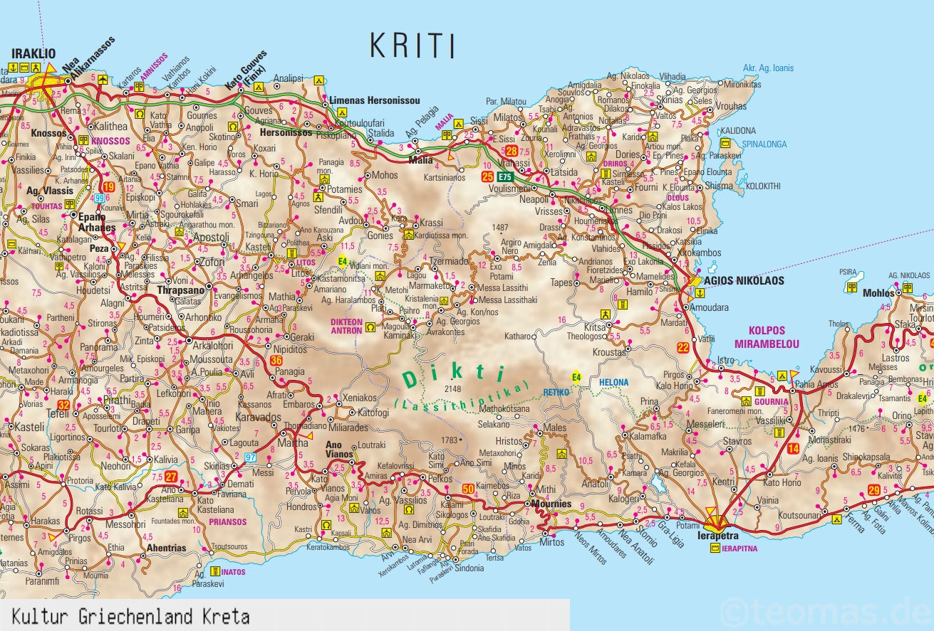 Die Stadt Ierapetra im Süden Kretas liegt schön am Meer und ein Bummel durch die Altstadt lohnt sich. Ebenfalls eine Besichtigung wert ist die Stadt Agios Nikolaos, die man mit dem Bus gut erreichen kann. Marktplatz mit kleinem See und Hafen, sehr malerisch.