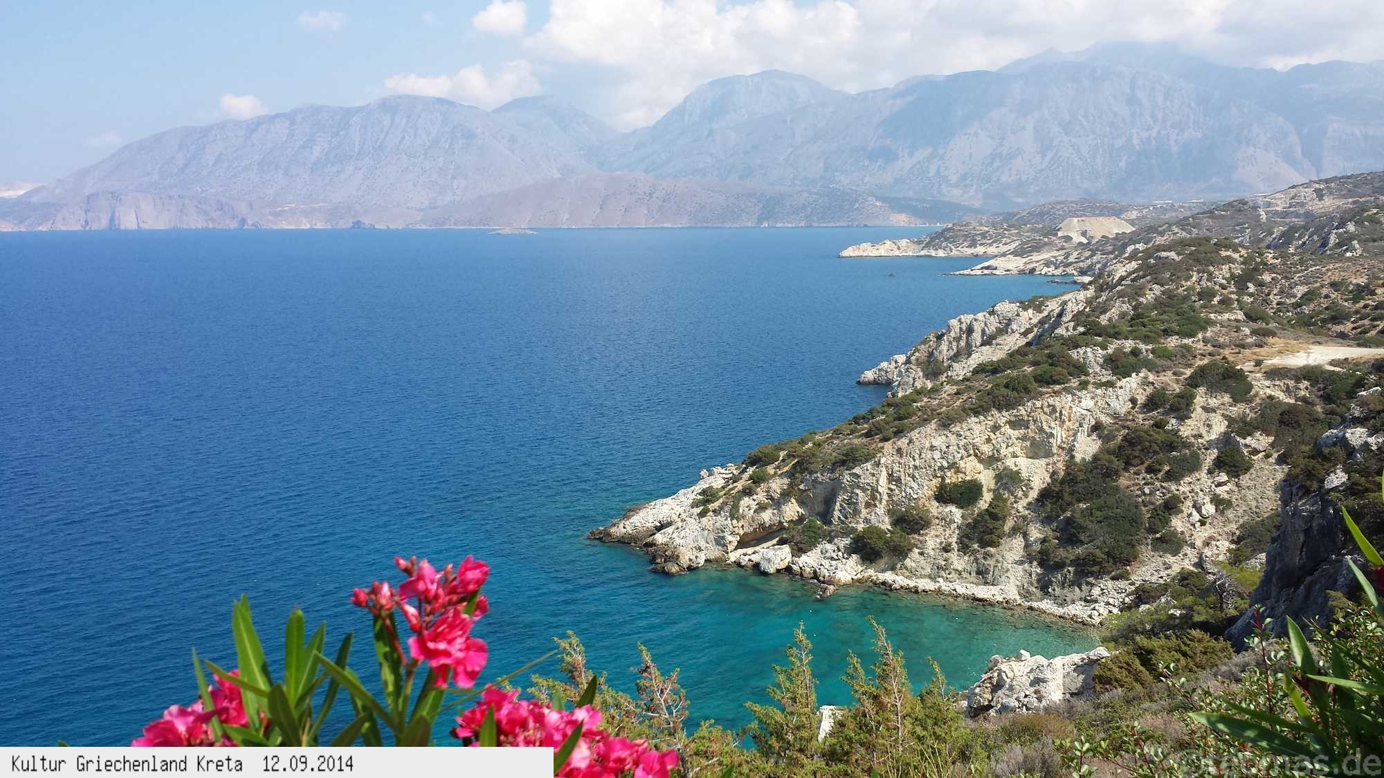 Abflug ab Nürnberg um 03:30 Uhr früh nach Heraklion, erst um 11:00 Uhr im Hotel Istron Bay nahe dem Ort Istro im Osten der Insel. Hotellage direkt am Strand etwas erhöht gelegen, mit schöner Aussicht auf die Bucht. Das Meer glasklar lädt direkt zum Baden ein.