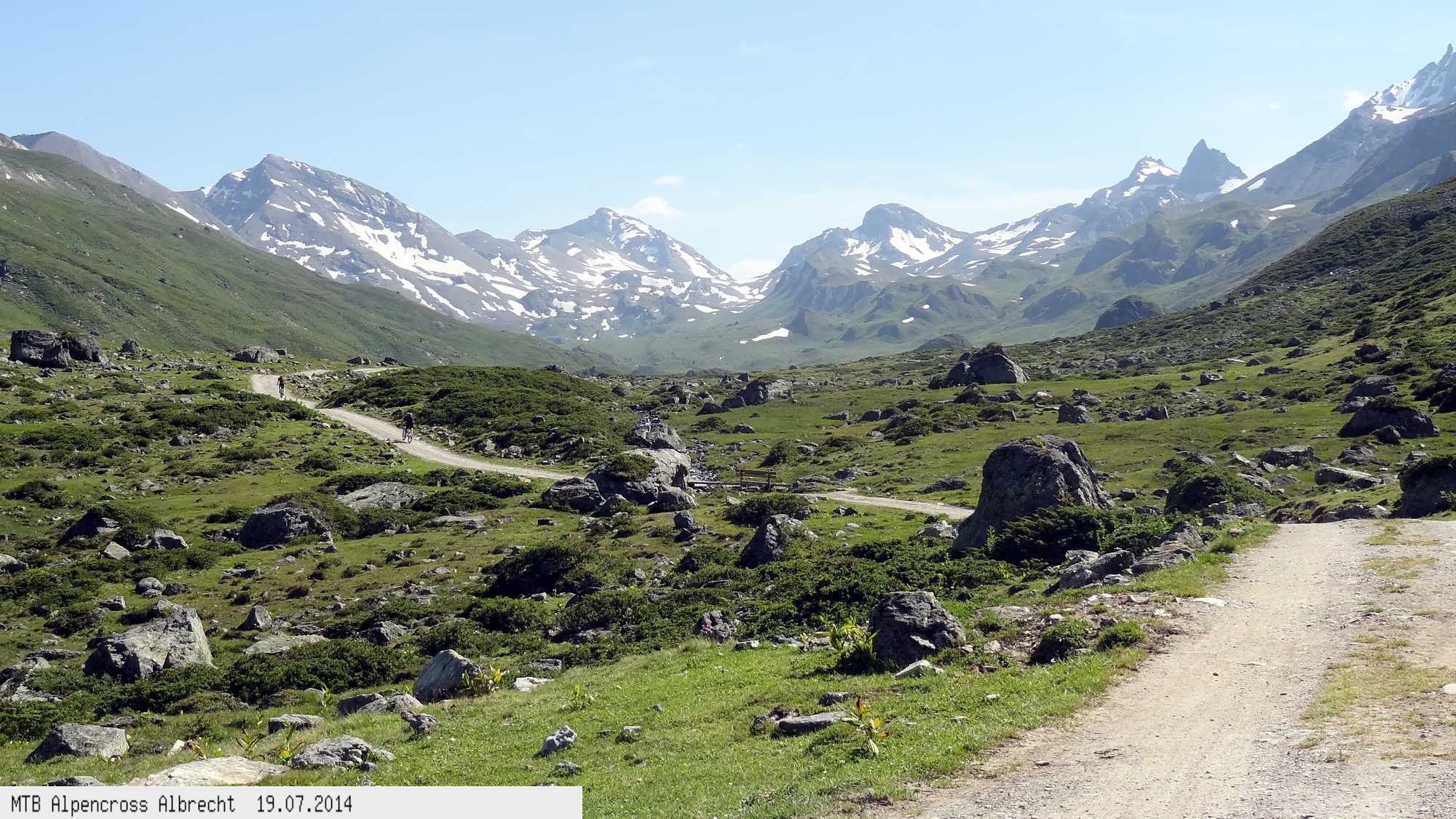 Klassische Albrecht Route mit Variante über den Eibsee. Highlights der Tour waren das Schönverwalltal zur Heilbronner Hütte mit der Abfahrt zum Zeinisjoch ebenso wie das Fimbertal mit dem steilen Anstieg zum Joch ab der Heidelberger Hütte und die Geröll-Abfahrt bis Vna mit dem phantastischen Bergpanorama. Kurzer Schreck am Joch, um 18 Uhr mit Schaltaugenabriss....die Zeit läuft davon. Der Schweizer Teil von Scuol zum Doss Rödand bis zum Fraele See bietet technischen Flow mit abwechslungsreichen Blicken in die Bergwelt. Für Mountainbiker mit technischem Anspruch hält die Abfahrt vom Montozzo Paß jeden Schwierigkeitsgrad parat. Drops, verblockte Steilpassagen, Kehren.....Traumhaft.