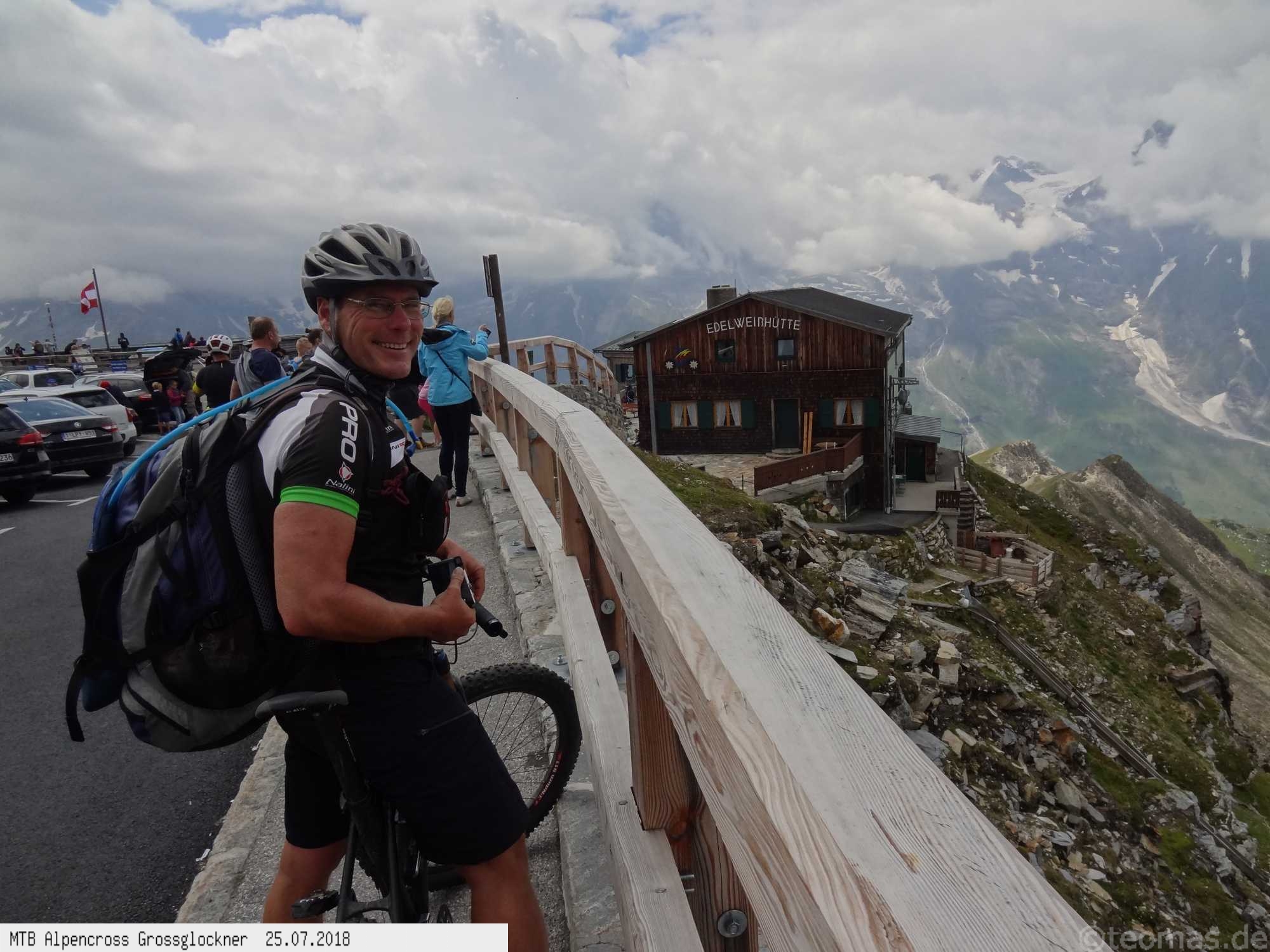 Am 6. Tag unsere ersehnte Belohnung bei halbwegs gutem Wetter am Glockner! Hinauf bis zum Besucherzentrum an der Pasterze auf der Kaiser Franz Josef Höhe, weiter bis zum Hochtor und Fuscher Törl bis hinauf zur Edelweißspitze. Hinunter bis Ferleiten, Mittagessen und nachmittags weiter bis Bruck, Taxenbach und Schwarzach an der Salzach entlang (Tauernradweg). Zwei Minuten nach Erreichen des Hotels Post in Schwarzach hat es wie aus Eimern gegossen, Gewitter. Mit dem Abendessen offenbar den Magen verdorben und eine unschöne Nacht erlebt. Am letzten Tag ohne Kraft und leerem Magen von Schwarzach über Werfen, Hallein bis nach Salzburg. Mit einigen wetterbedingten Umplanungen, aber ohne Panne und Stürze eine gelungene Alpenüberquerung!
