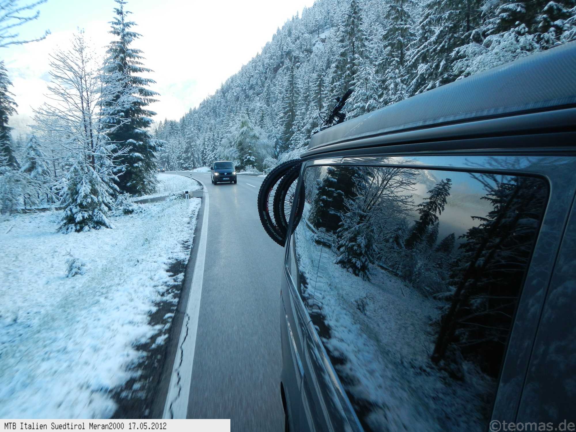 dann Straße hinunter zum Auto an der Seilbahn Meran 2000.