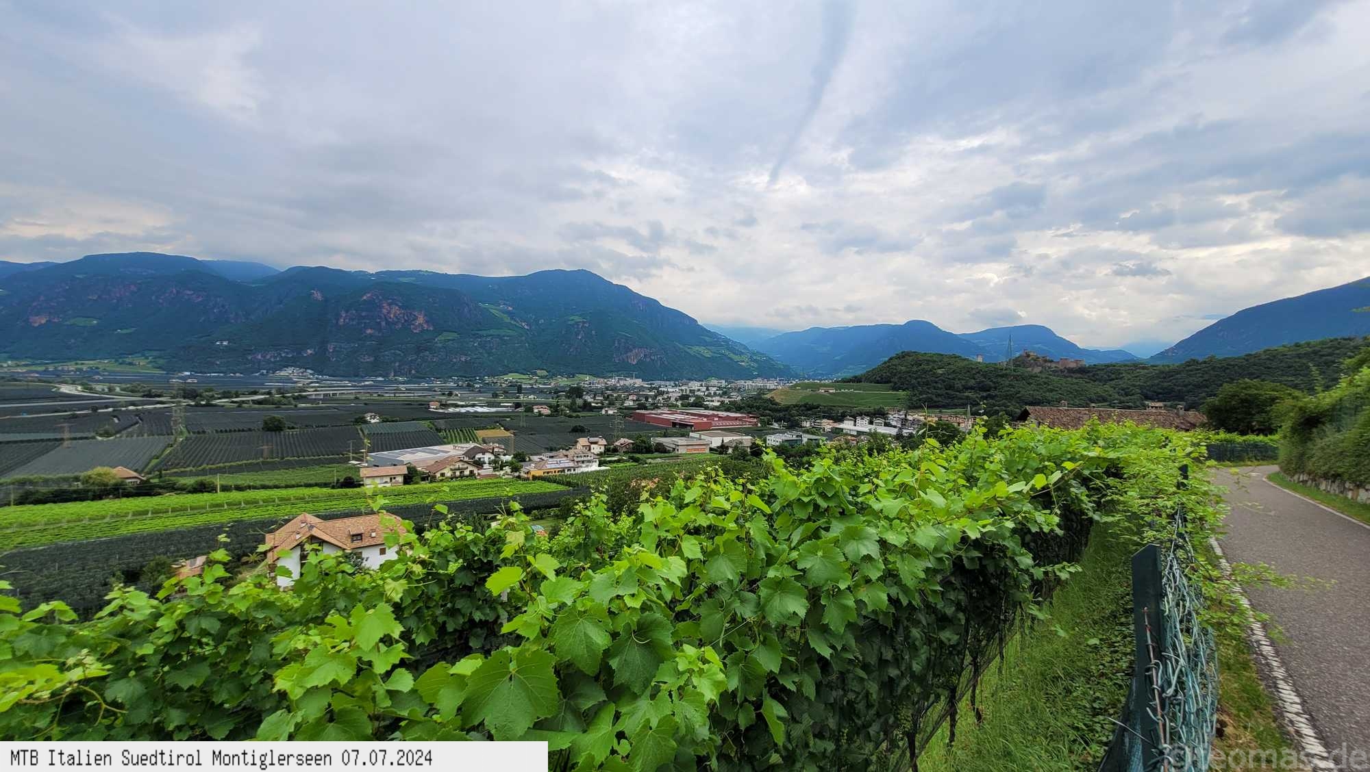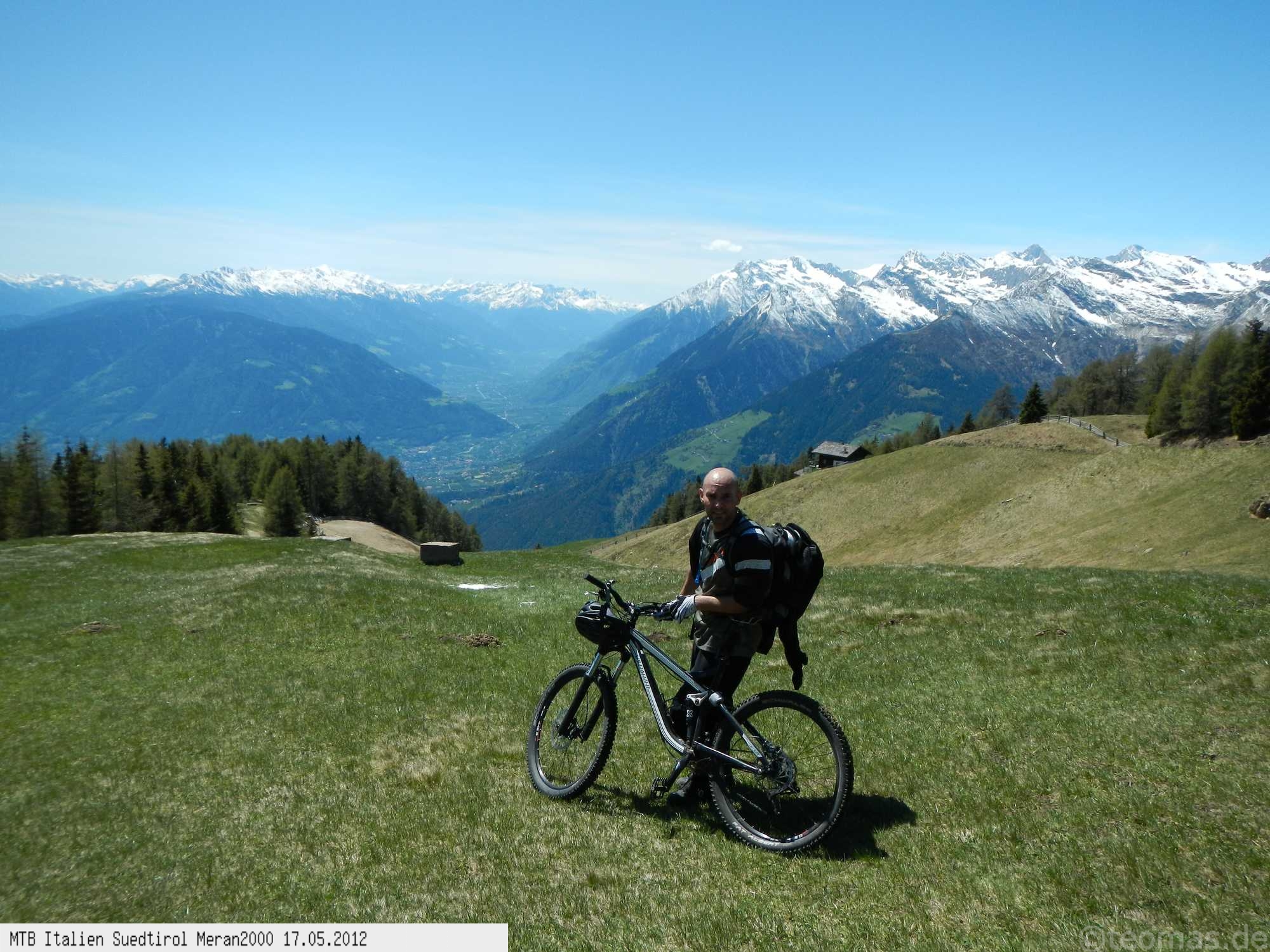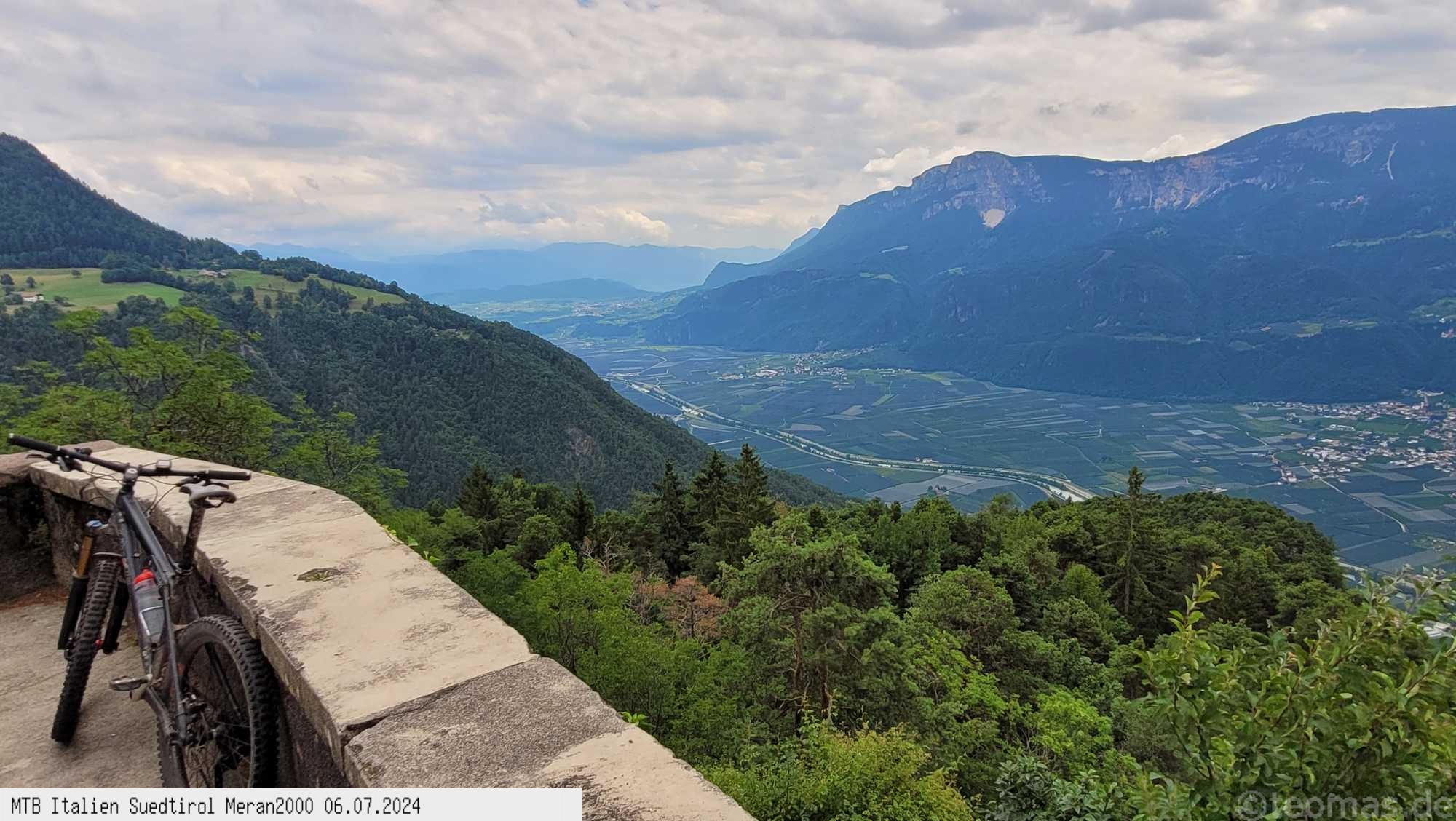 Von Andrian im Etschtal kurbelt man bis Meran und nach Naif zur Seilbahn Meran 2000 auf steiler 14%iger Teerstraße ab Meran.
