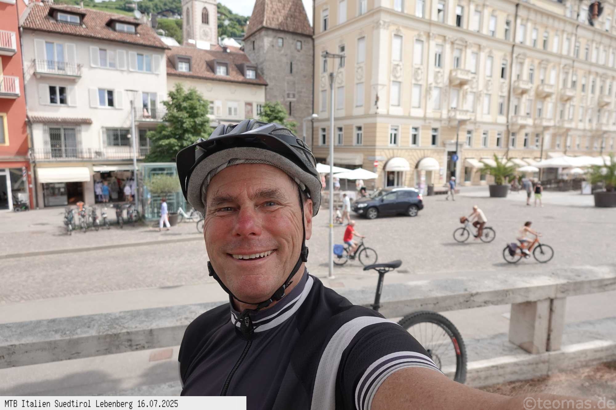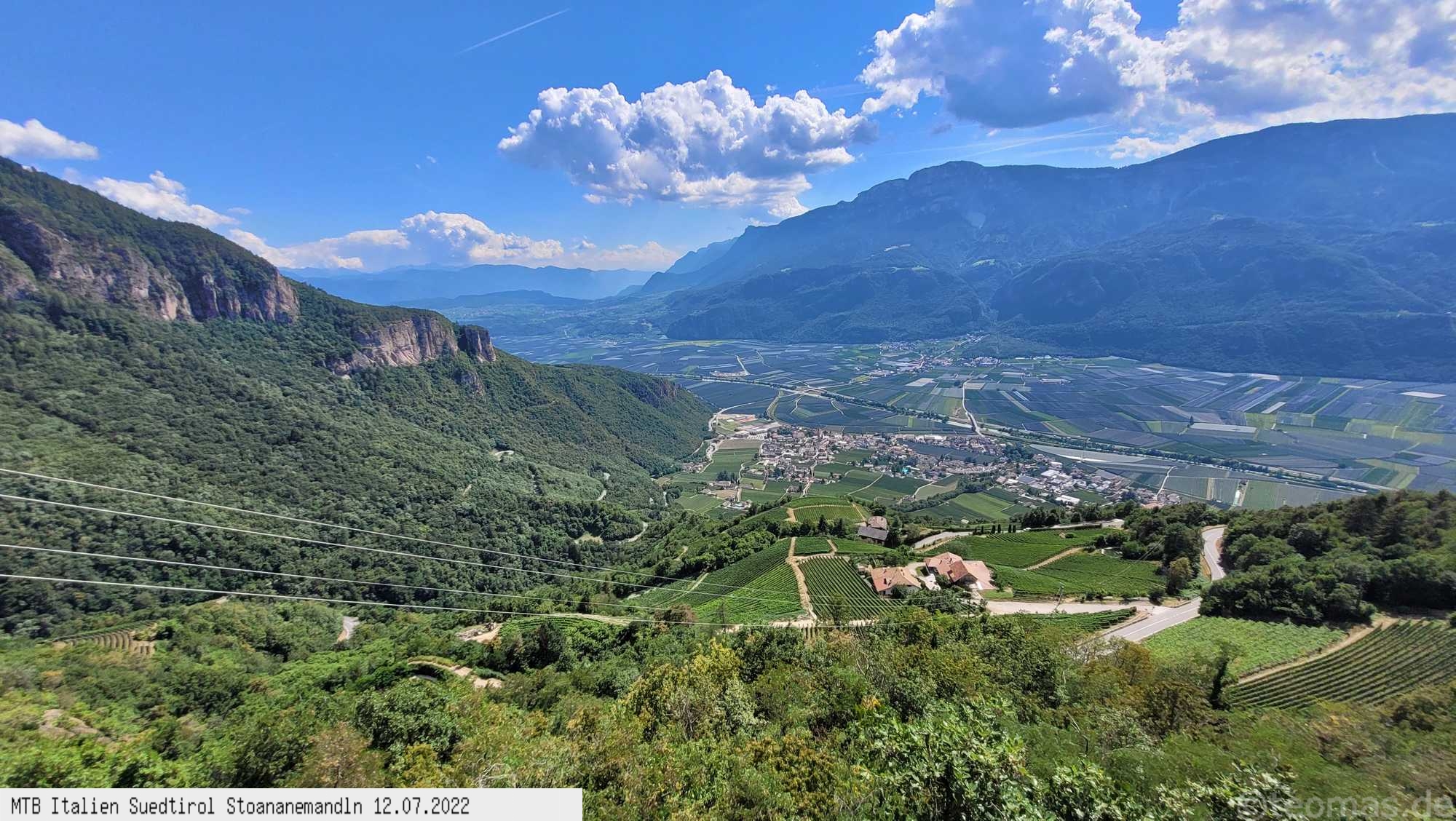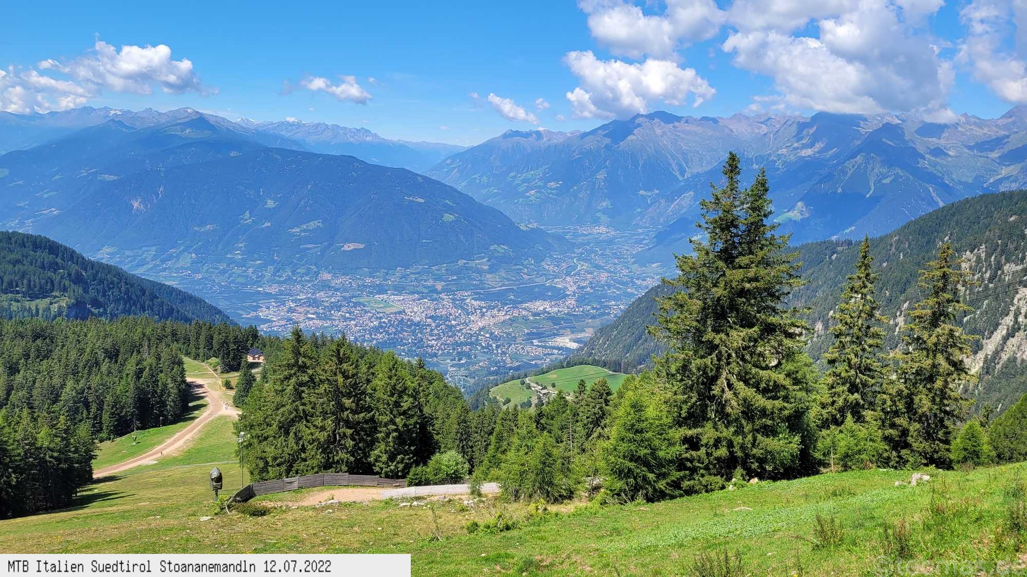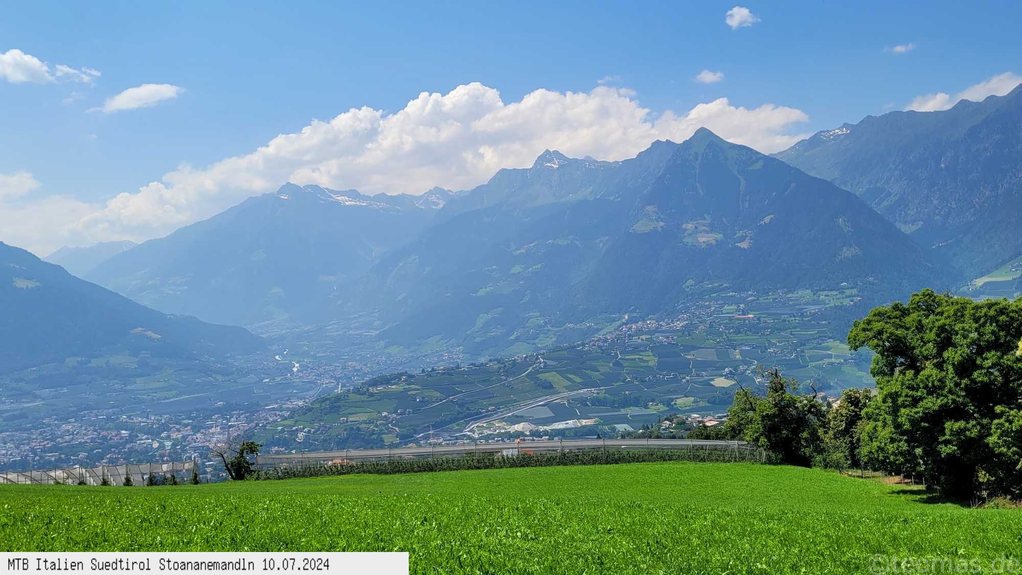 Von Andrian im Etschtal kurbelt man bis Meran und nach Naif zur Seilbahn Meran 2000 auf steiler 14%iger Teerstraße ab Meran.