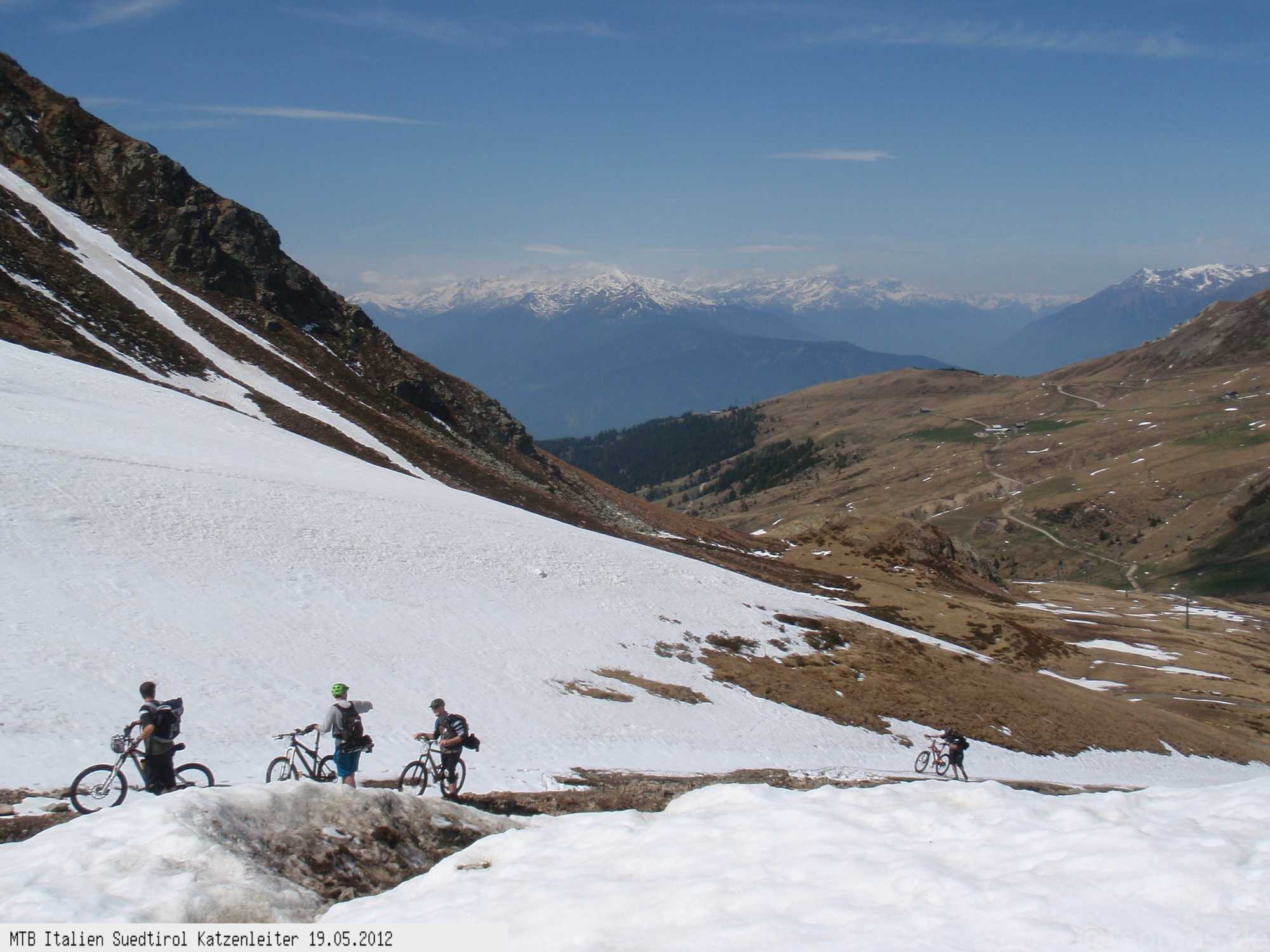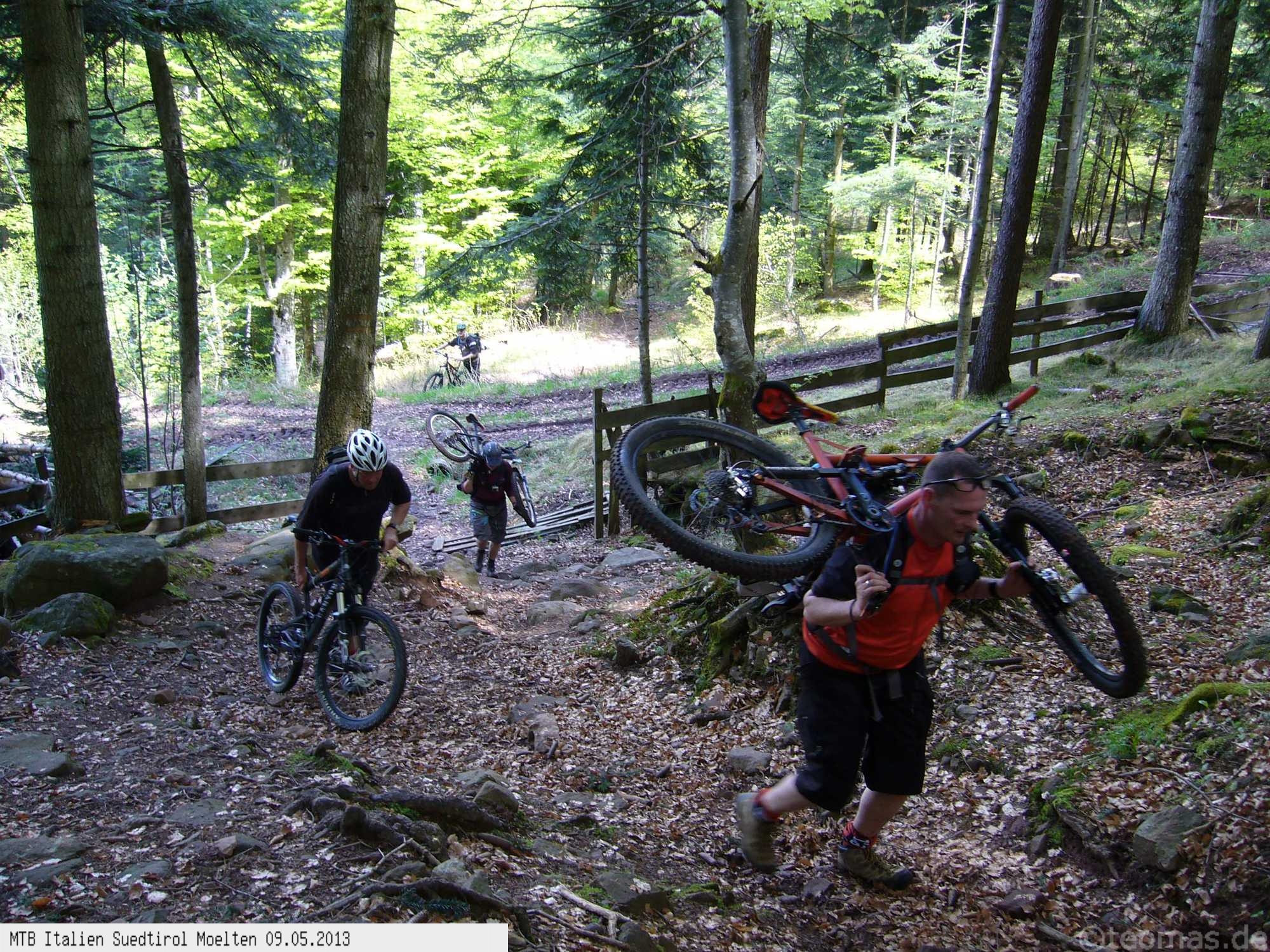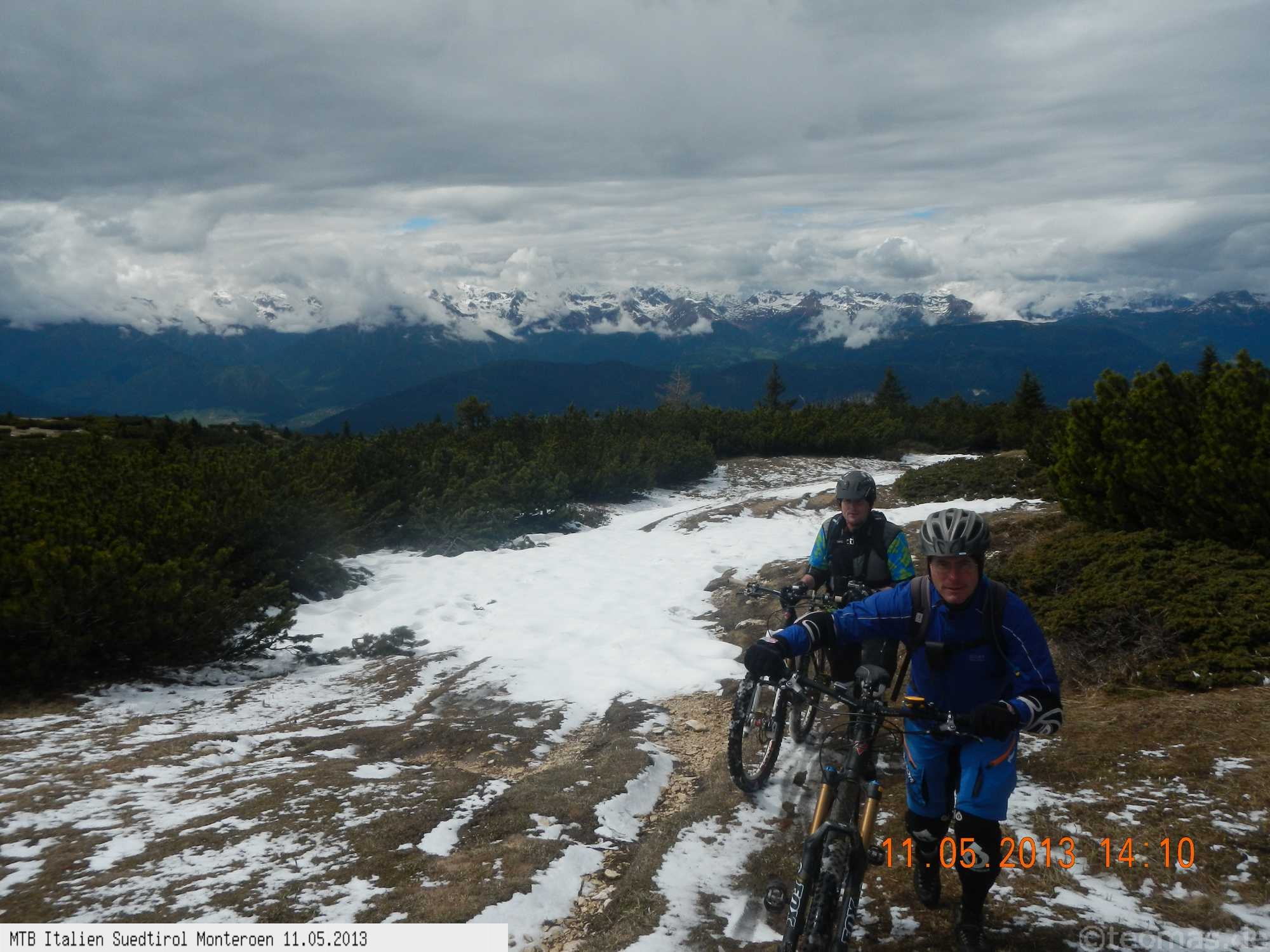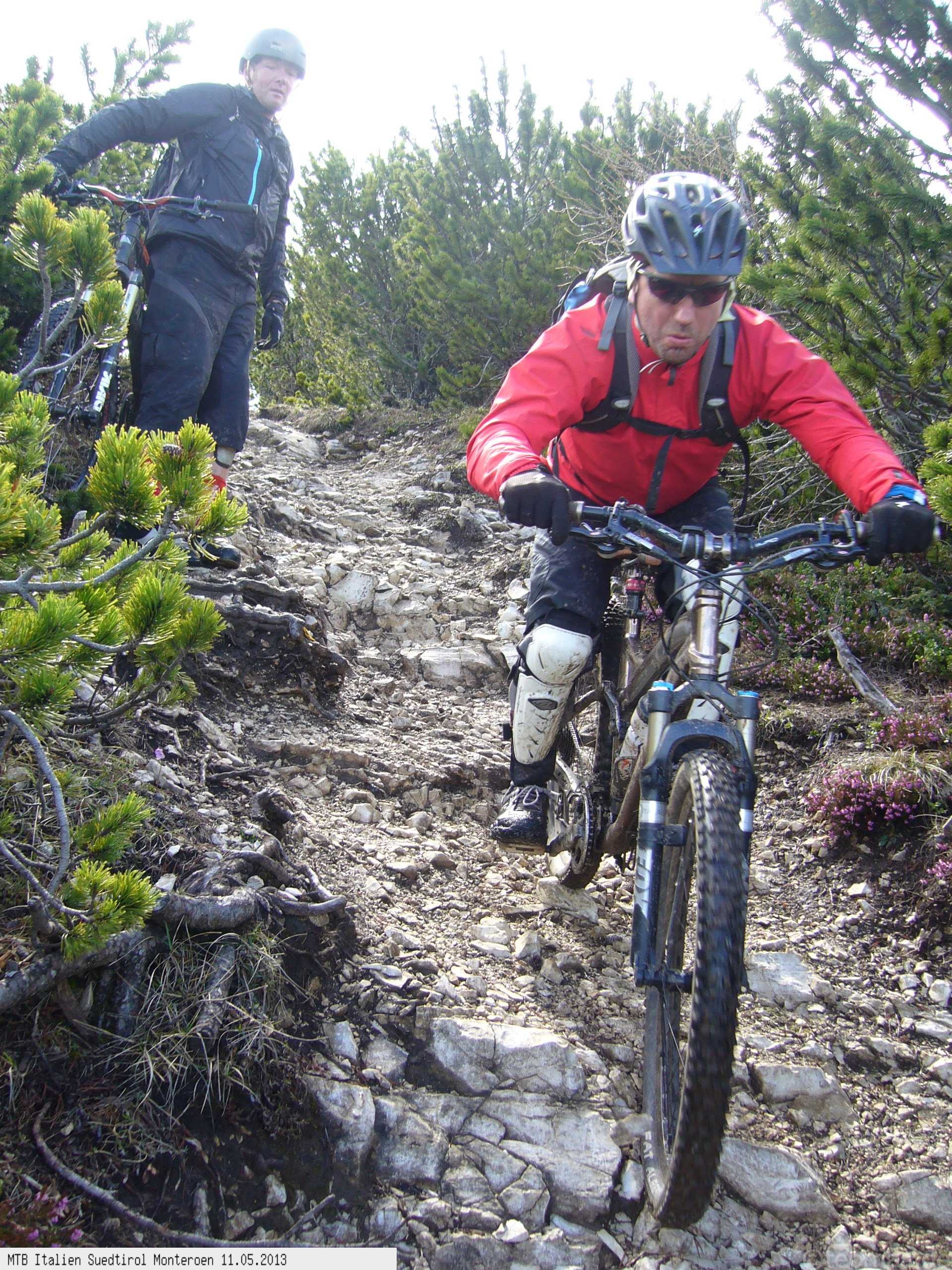 die Anfahrt hoch zum Monte Roen in die Länge. Oben wird man belohnt mit einem tollen Downhill auf technischem Gelände, einige Varianten sind möglich.