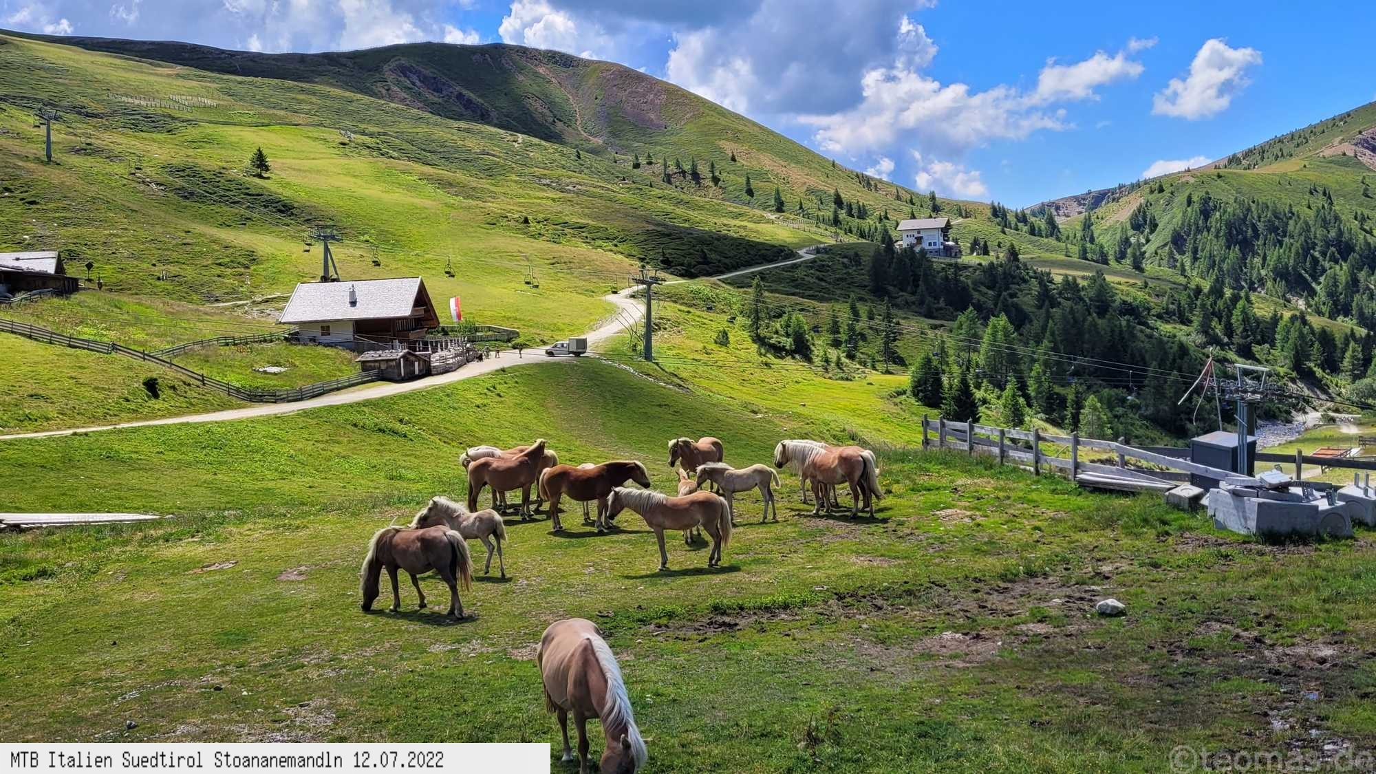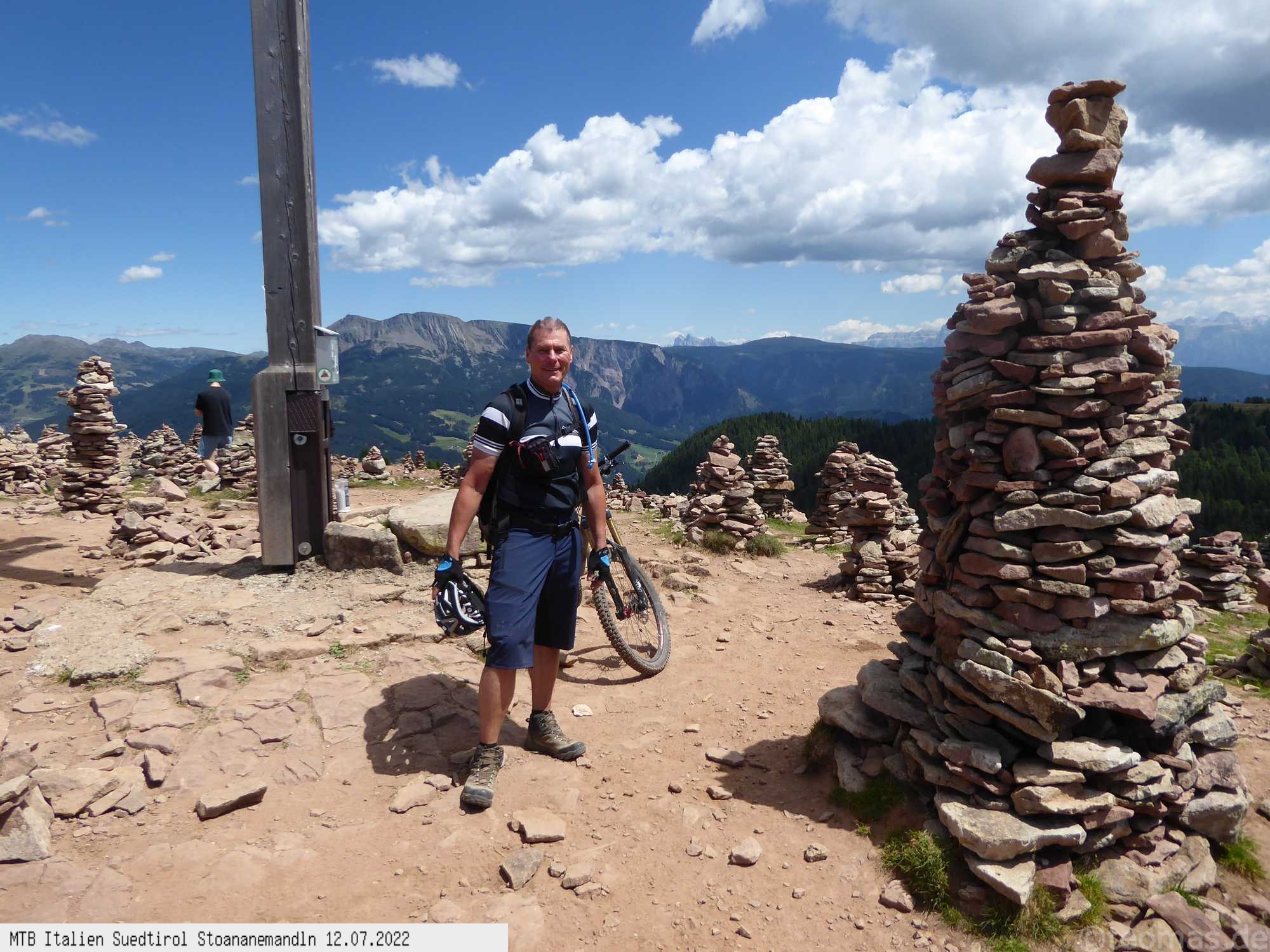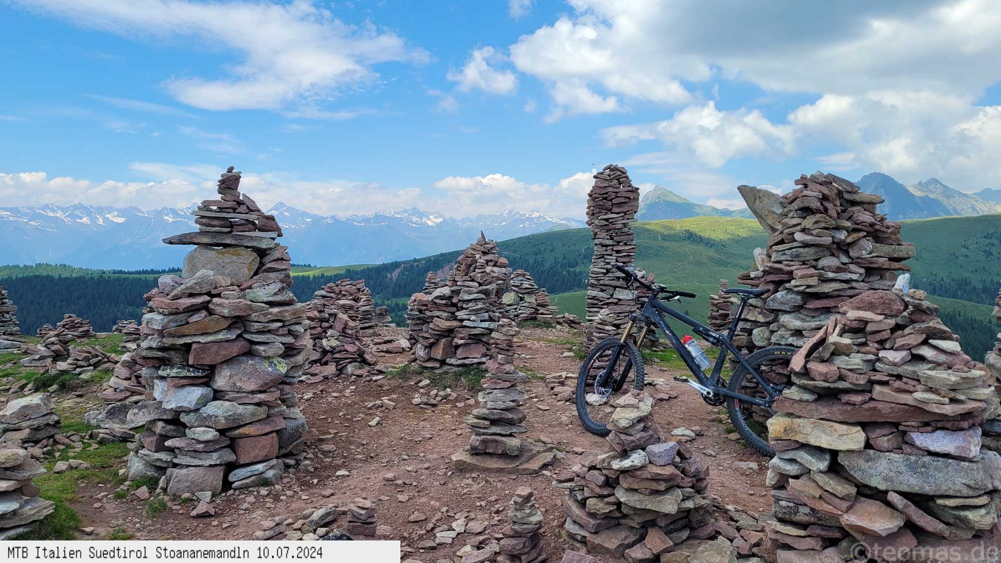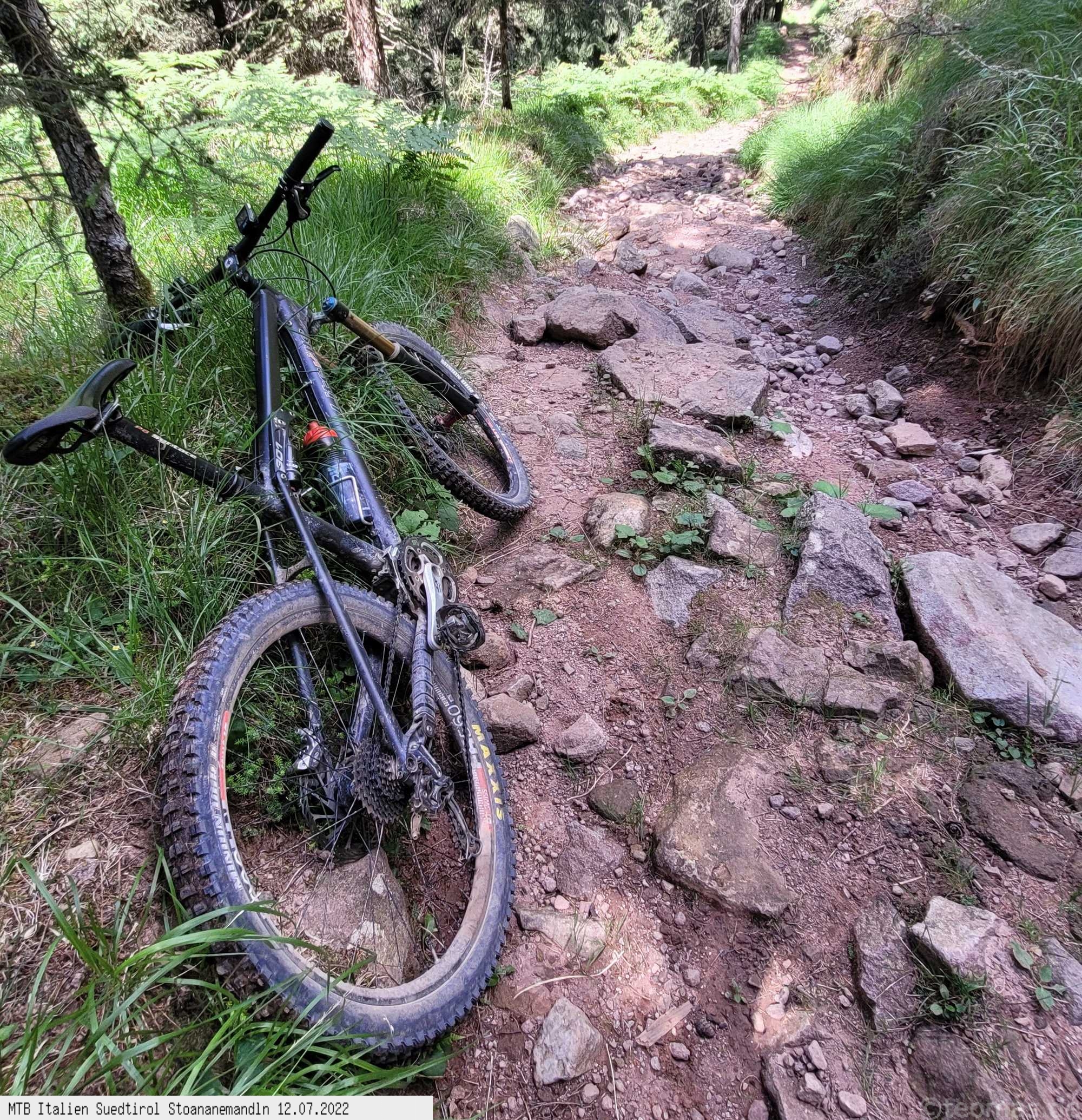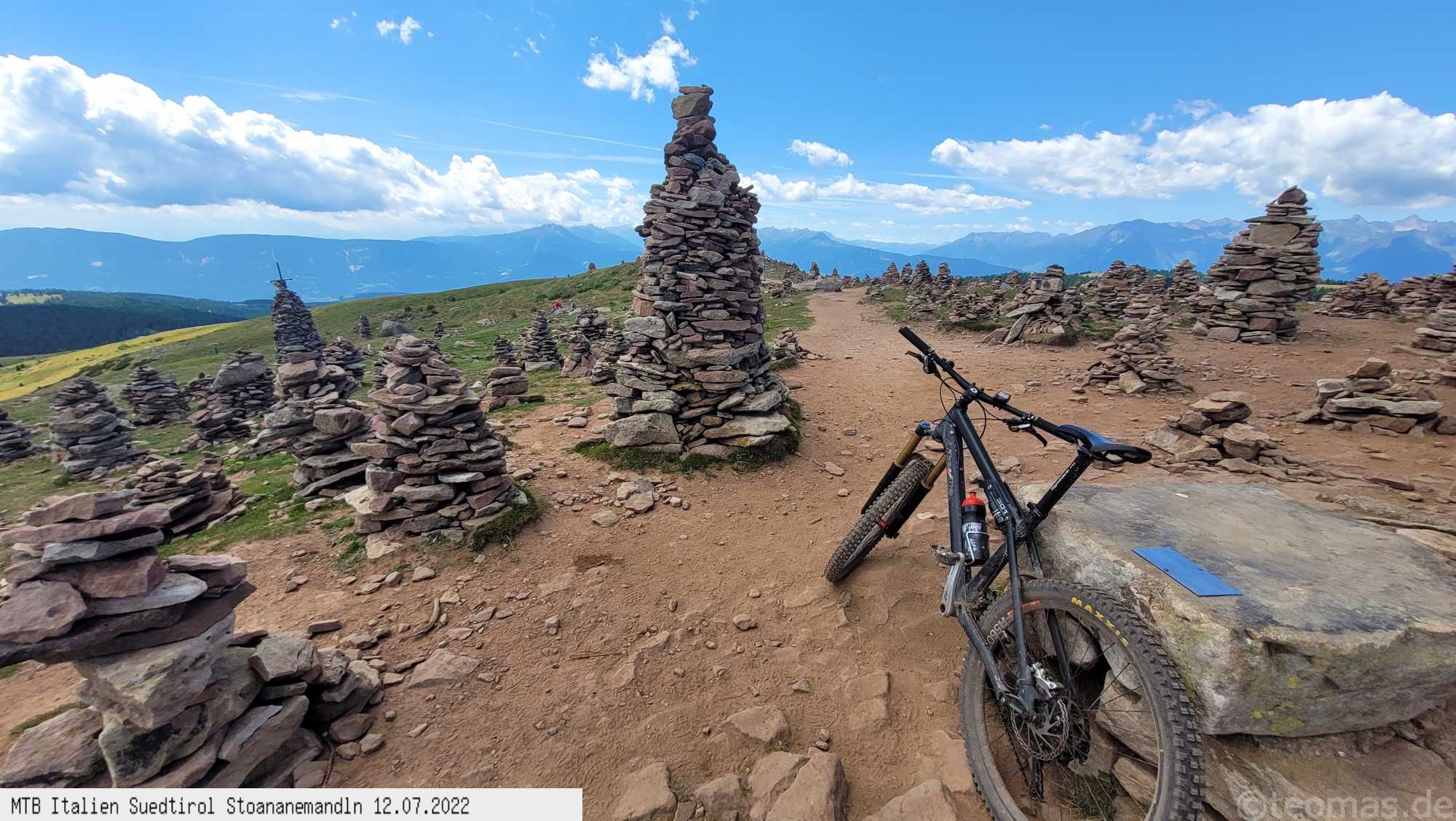 Haflinger Höhenwegs. Hier wieder hoch Treten-/Schieben bis zu den Stoananen Mandln, ein wahrlich mystischer Ort! Der folgende Trail hinunter bis zum