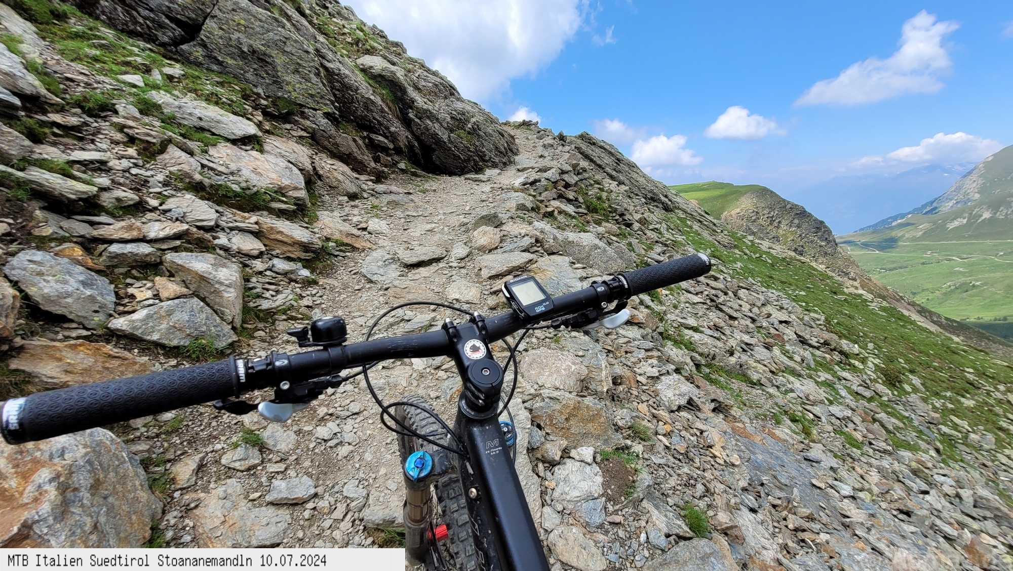 Direkt vom Mendelpass startet ein verblockter Trail mit einigen schönen Aussichtspunkten. Entweder hochkurbeln oder