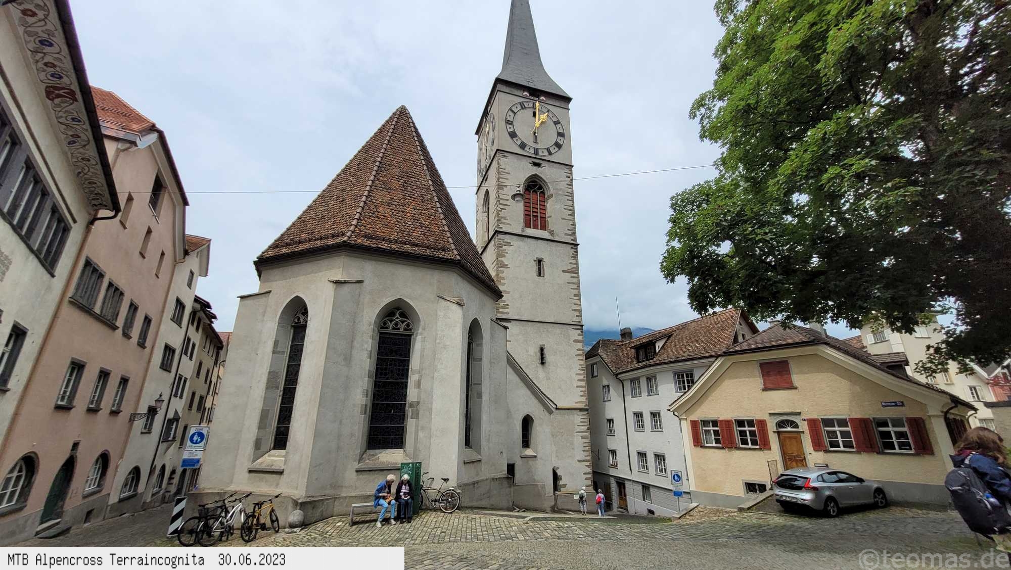 Tourstart der Alpencross am Bahnhof Sargans bei trockenem, aber bewölkten und kühlen Wetter. Einrollen bis Bad Ragaz, danach steil hoch auf
