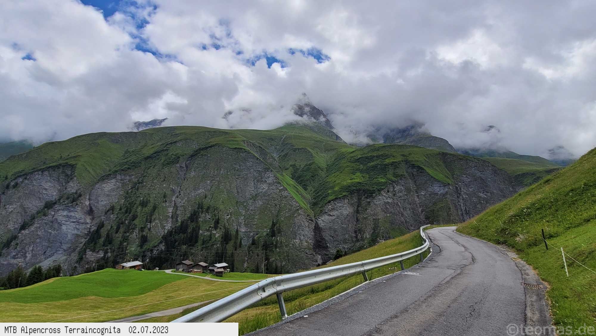 Ab Thalkirch 2 Stunden 700 Hm Schieben zum Tomül Pass. Nach kurzer Rast phantastische Trail Abfahrt, technisch genau das Richtige. Hinunter nach Vals, einem