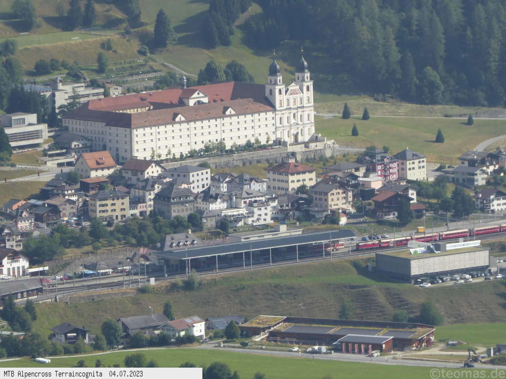 Übernachtung in Disentis im Hotel AlpSu, echt top. Rundgang durch Disentis, prunkvolles Benediktiner Kloster mit Münster, am Bahnhof der Glacier Express.
