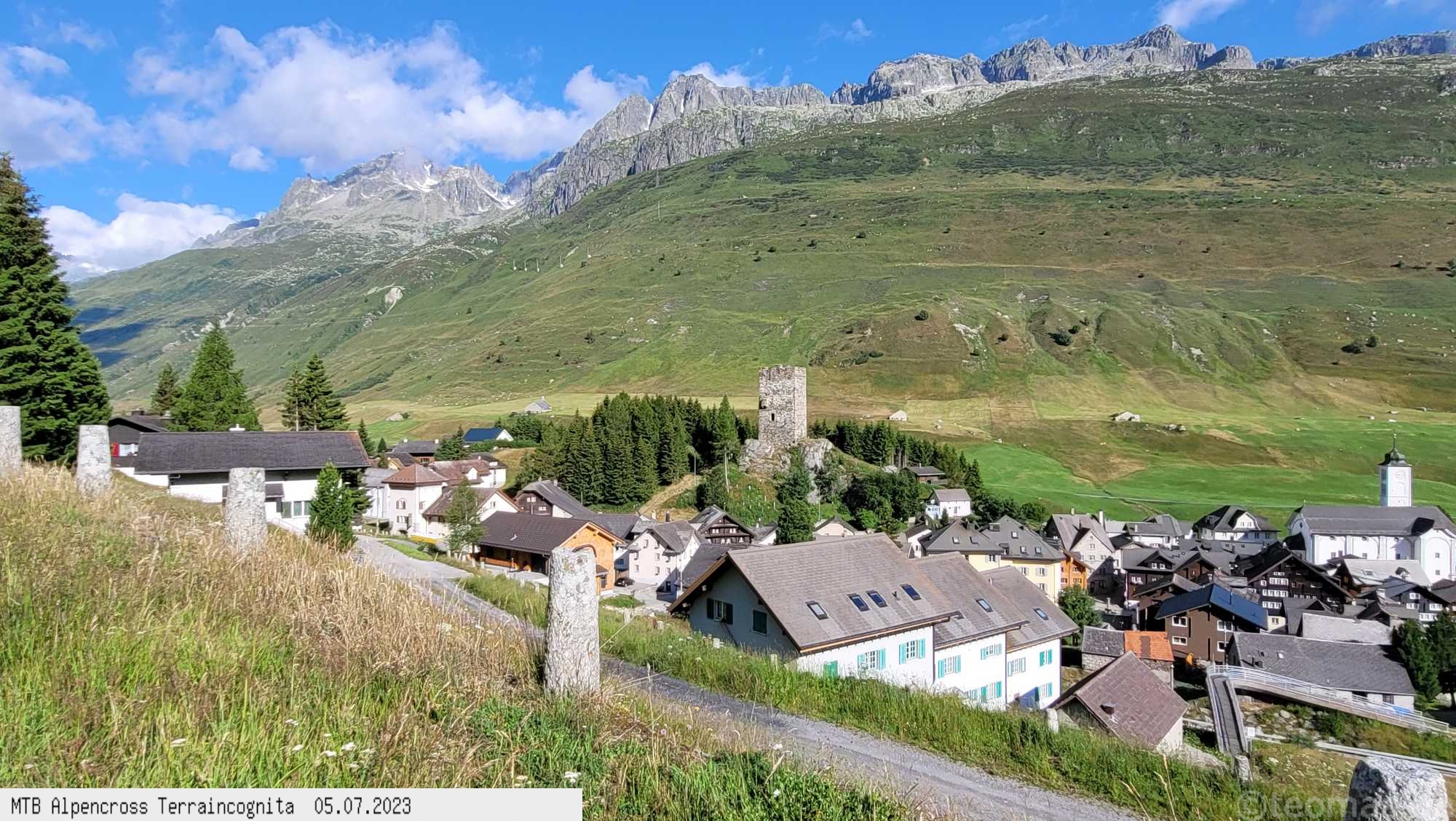 Hinunter nach Andermatt auf krassem Trail, verblockt, steil, technisches Highlight. Übernachtung in Andermatt im Gasthaus zum Sternen direkt im Ort mit Biergarten.