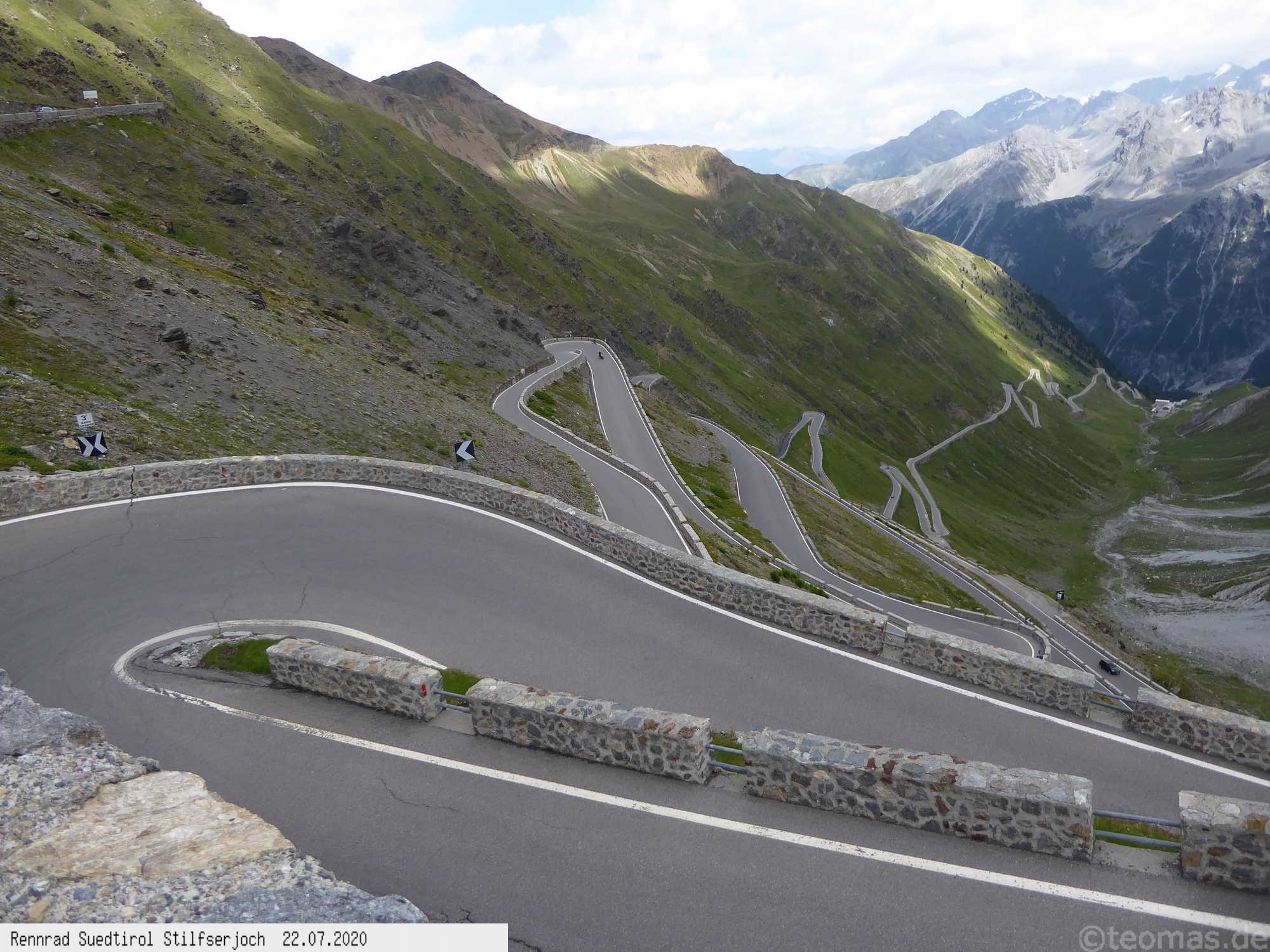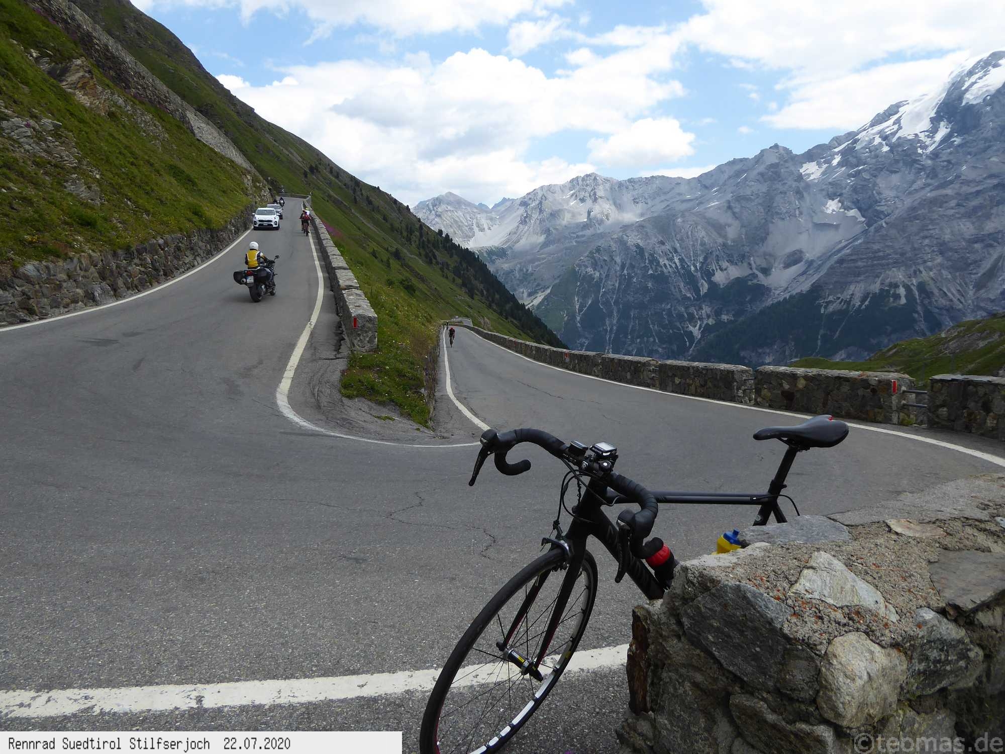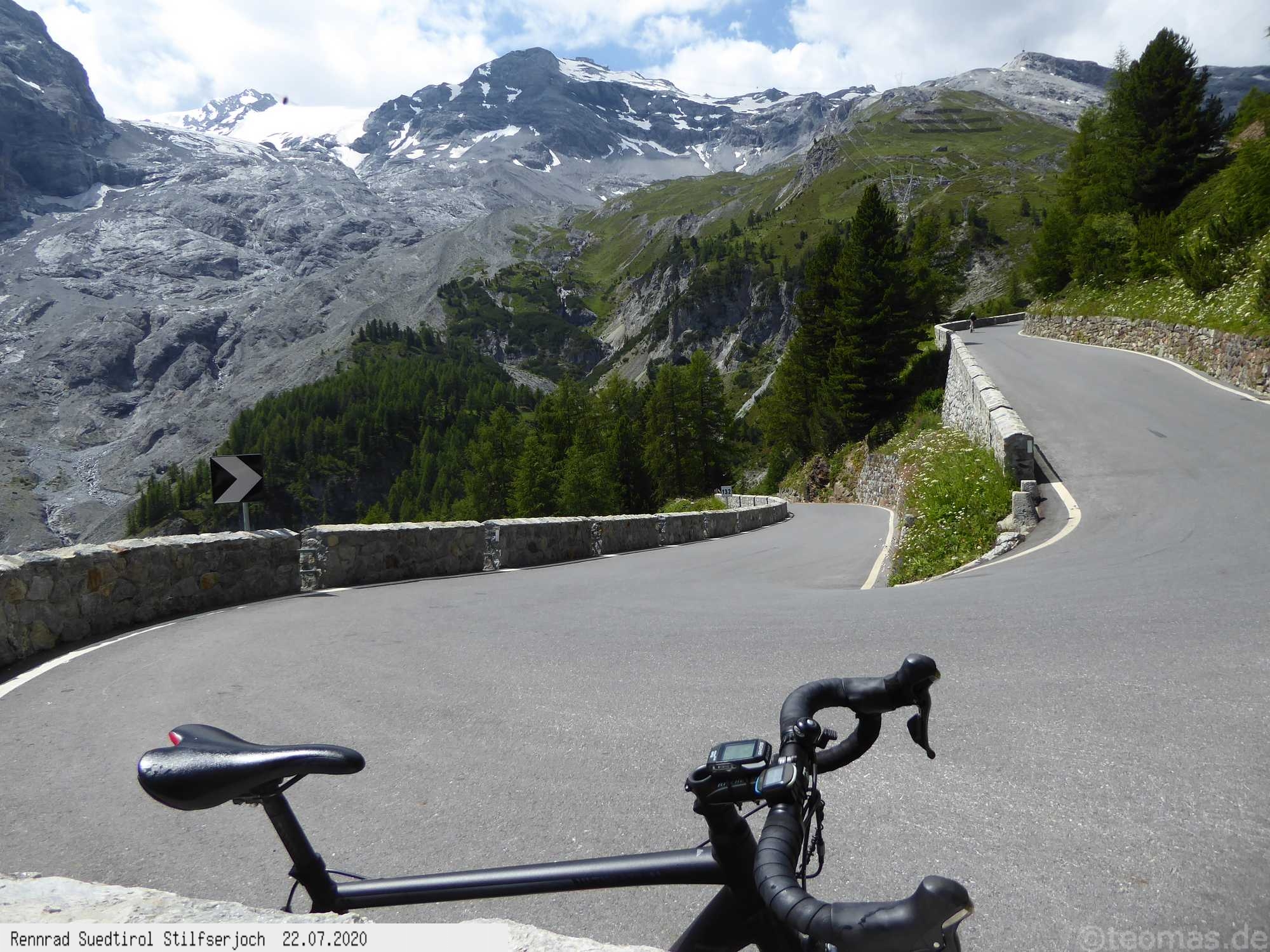 Als Startorte eignen sich Castelbell im Etschtal, Prad oder Trafoi. Bisher war ich von 2019 bis 2024 fünfmal gestartet, davon viermal im Frühjahr, wo die Paßstraße noch durch eine Wintersperre ab dem weißen Knott oder etwas unterhalb an einer Schranke geschlossen war. Der Paß-Übergang also nicht möglich. Man mogelt sich an der Sperre vorbei und genießt Autofrei die Serpentinenstraße Richtung Stilfser Joch, bis es wegen der Schneelage nicht mehr weiter geht. Je nach Winter kommt man so unterschiedlich weit hoch, die Winterlandschaft bei Sonnenschein ein Traum! Im Sommer fährt man die Paßstraße bis zum Joch, muß dafür den Autoverkehr ausblenden, im Corona Sommer Mitte Juli 2020 war zum Glück nicht so viel los. Die 1.800 Höhenmeter schafft man in 3 Stunden Fahrtzeit. Warme Klamotten empfehlen sich zu jeder Jahreszeit, vor allem für die lange Abfahrt, die in unter einer Stunde gerockt ist! Auch als Rennrad Alpencross in den Jahren 2009, 2019 und 2021 kletterte ich bereits auf das Stilfser Joch, die Faszination bleibt immer bestehen!