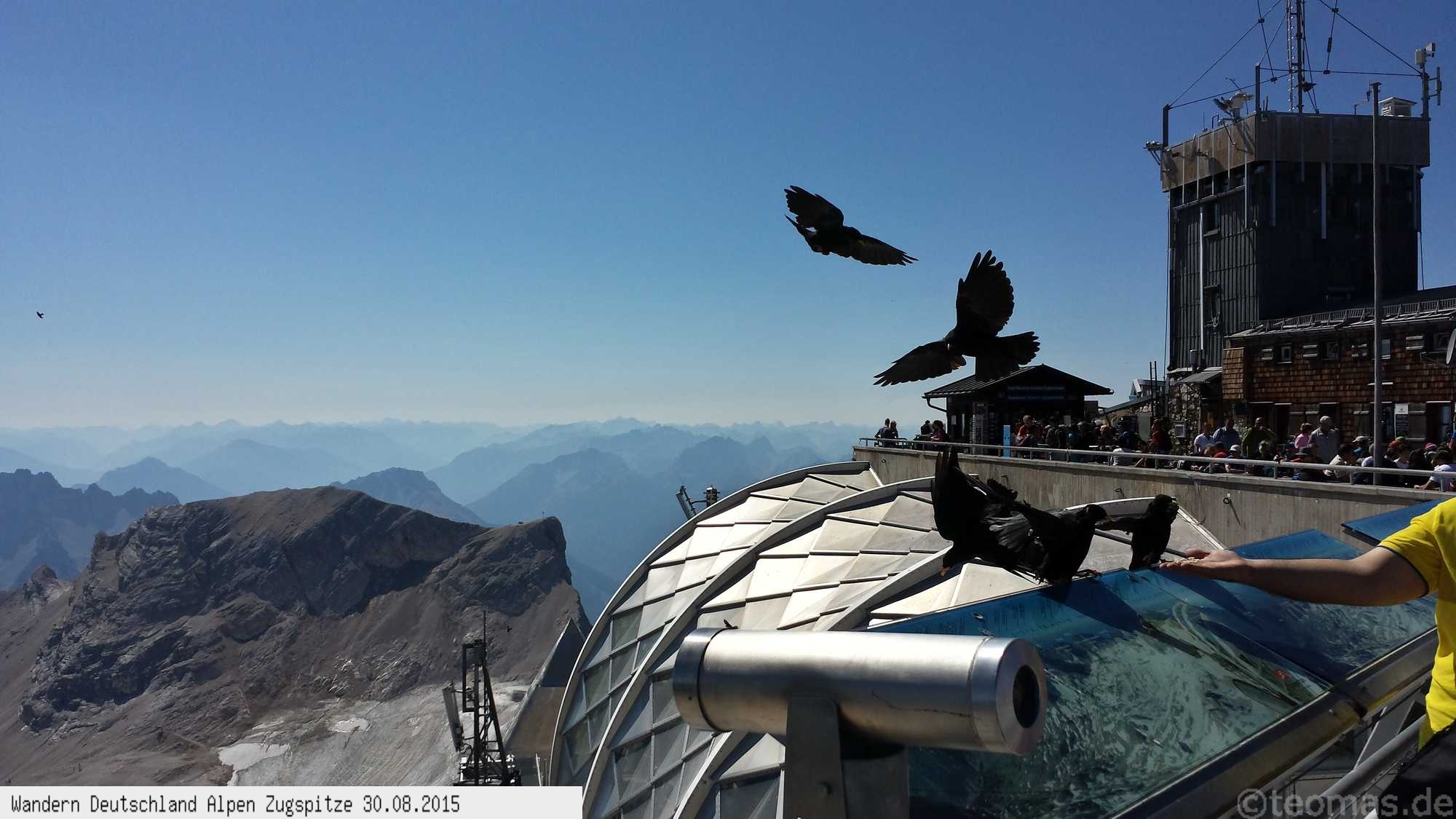 Phantastische Rundumsicht auf der Zugspitze im höchsten Biergarten Deutschlands, allerding ist der Kulturschock