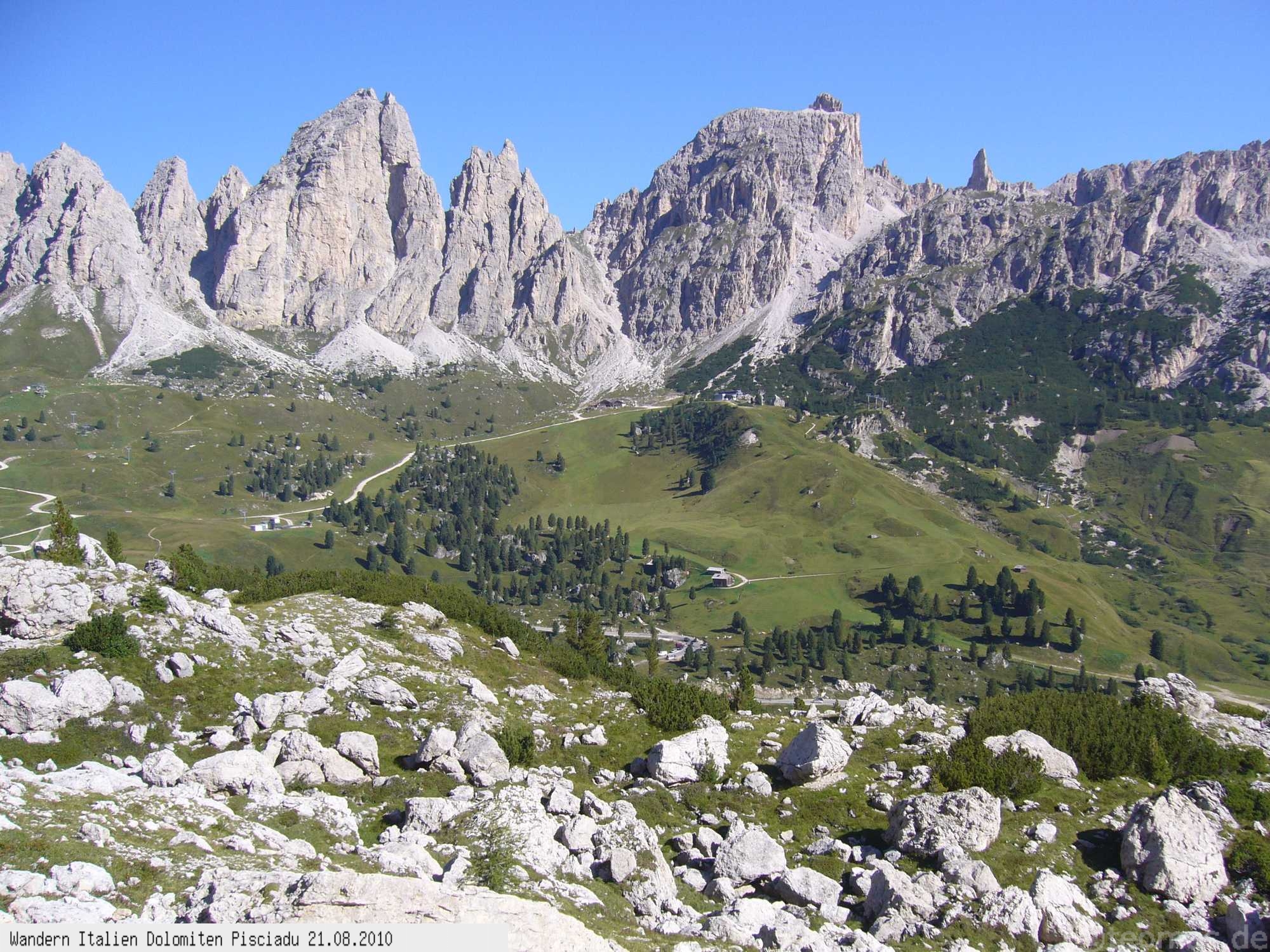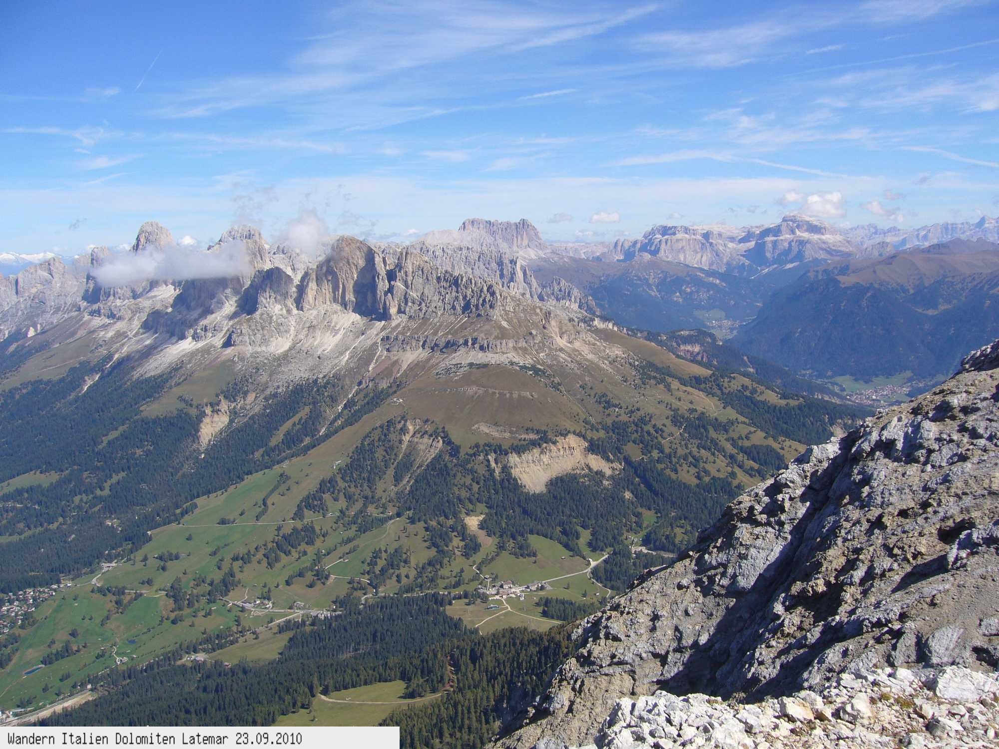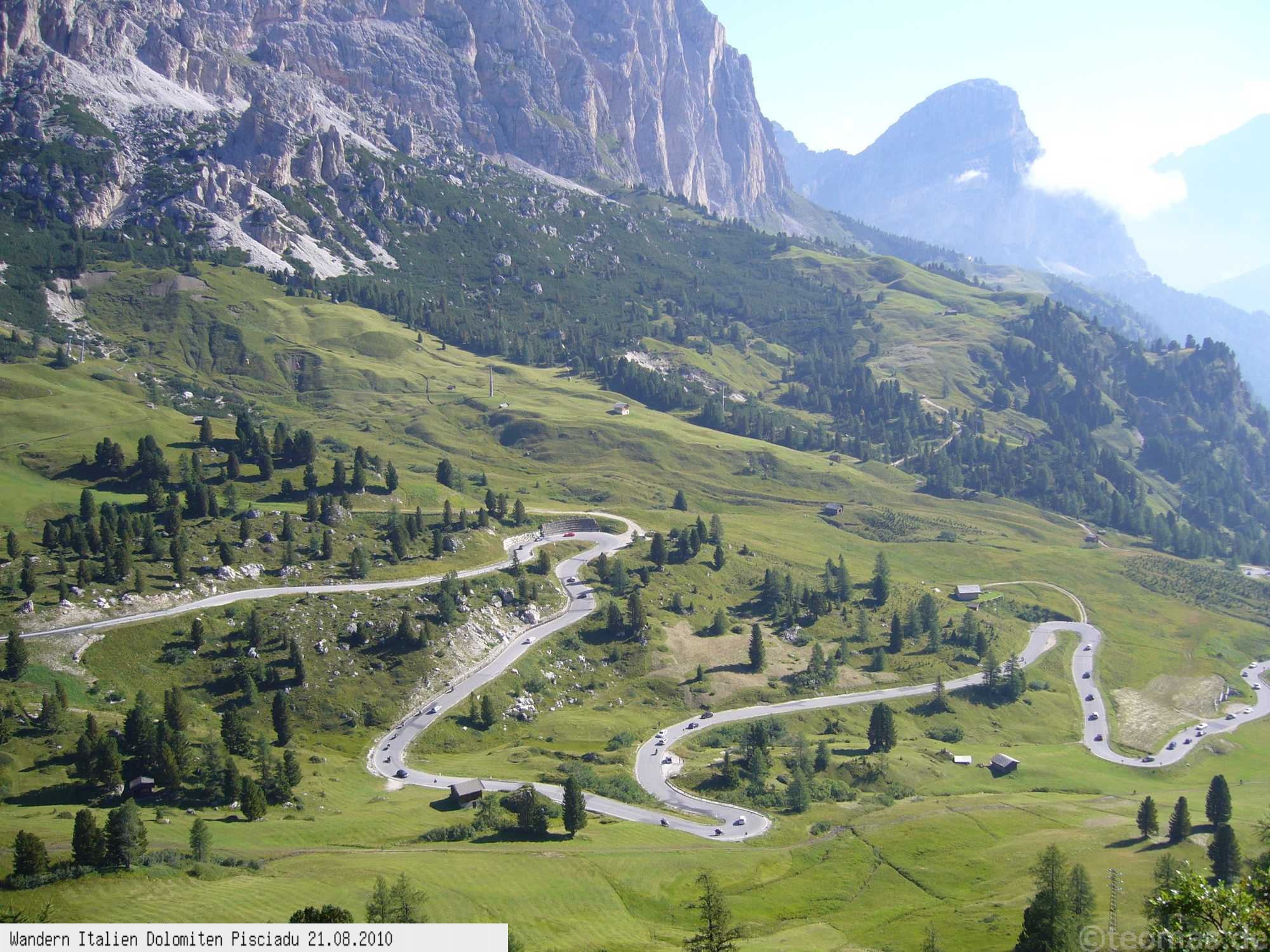 den Sella Paß, über Wolkenstein bis hinunter ins Eisacktal und nach Andrian mit dem Auto nochmals 2 Stunden fährt.