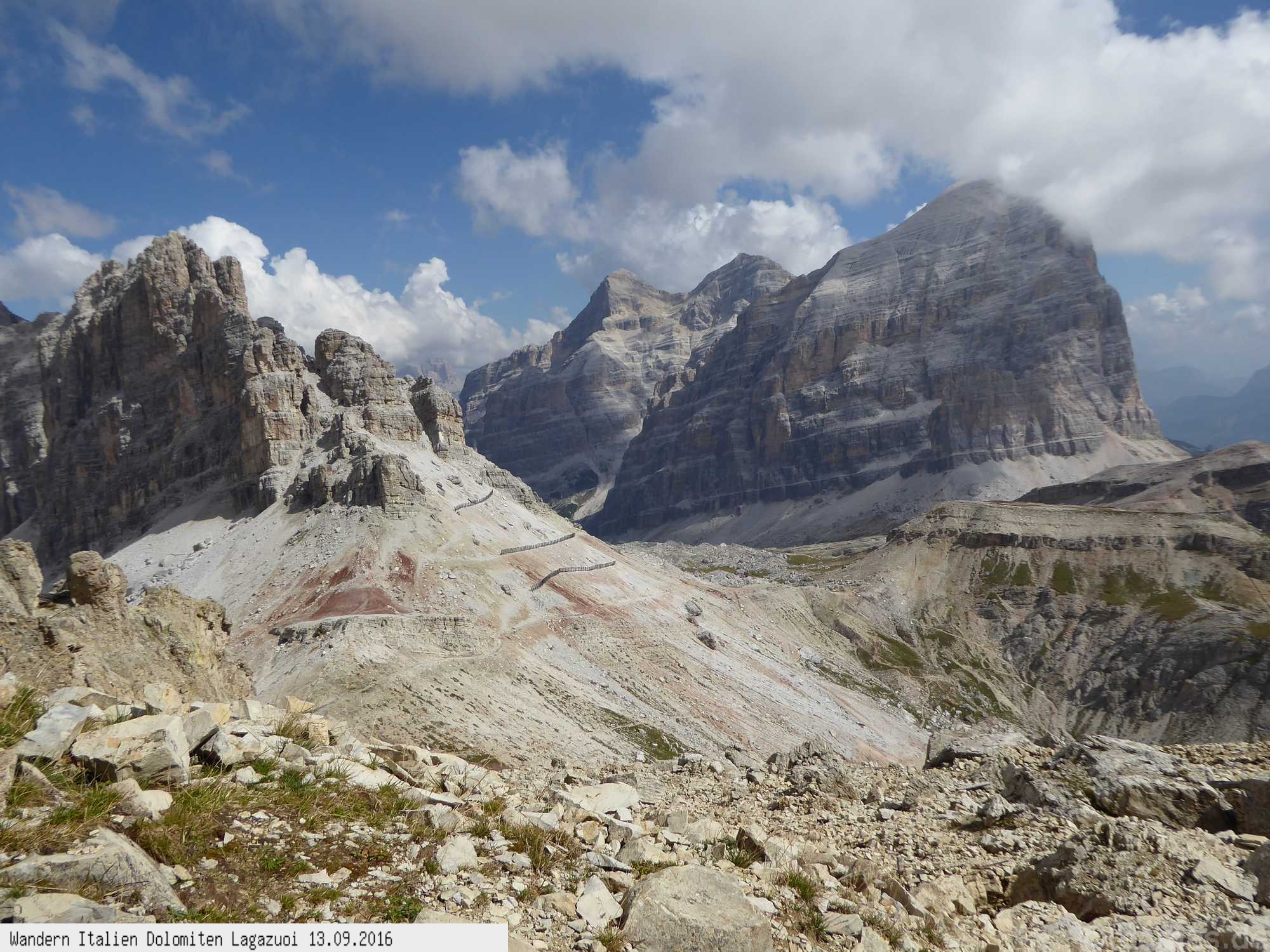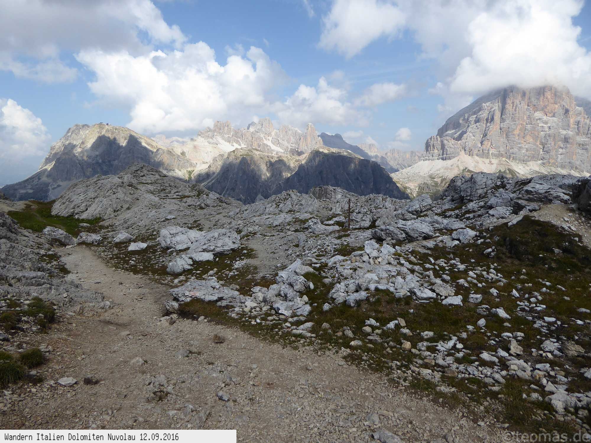 Vom Falzarego Paß nimmt man den Wanderweg Nr. 440 zur Scolatoli Hütte und weiter auf die Averau und Nuvolau Hütte.