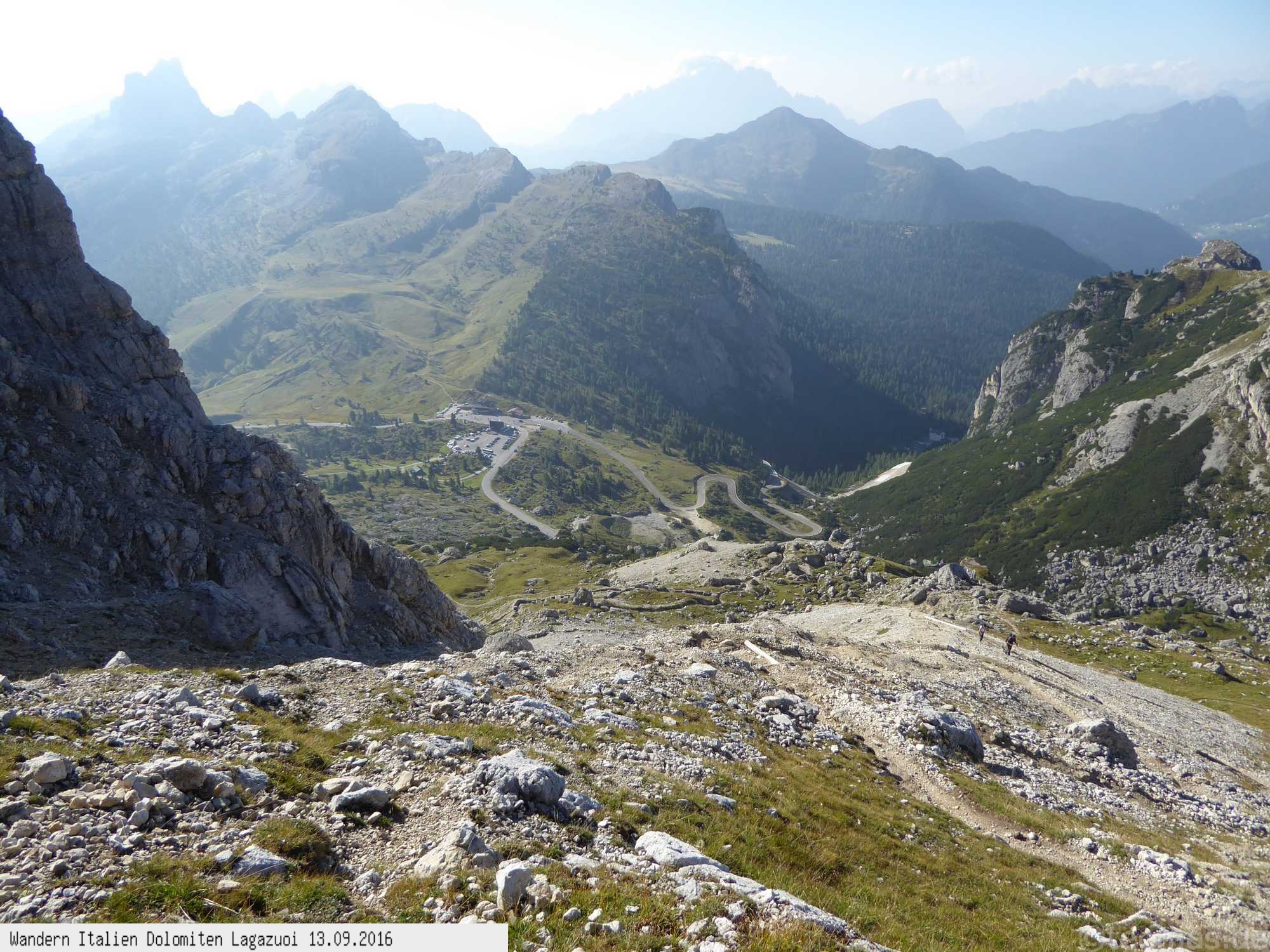 Auf dem Weg von Cortina di Amprezzo nach Corvara kann man einen Stopp am Falzarego Pass einlegen. Schöne Wandertour vom Paß auf