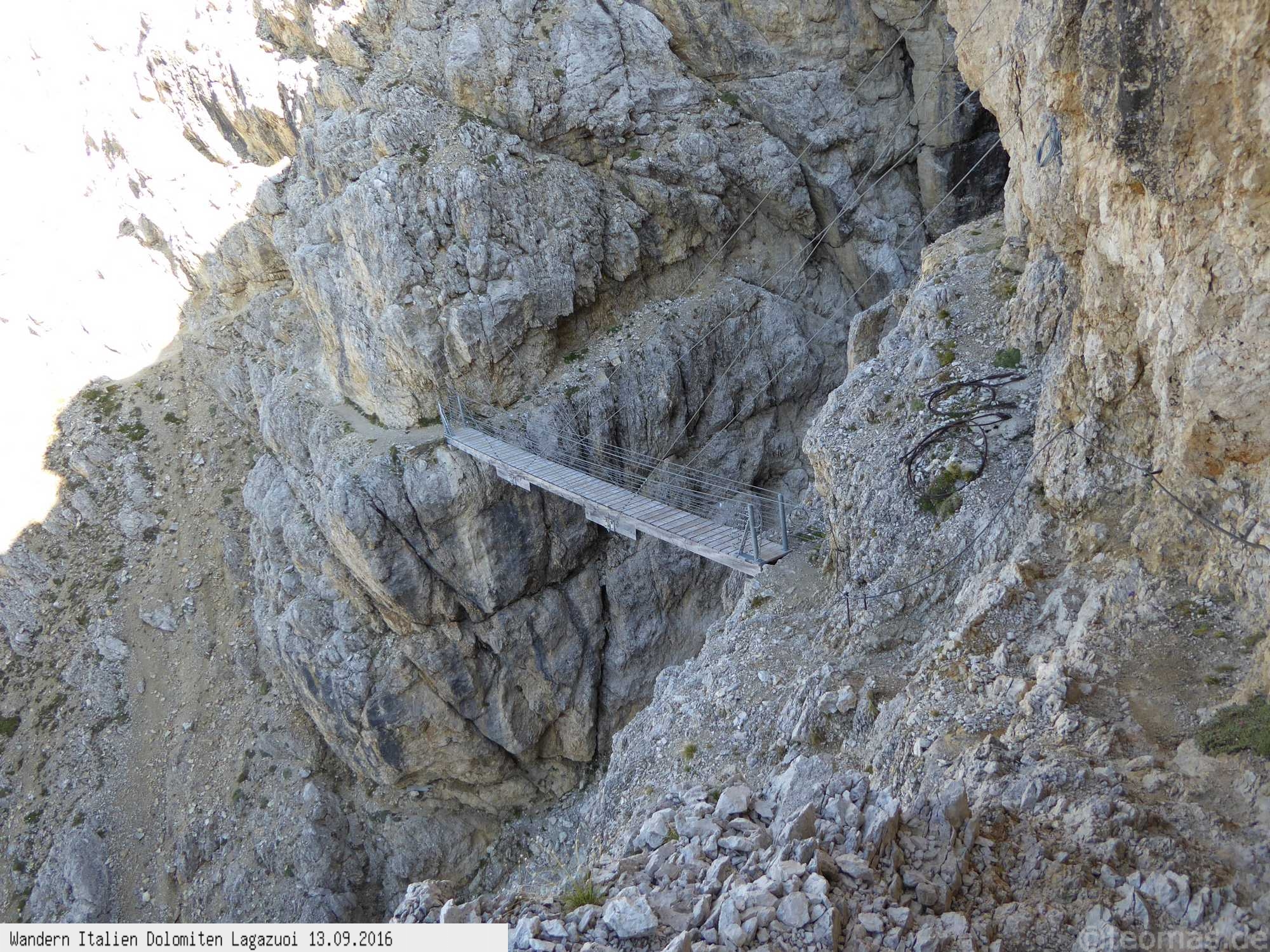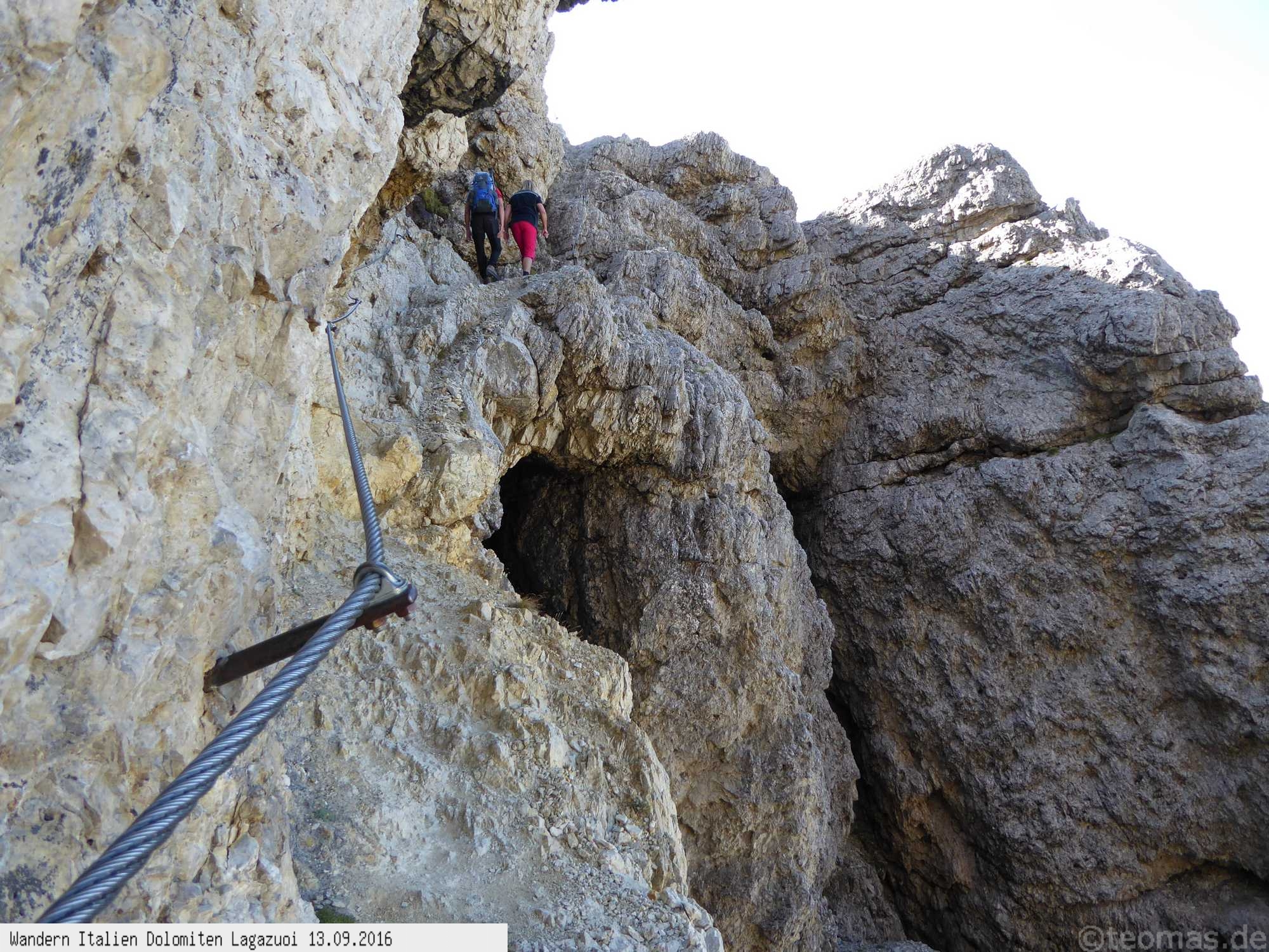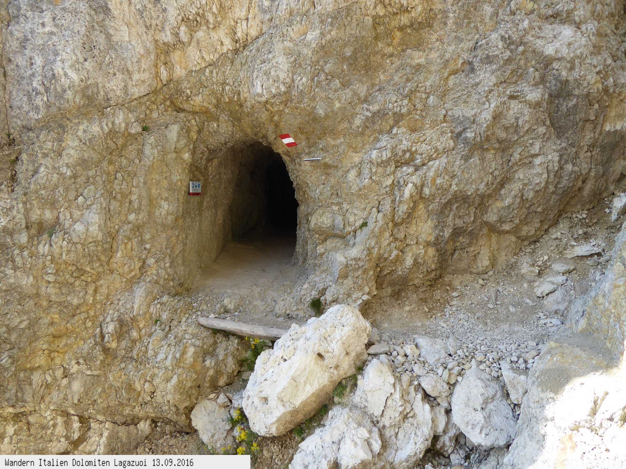 Felsengewirr gepaart mit Dolomiten Blicken, Brücken, Seilsicherungen! Hinunter gelangt man durch die im 1. Weltkrieg gesprengten Felsentunnel,