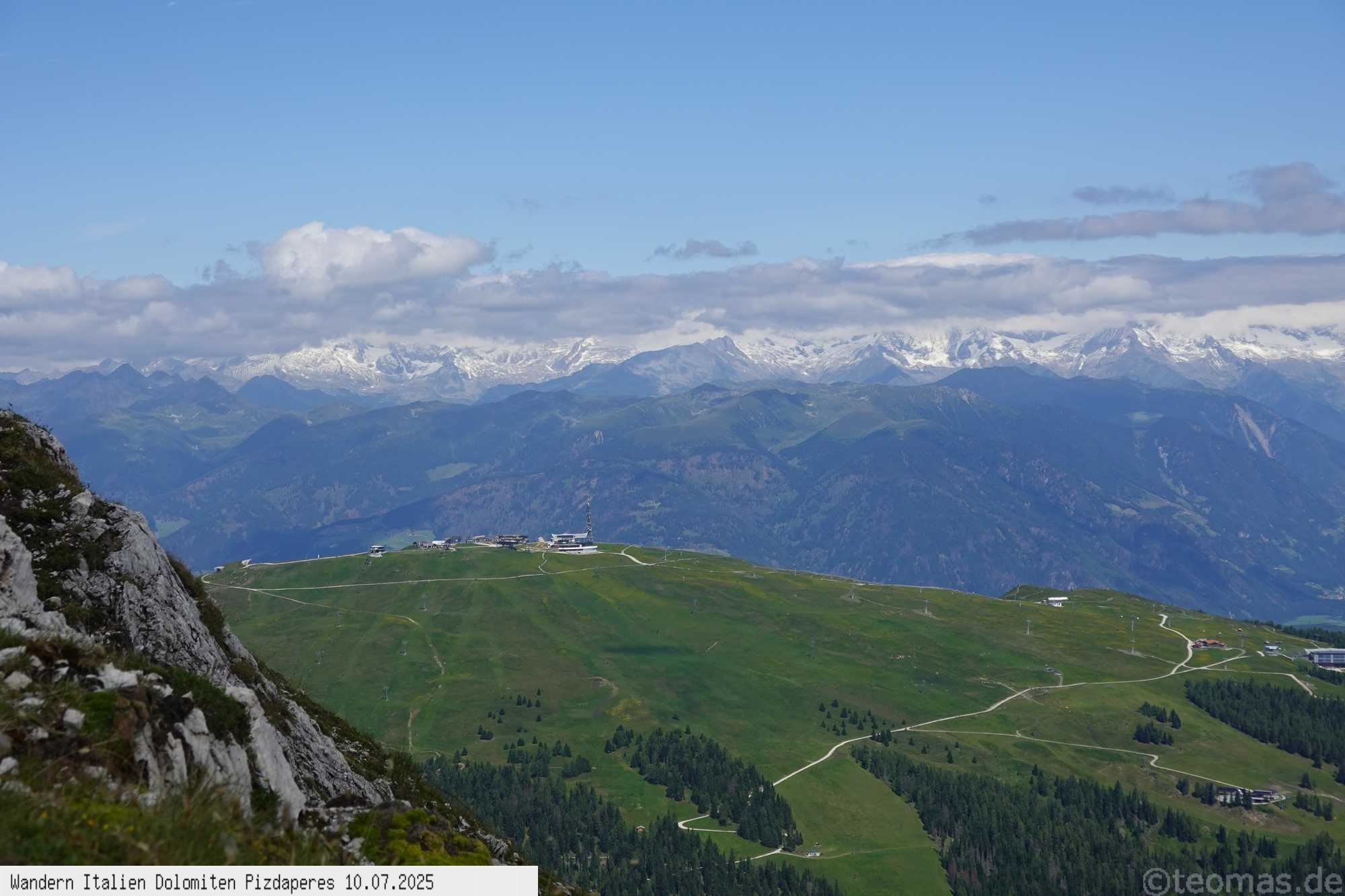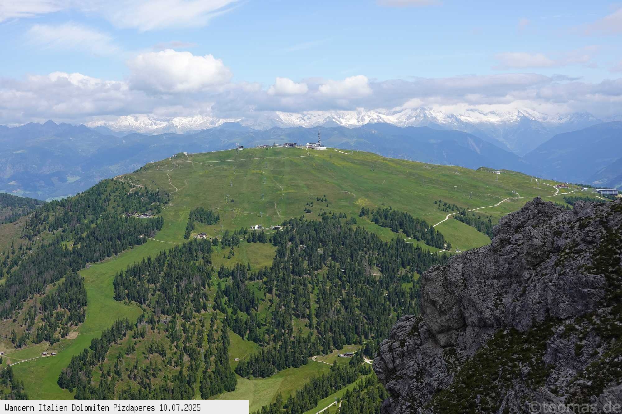 Dolomitenberge phantastisch, am Gipfel dann Rundumsicht in die nördlich gelegenen Zillertaler und Tauern Alpen, der Kronplatz in Greifnähe.