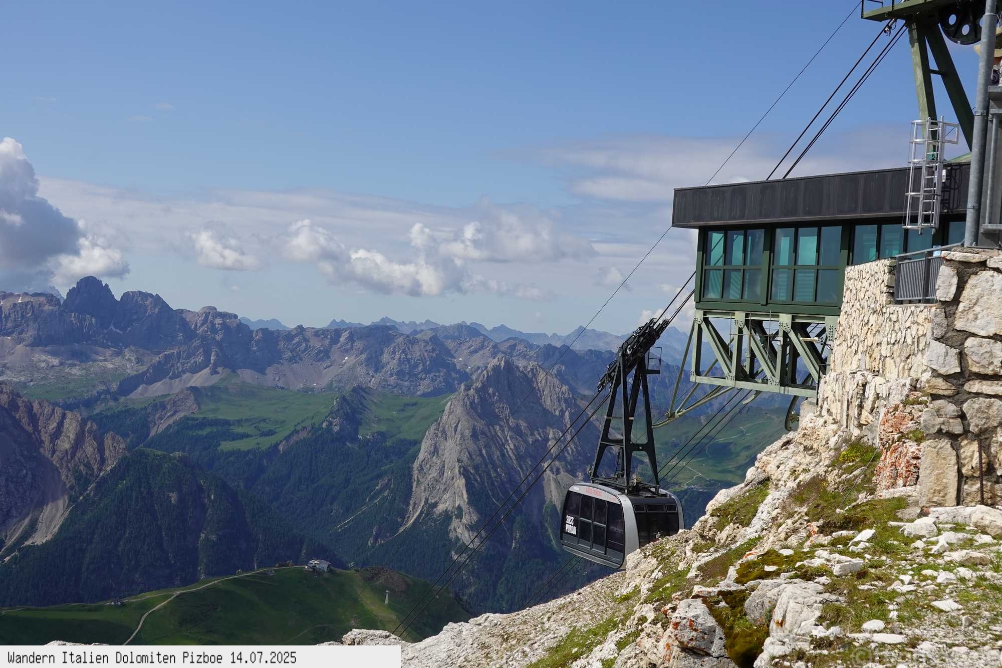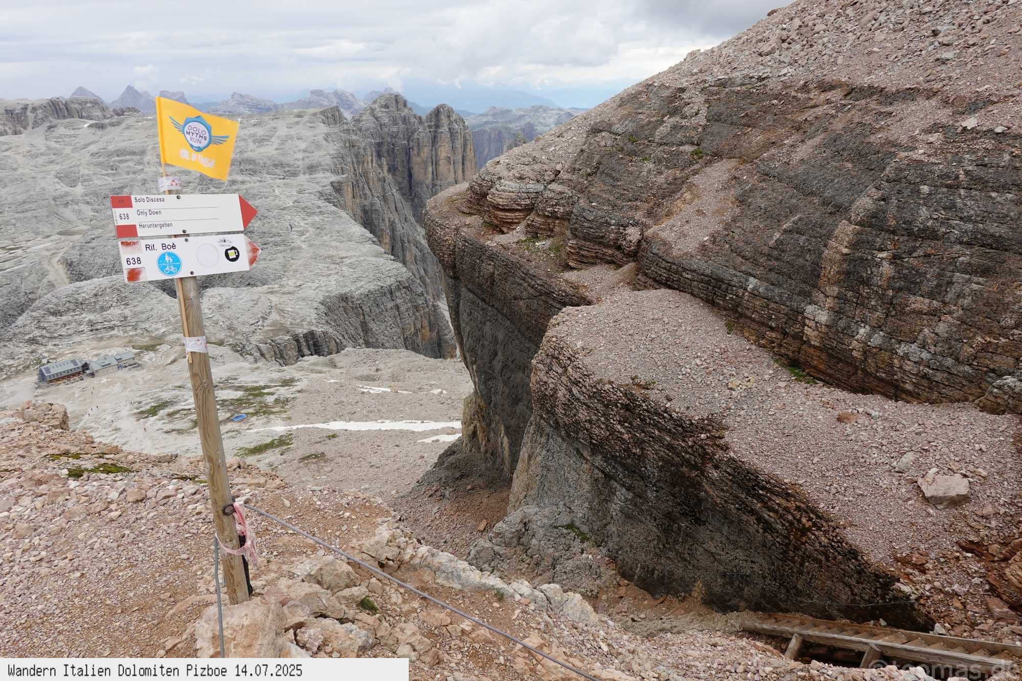 Überschreitung hinunter zum Rifugio Pordoi und gleichen Weg wie auf dem Hinweg zur Seilbahn. Obwohl nur 400 Hm und 11 km überwunden werden