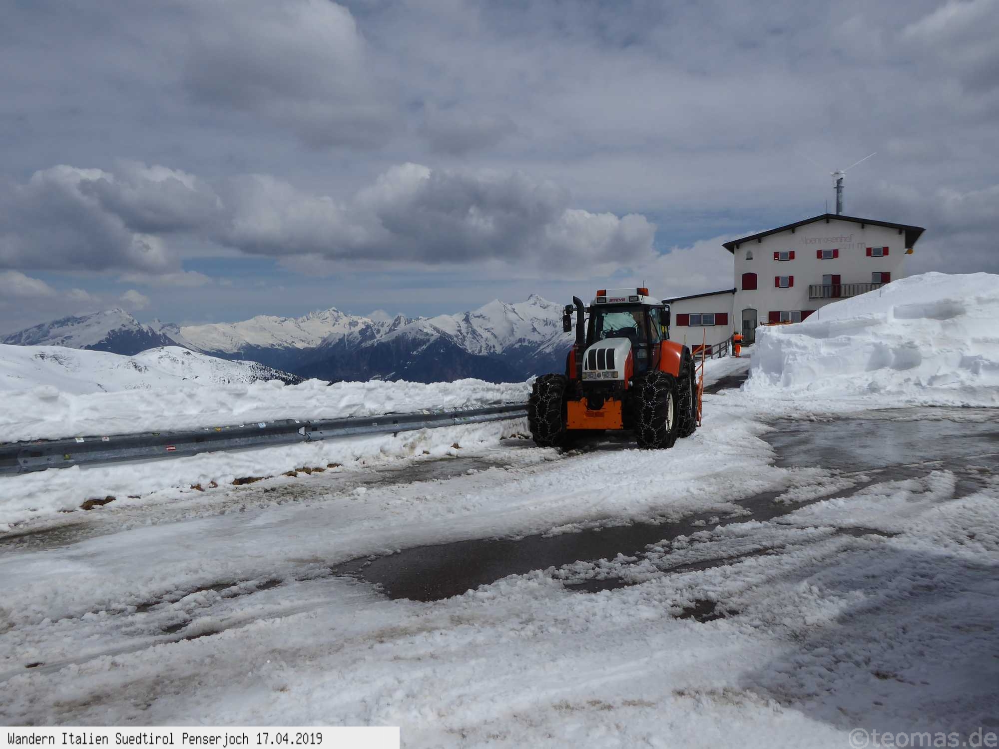 Die Penserjoch Paßstraße ist um diese Zeit noch gesperrt, da auf dem Weg nach oben links